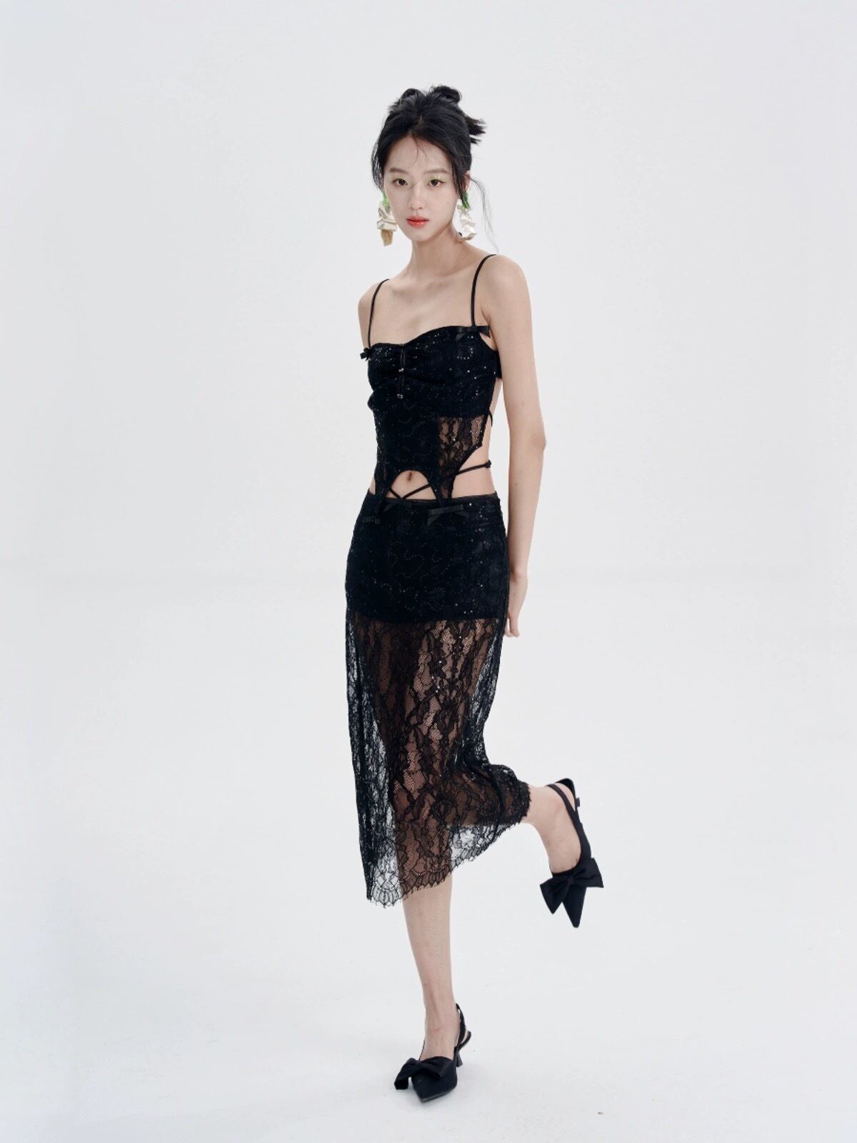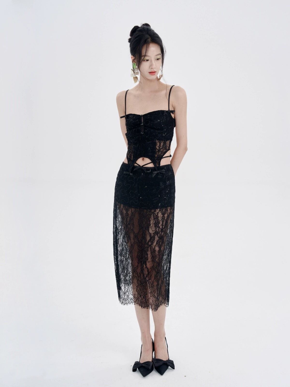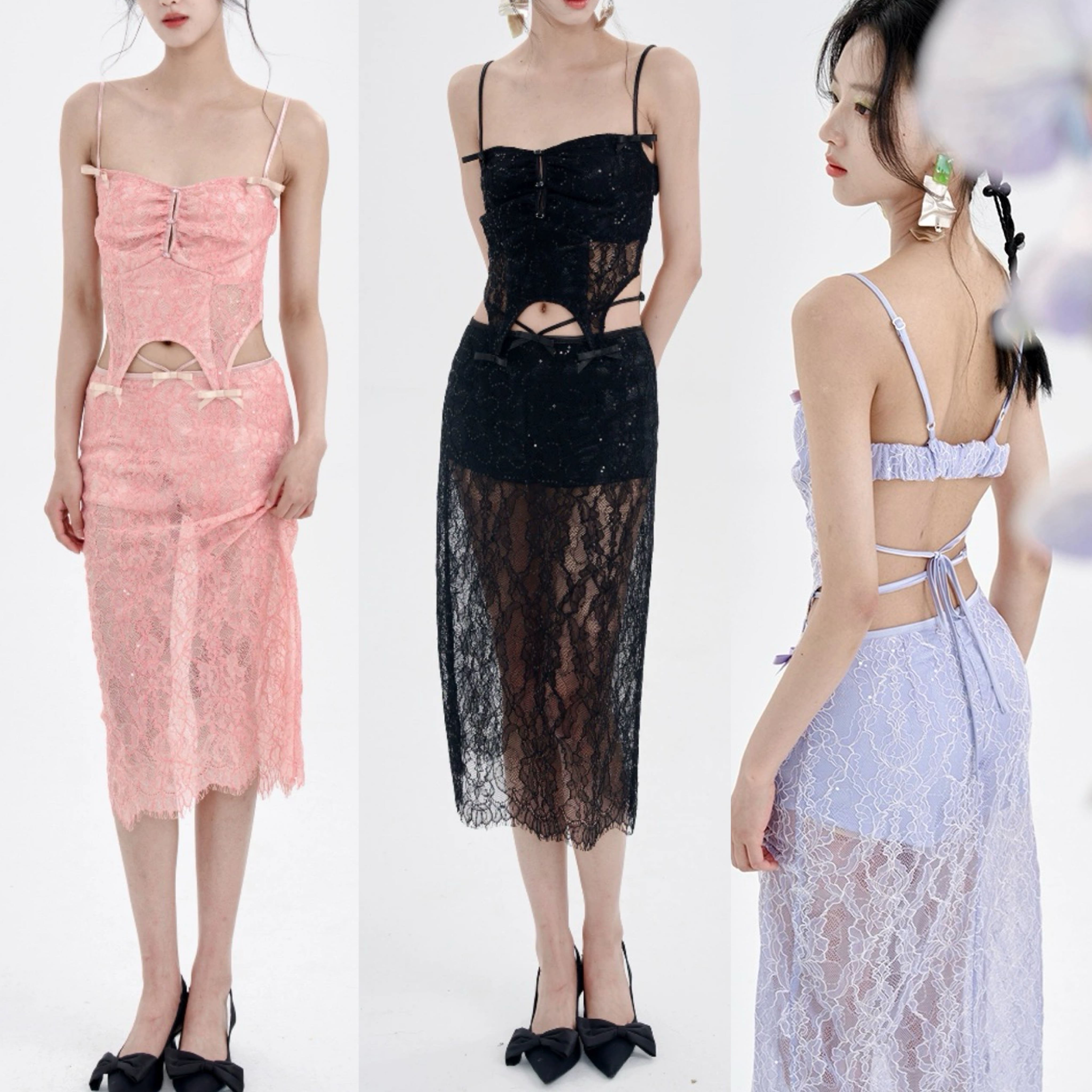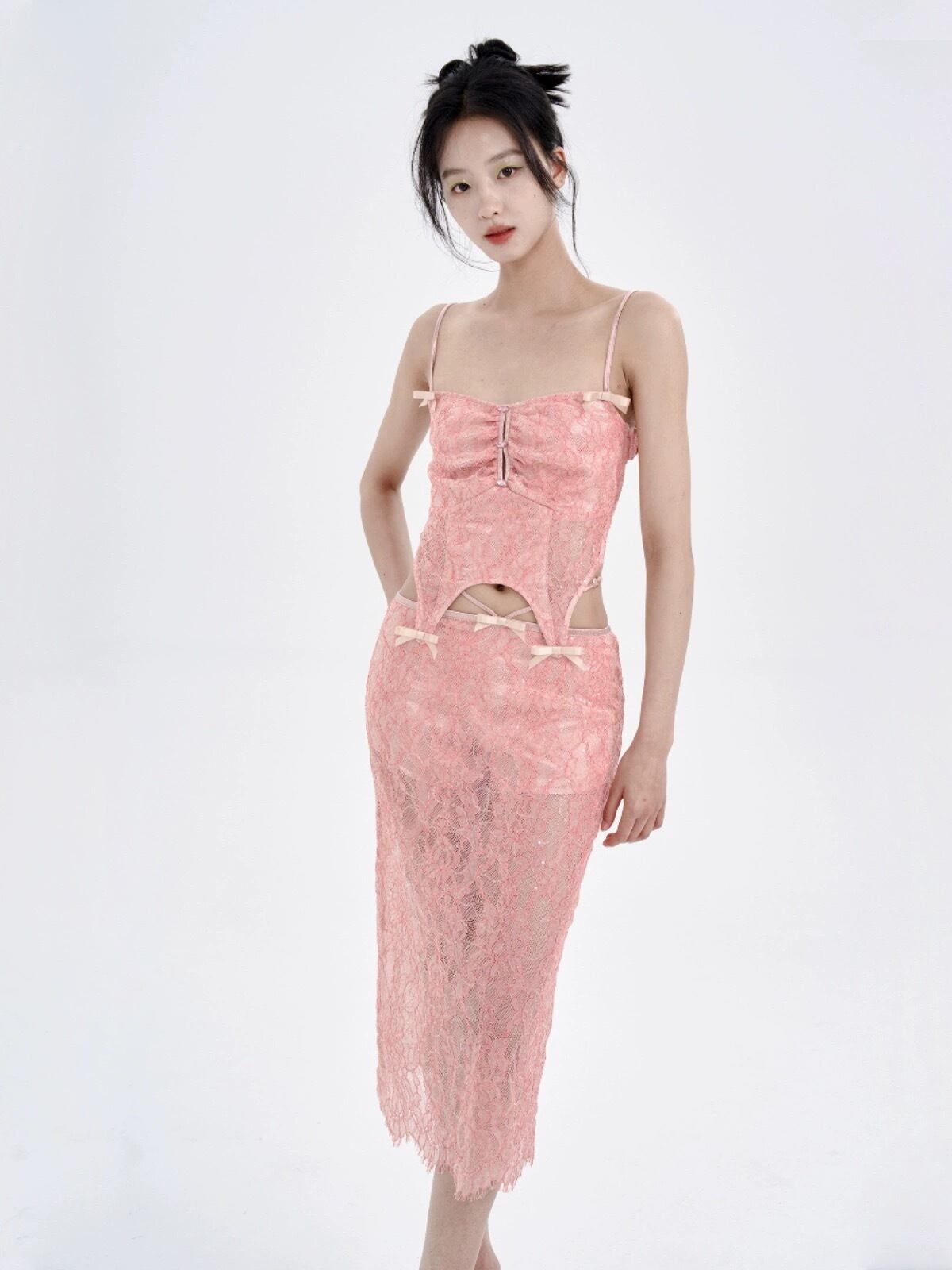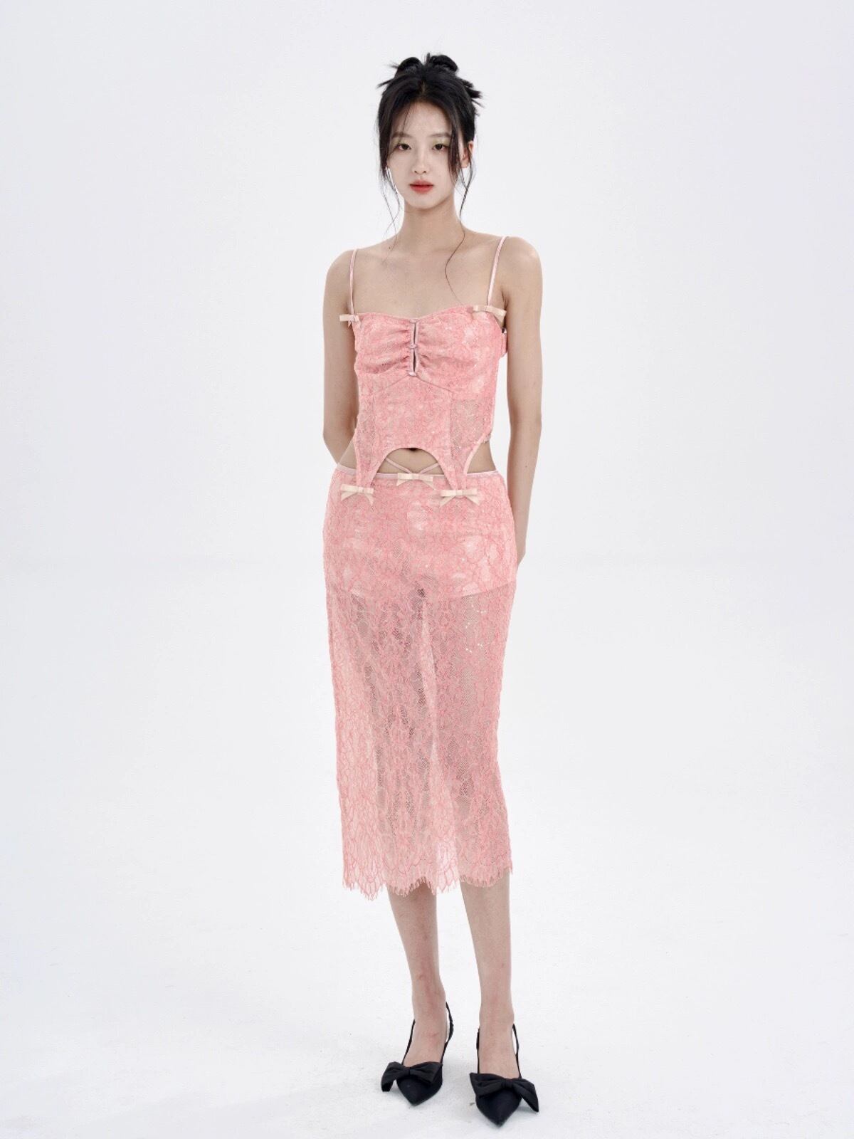 キャミソール ピンク 水色 黒 レース スカート セクシー ワンピース ガーリー 可愛い ドレス ワンピース