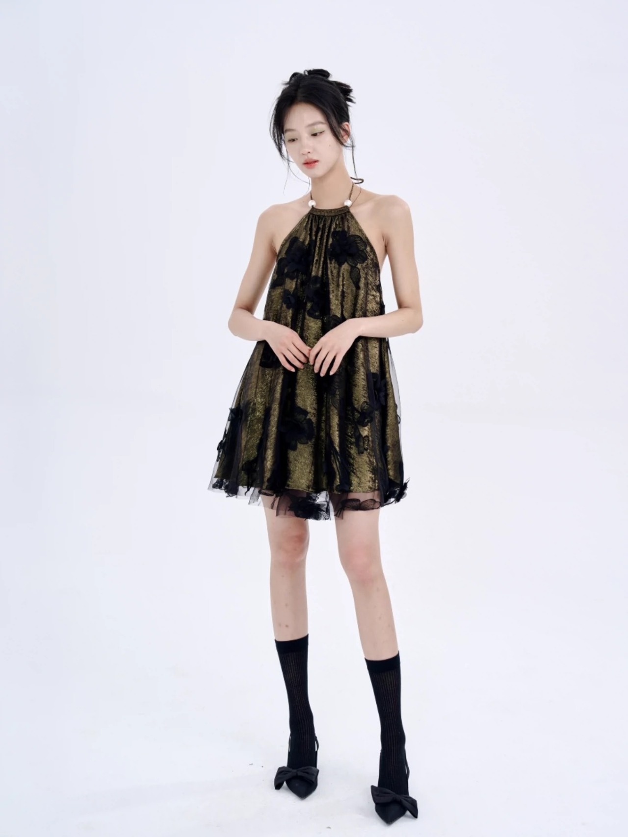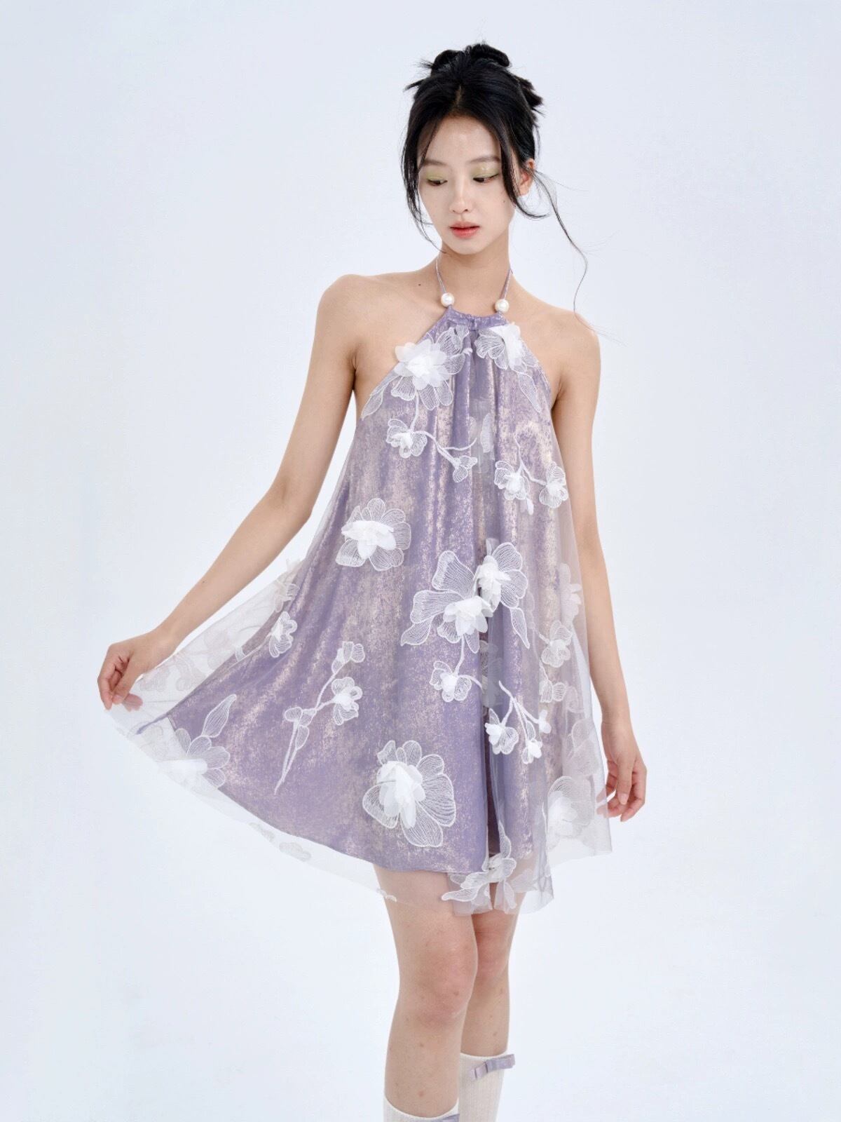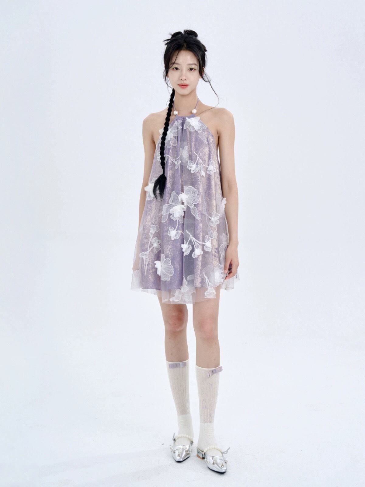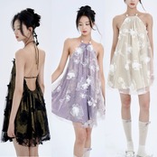 ホルダーネック 花柄 フラワー 紫 白 黒 ブラウス キャミソール ベアトップ