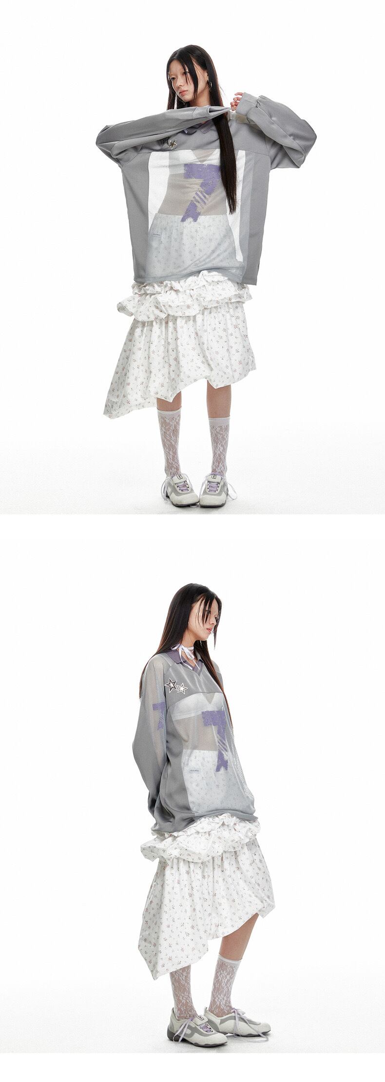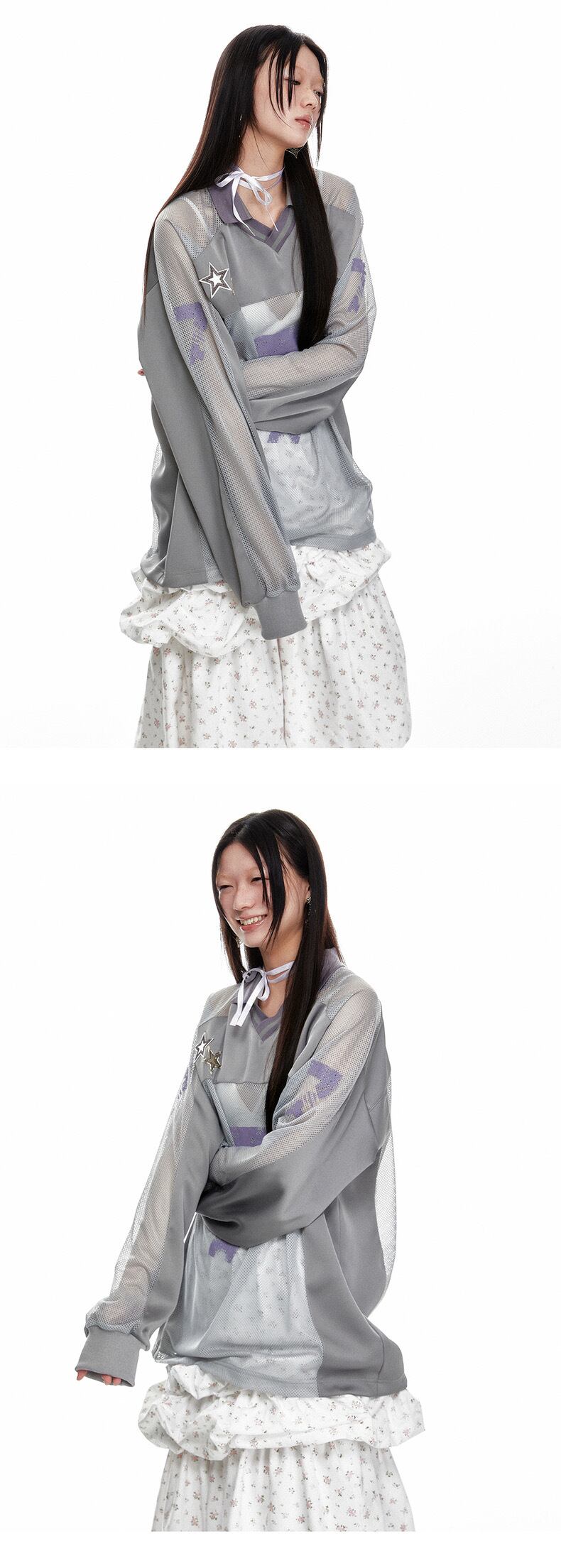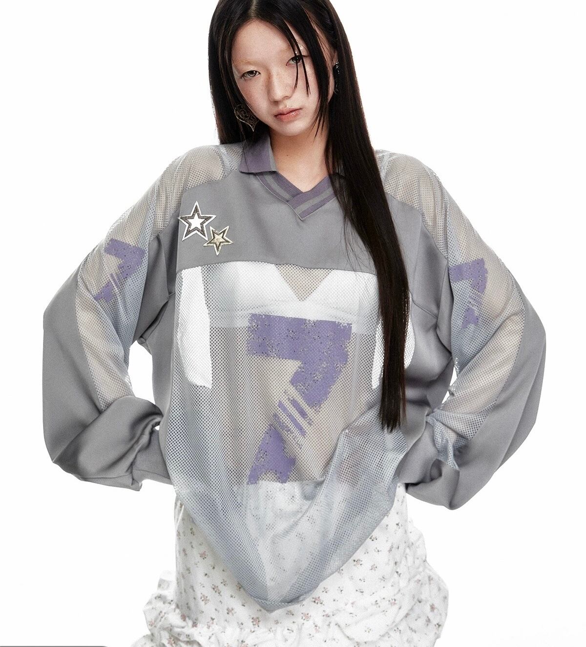 グレー メッシュ カジュアル トップス 7 ジャージ スウェット ストリート
