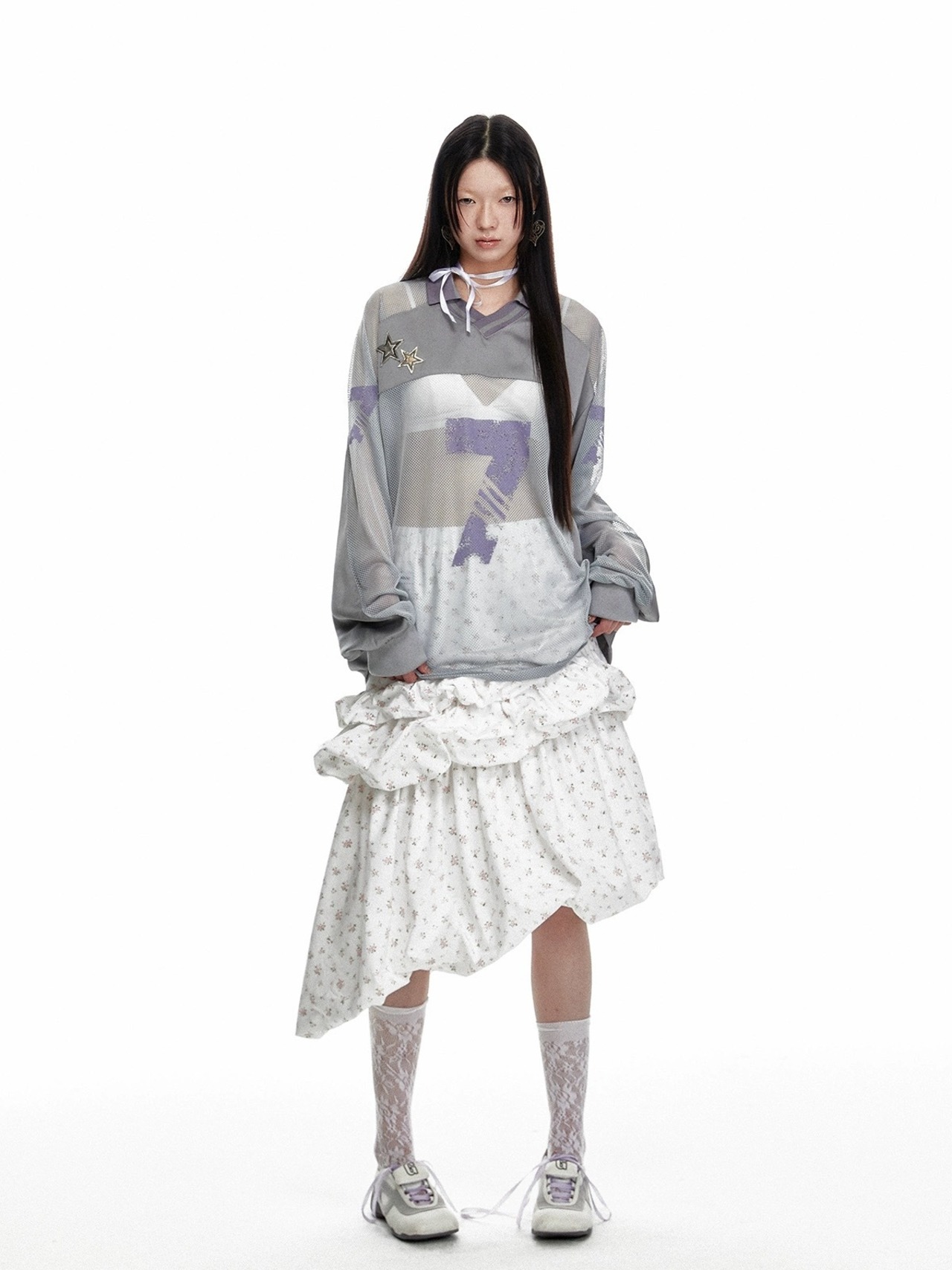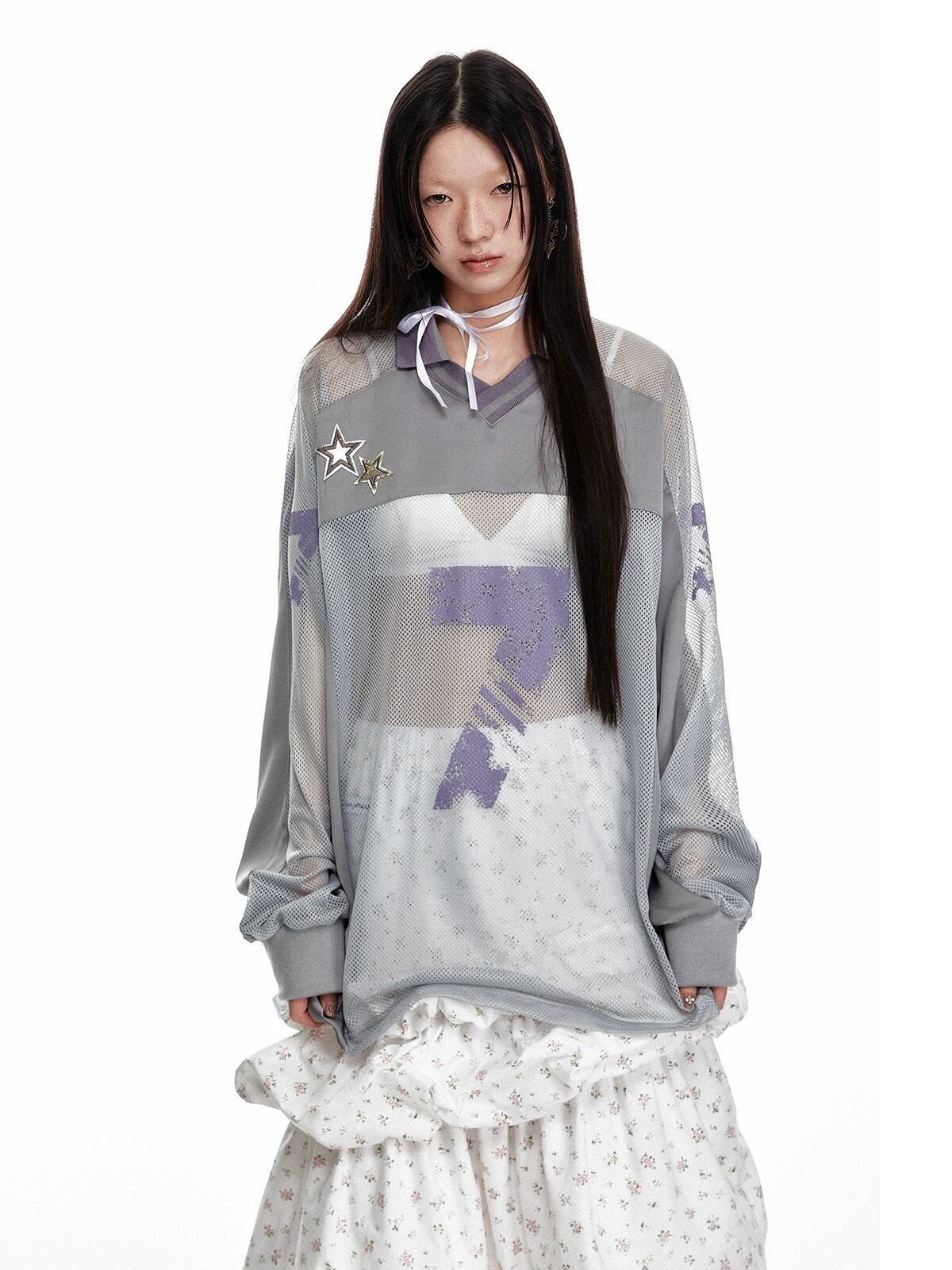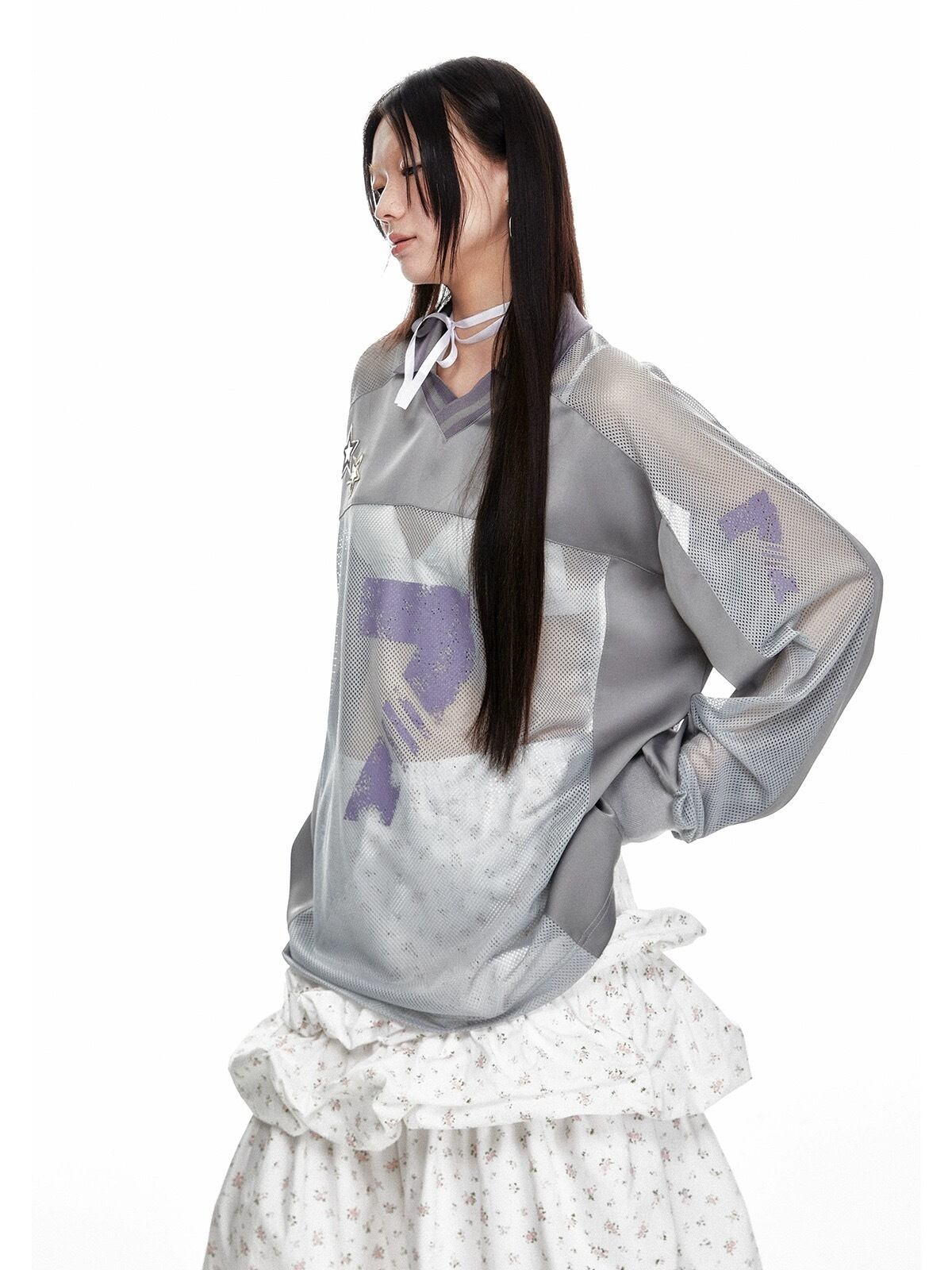 グレー メッシュ カジュアル トップス 7 ジャージ スウェット ストリート