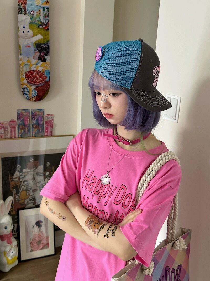水色 ピンク カジュアル ワンピース XL Tシャツ トップス オーバーサイズ ブラウス XL ストリート