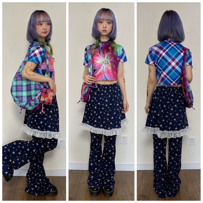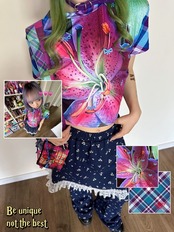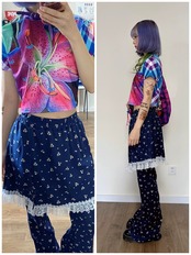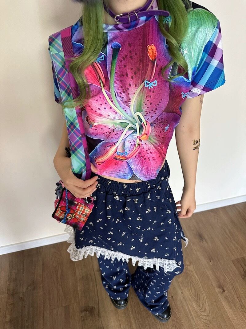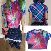 ハイビスカス 青 ピンク トップス ブラウス XL Tシャツ カジュアル カラフル