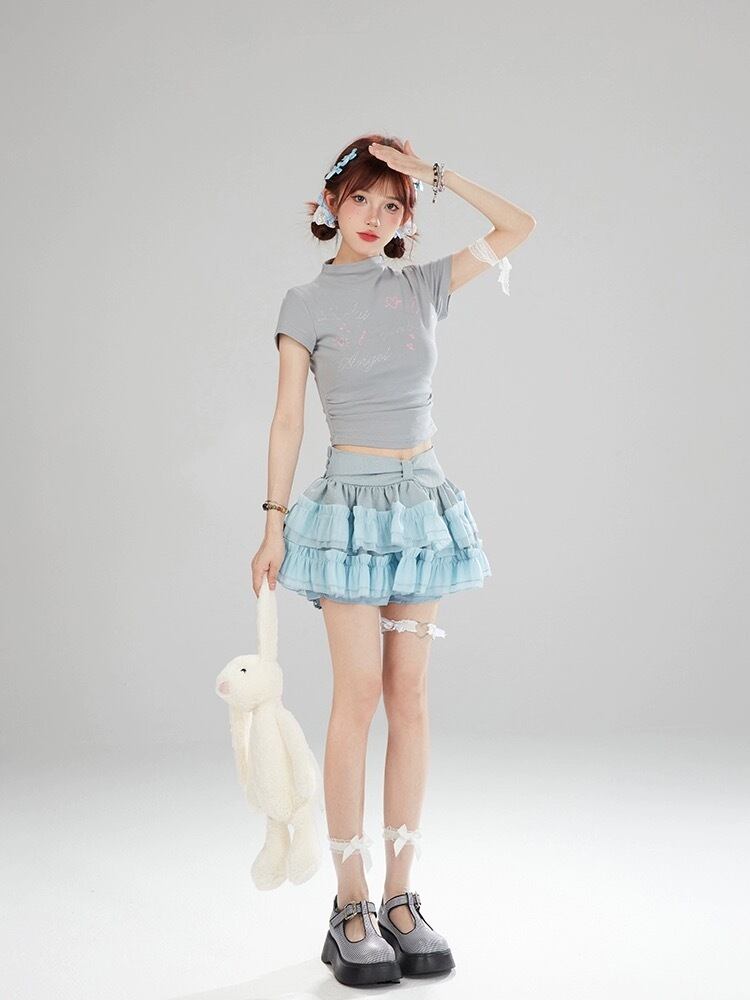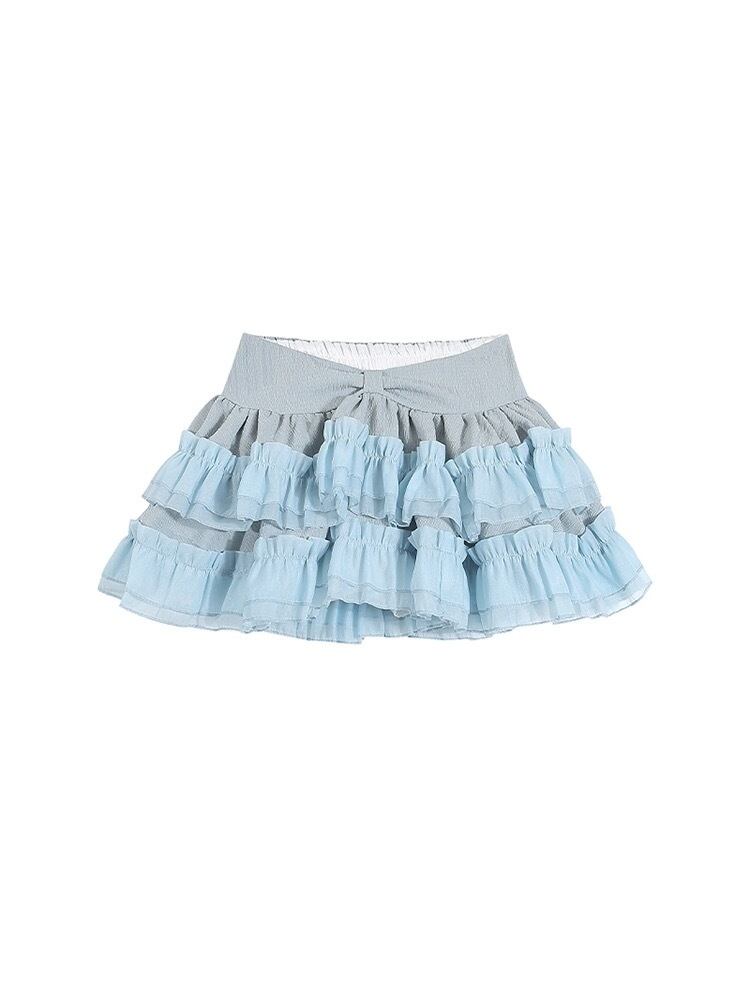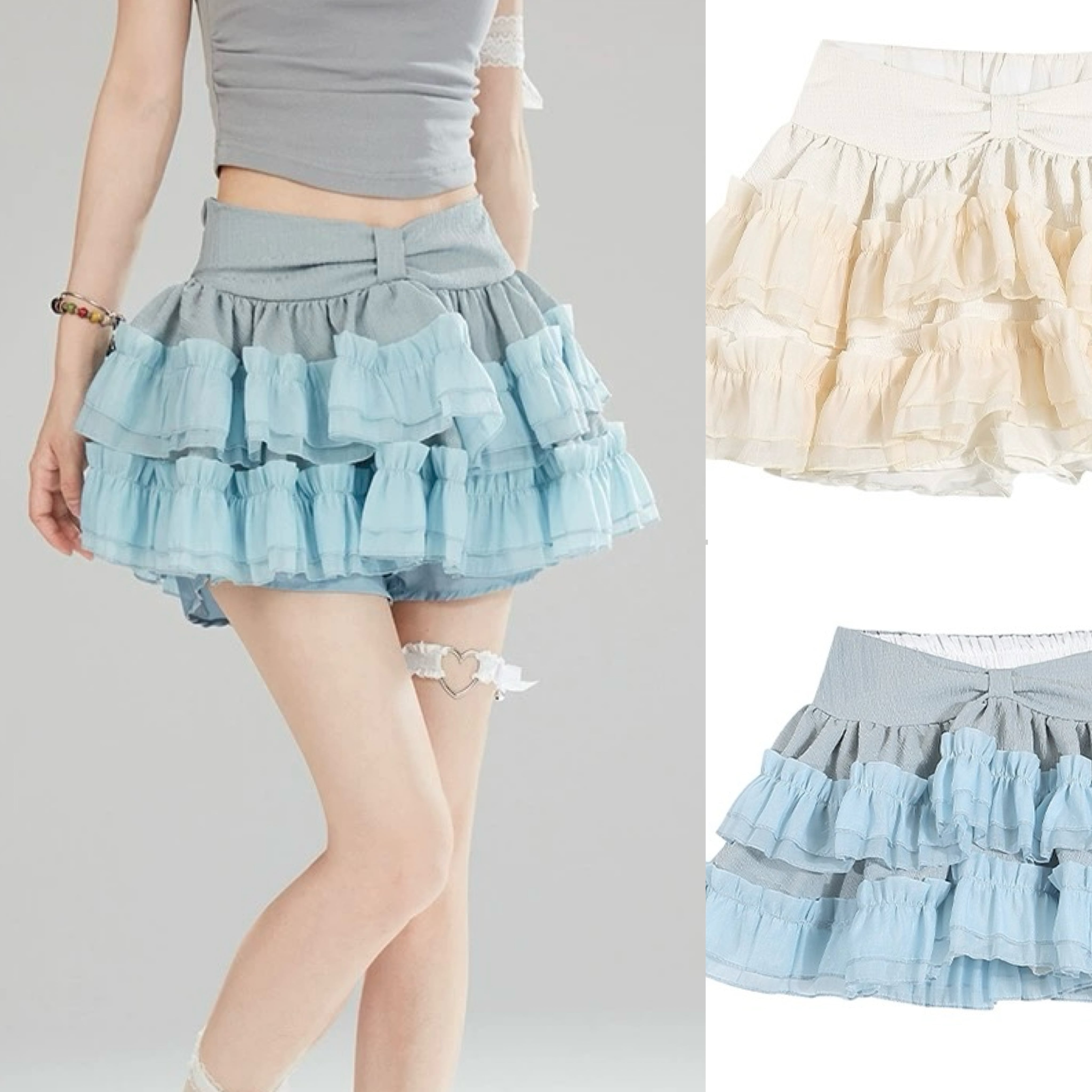 ミニスカート 白 水色 リボン ガーリー 可愛い ボトムス