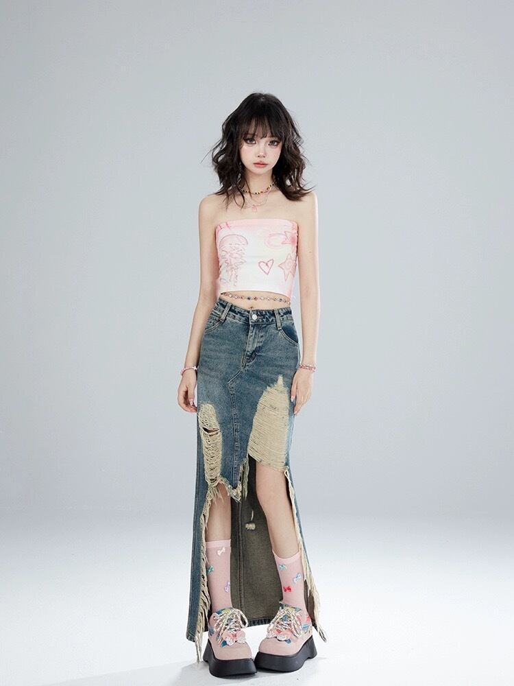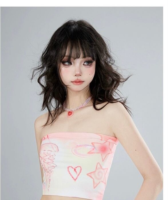 ベアトップ ハート ブラウス チューブトップ ピンク