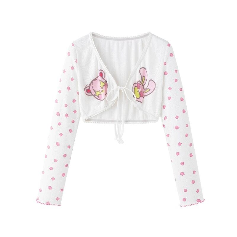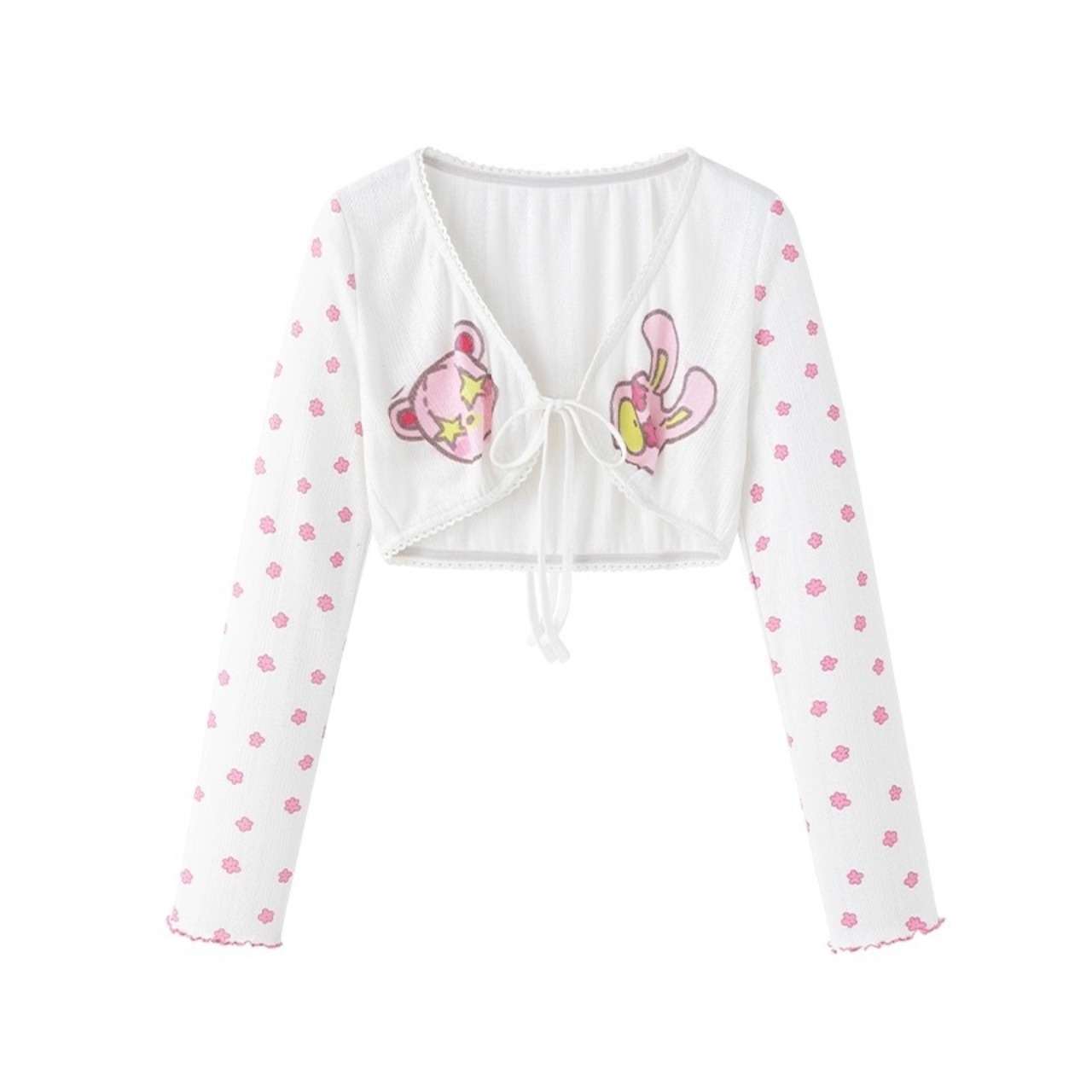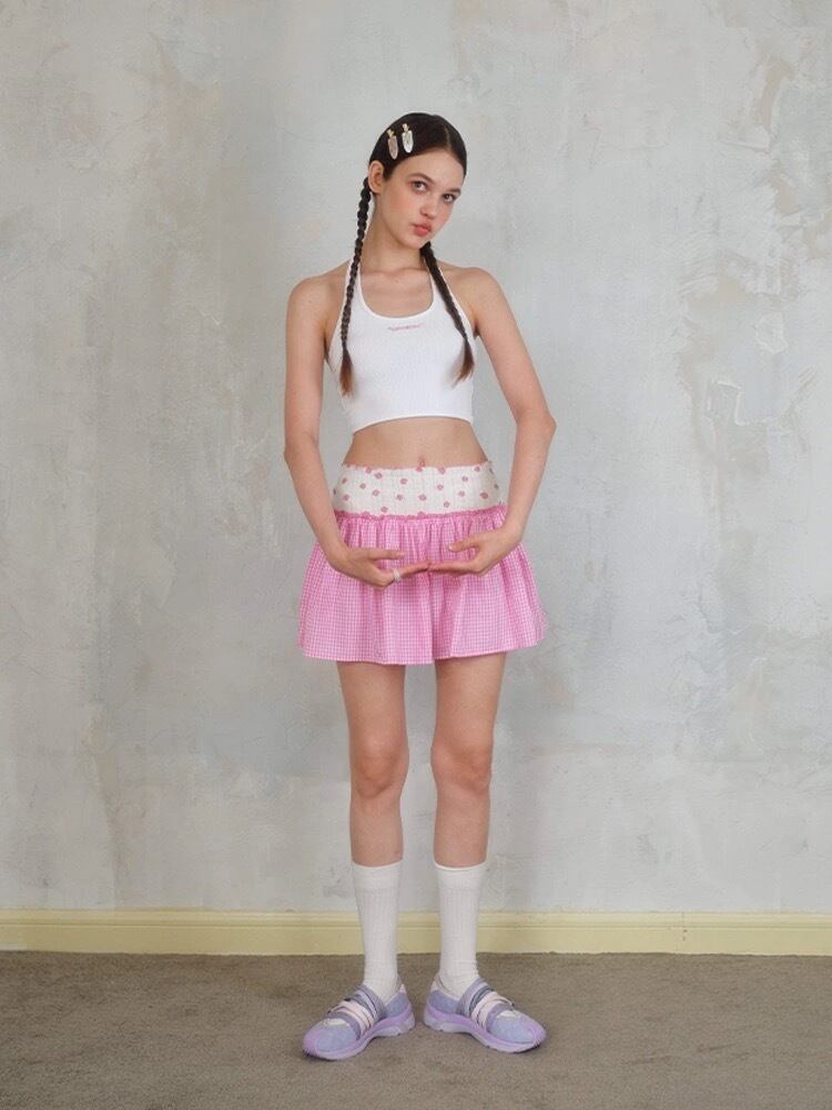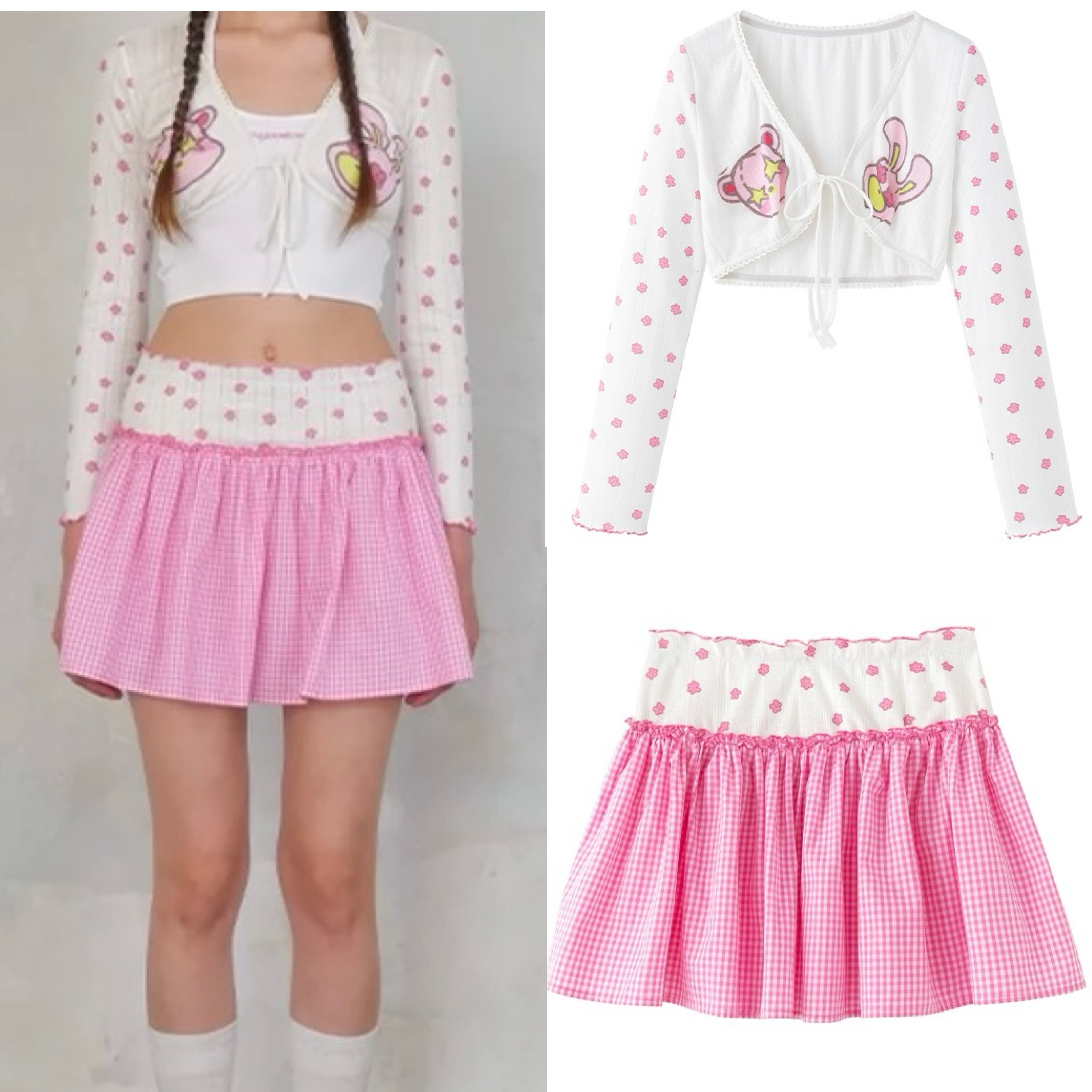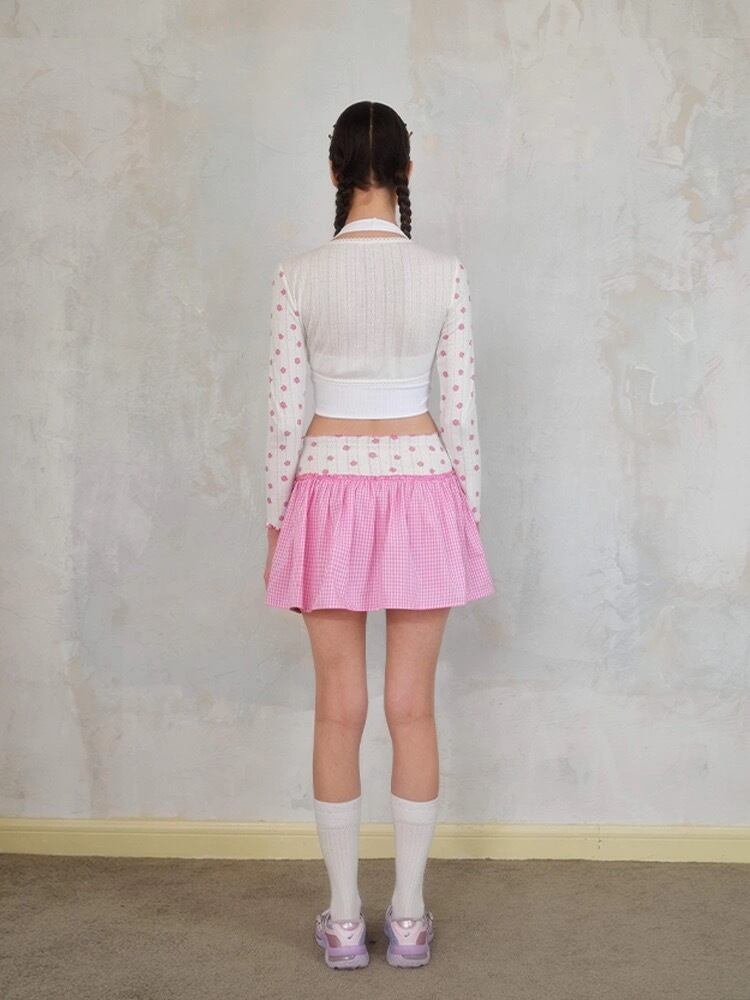 白 ピンク ガーリー チェック ミニスカート カーディガン 水玉 ドット ピンク