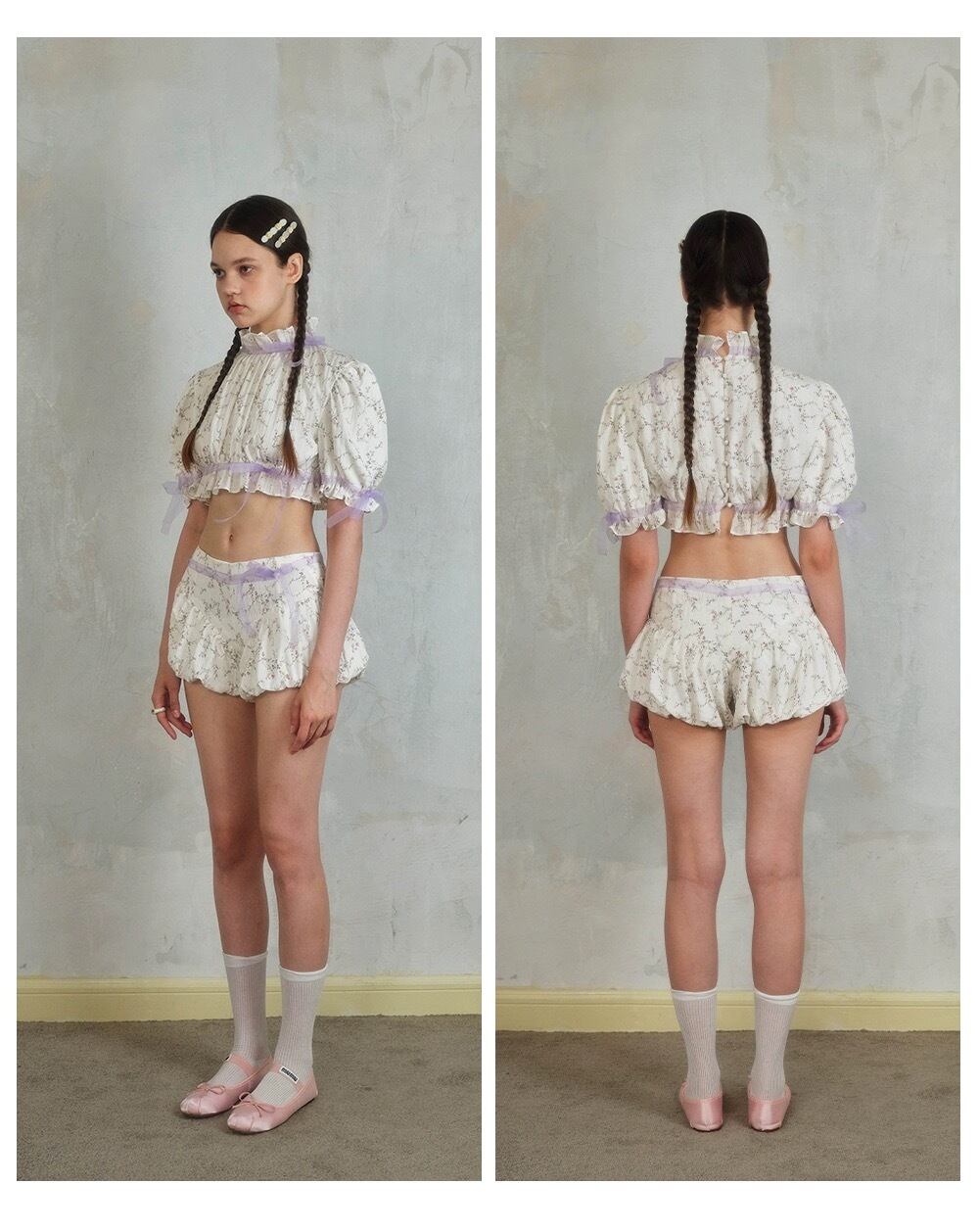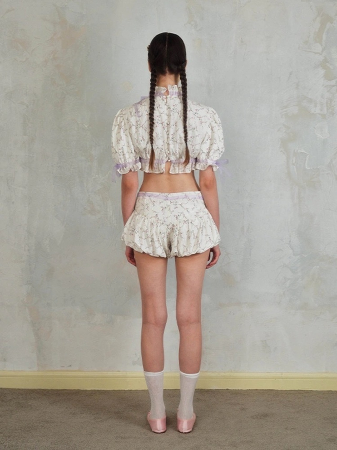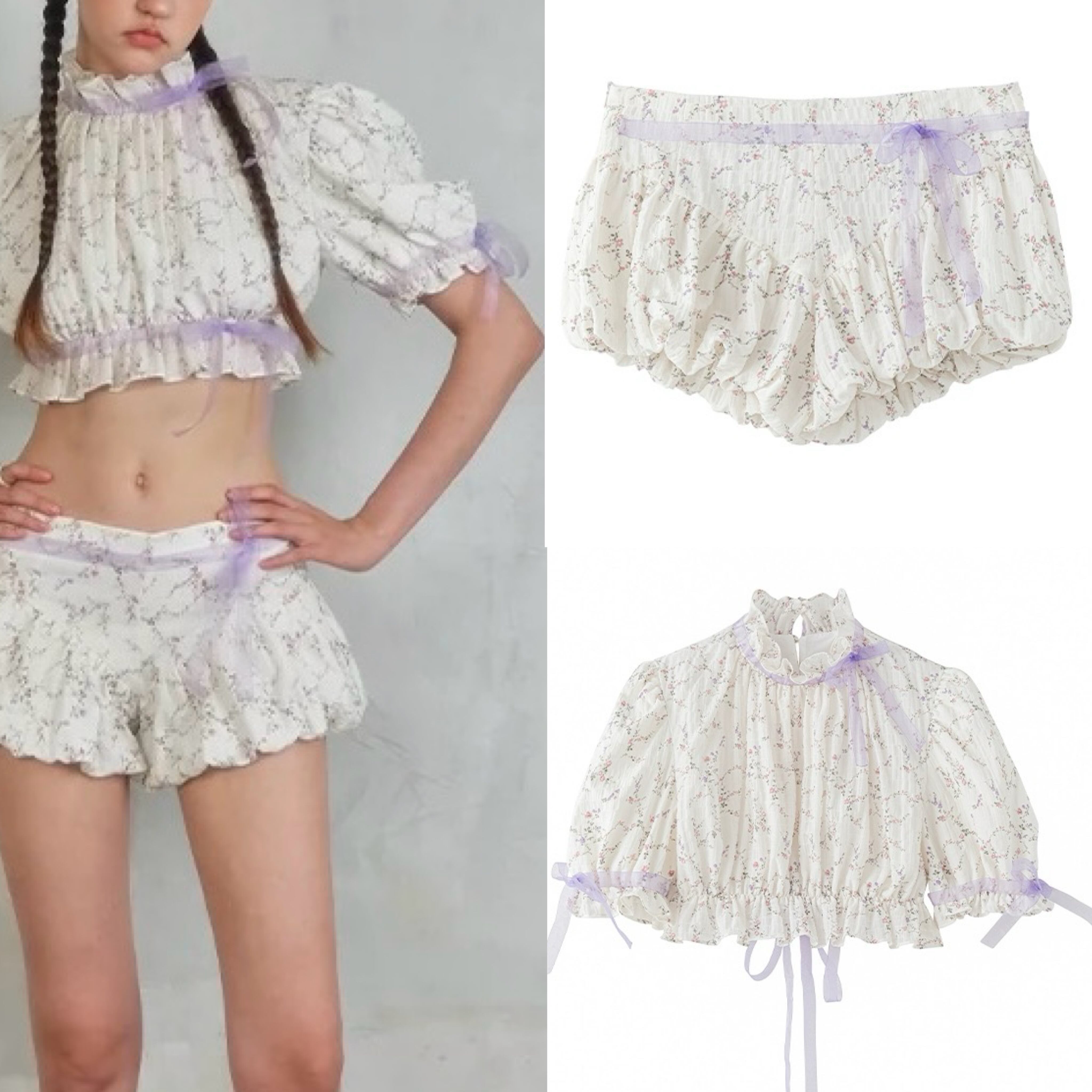 パンツ ボトムス ブラウス 紫 リボン ガーリー ショートパンツ トップス