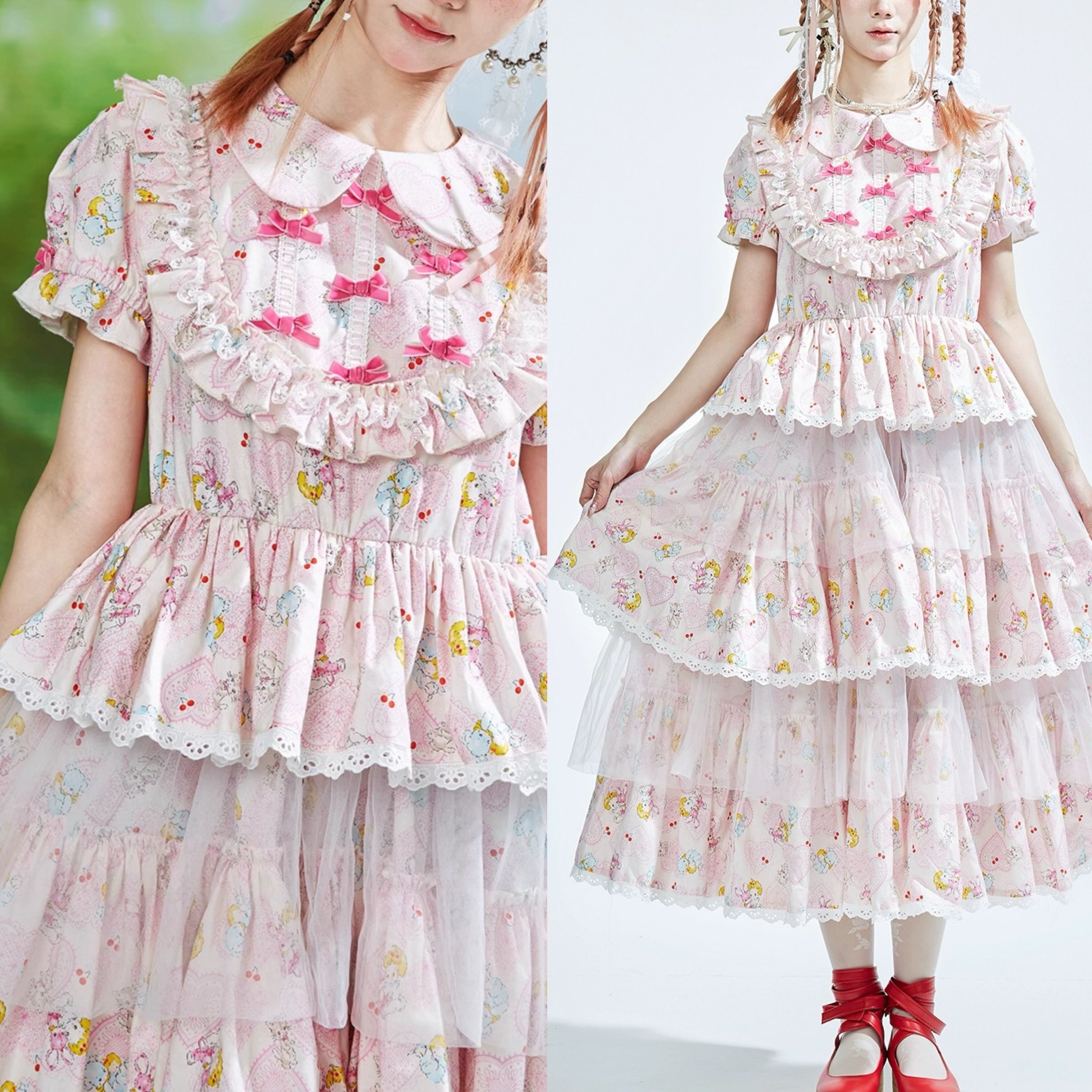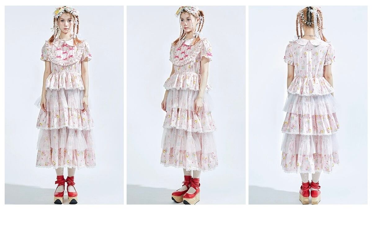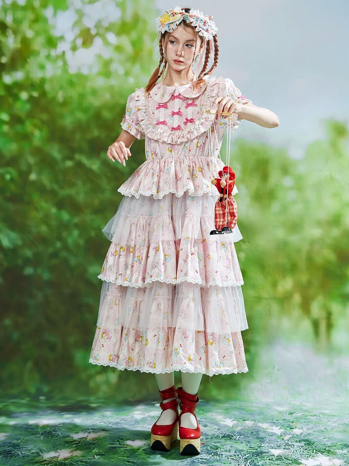可愛い ブラウス 丸襟 ピンク チェック ガーリー マキシ ワンピース 可愛い パッチワーク