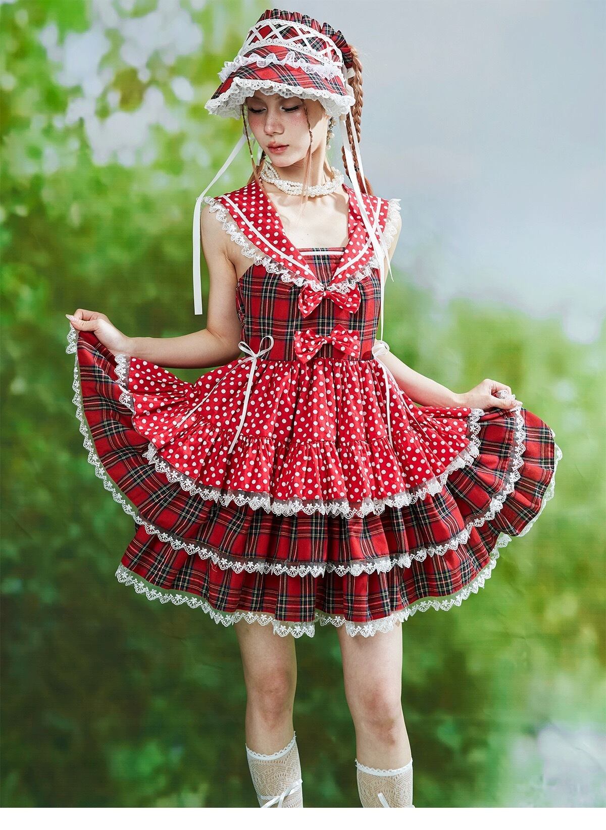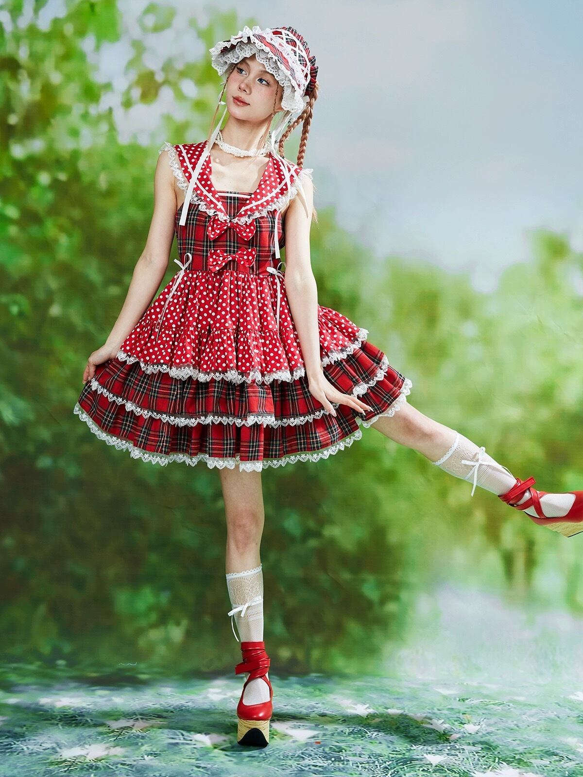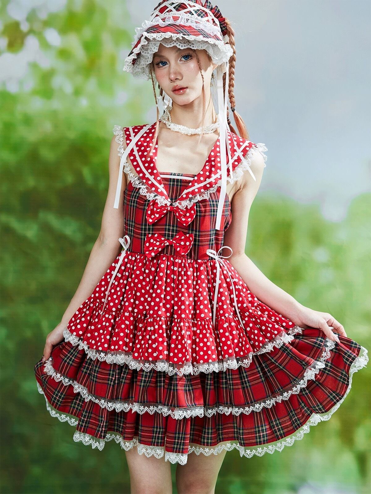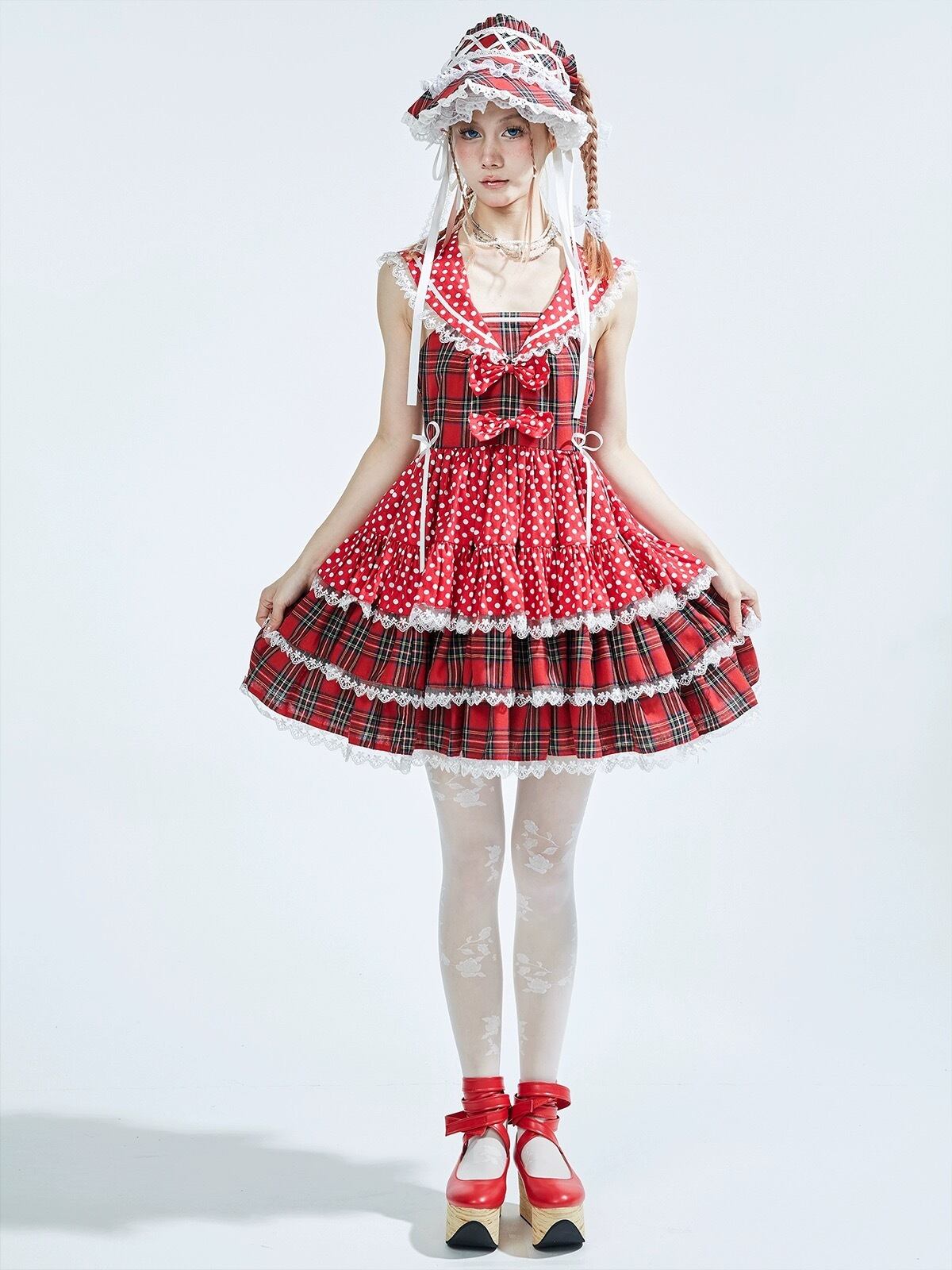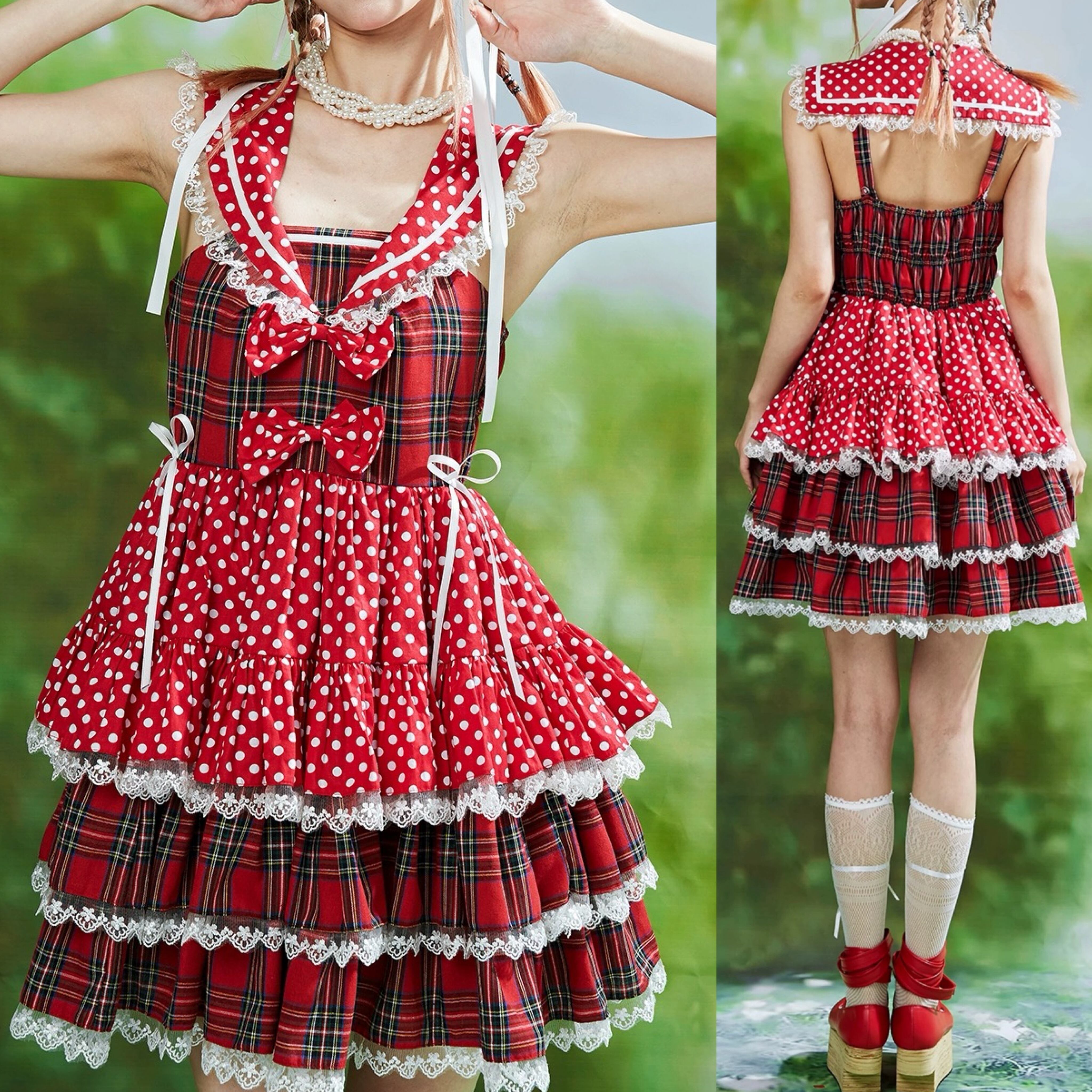 ワンピース ガーリー 可愛い リボン 水玉 ドット 赤 セーラー