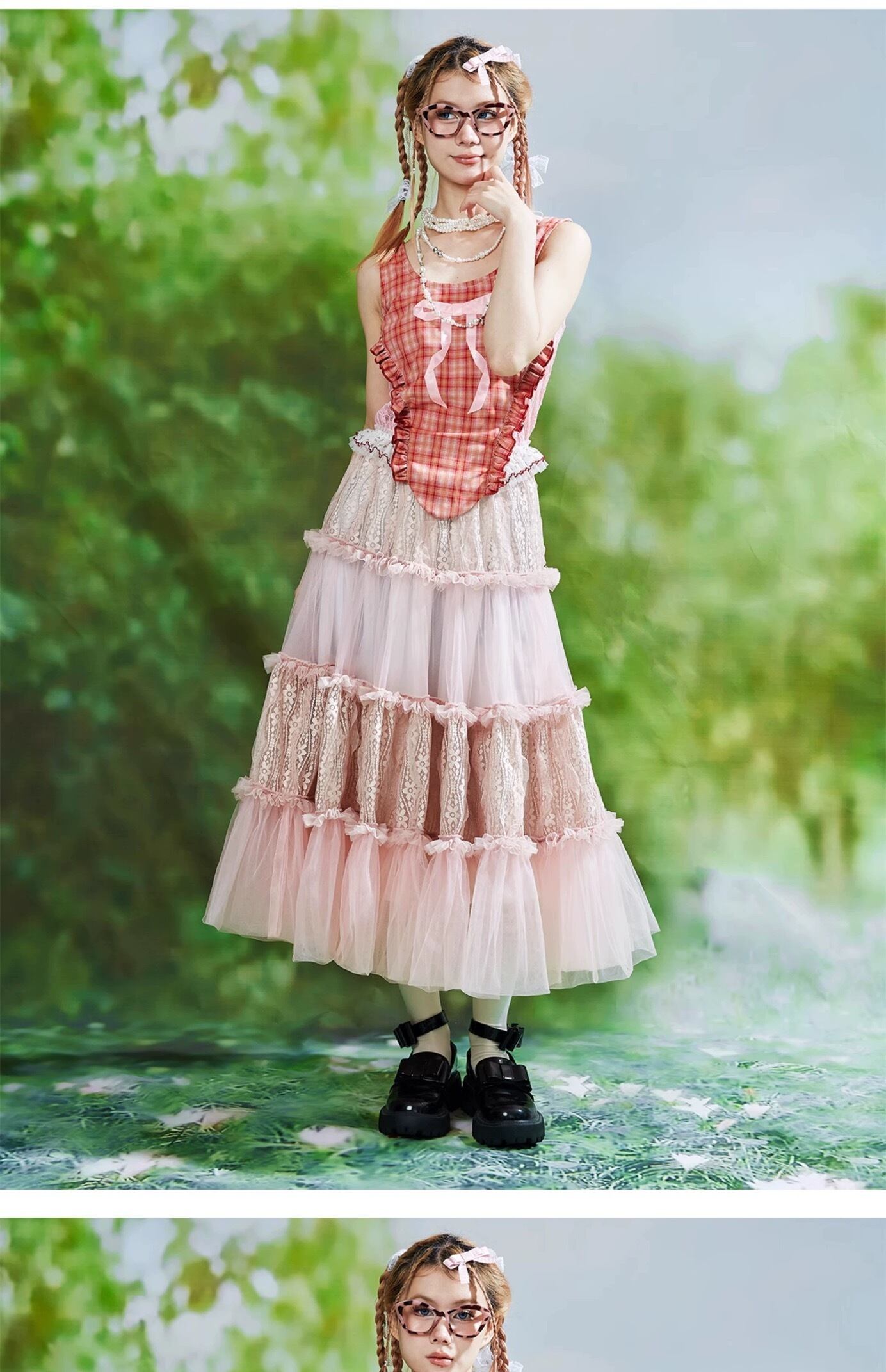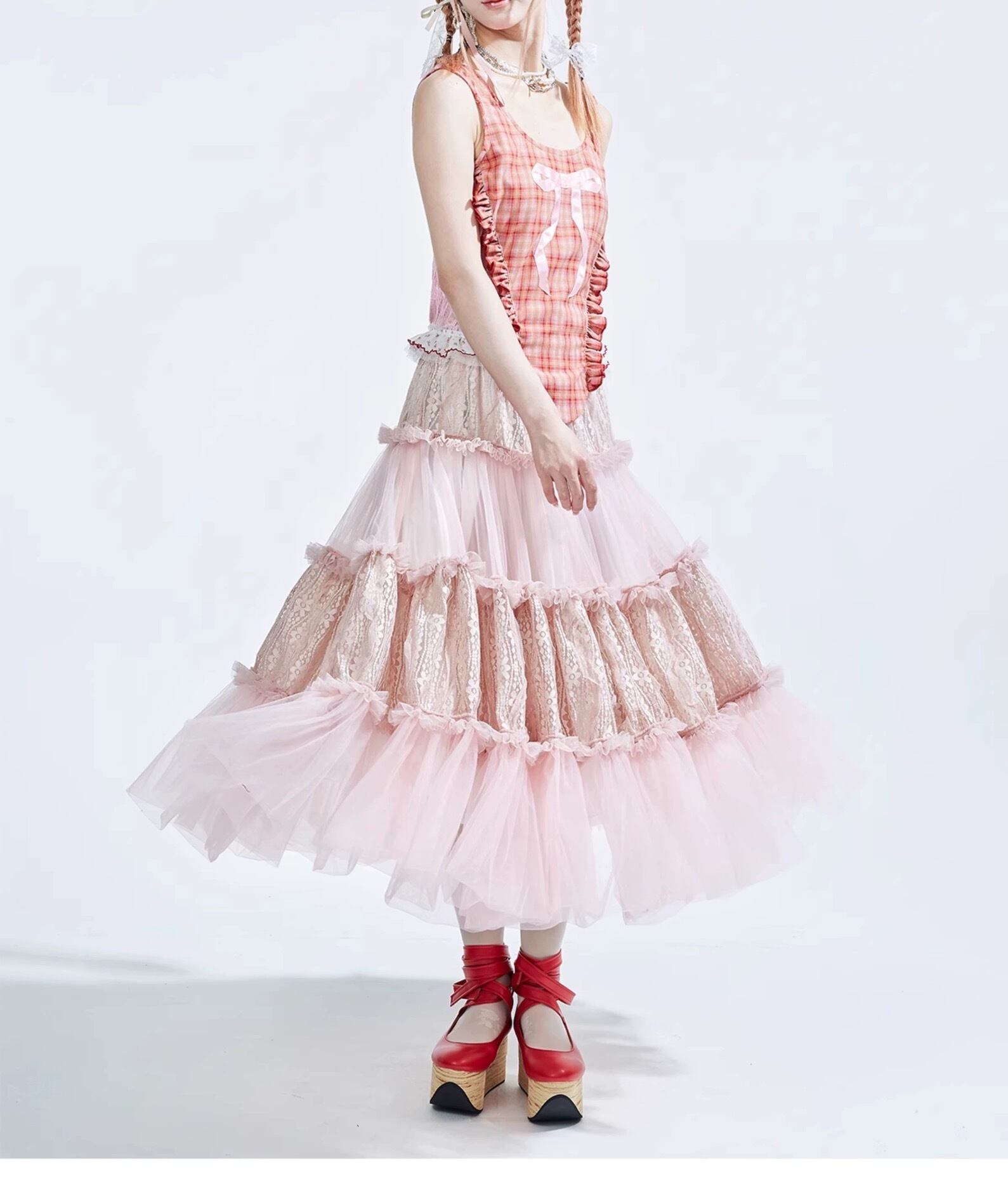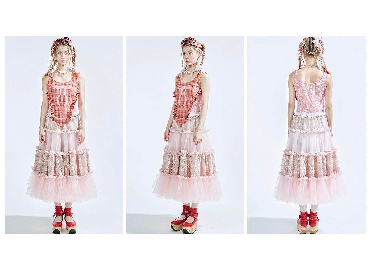 ピンク ボーダー スカート ボトムス ガーリー 可愛い マキシ リボン キラキラ