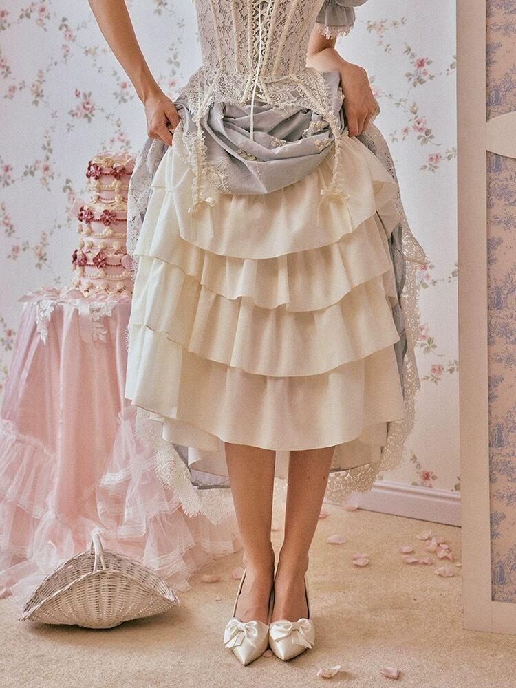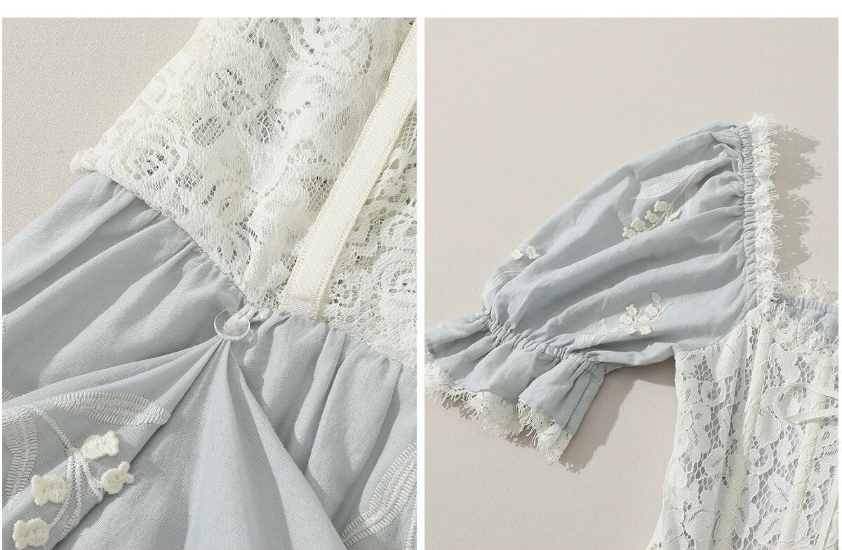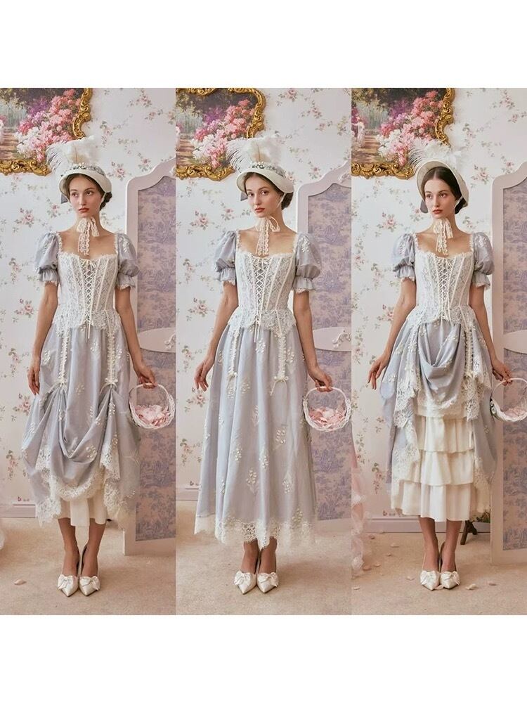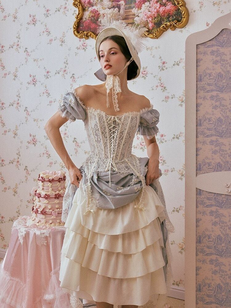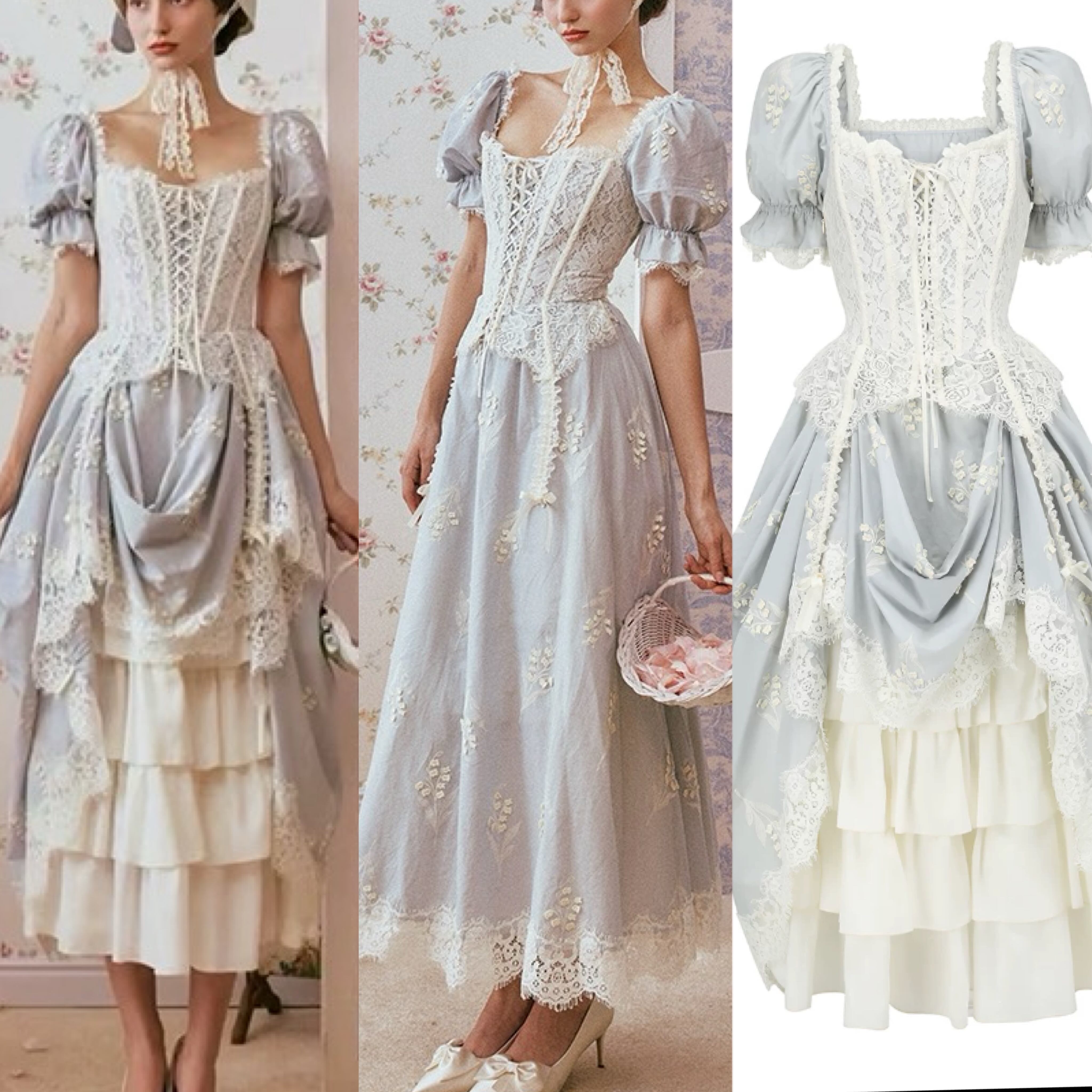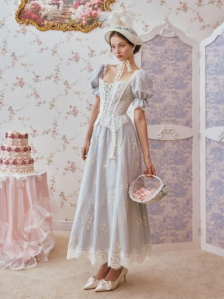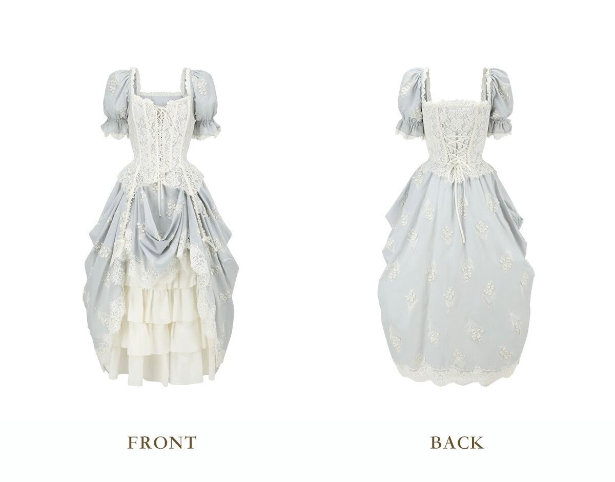 姫 プリンセス ワンピース ドレス 水色 コスプレ ガーリー ゴージャス パーティー 白 リボン レース XL