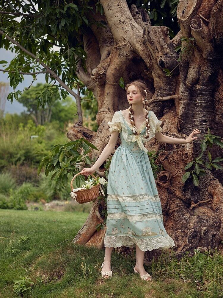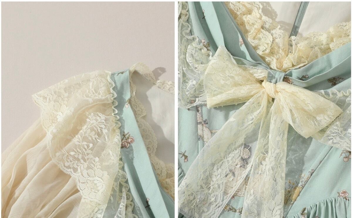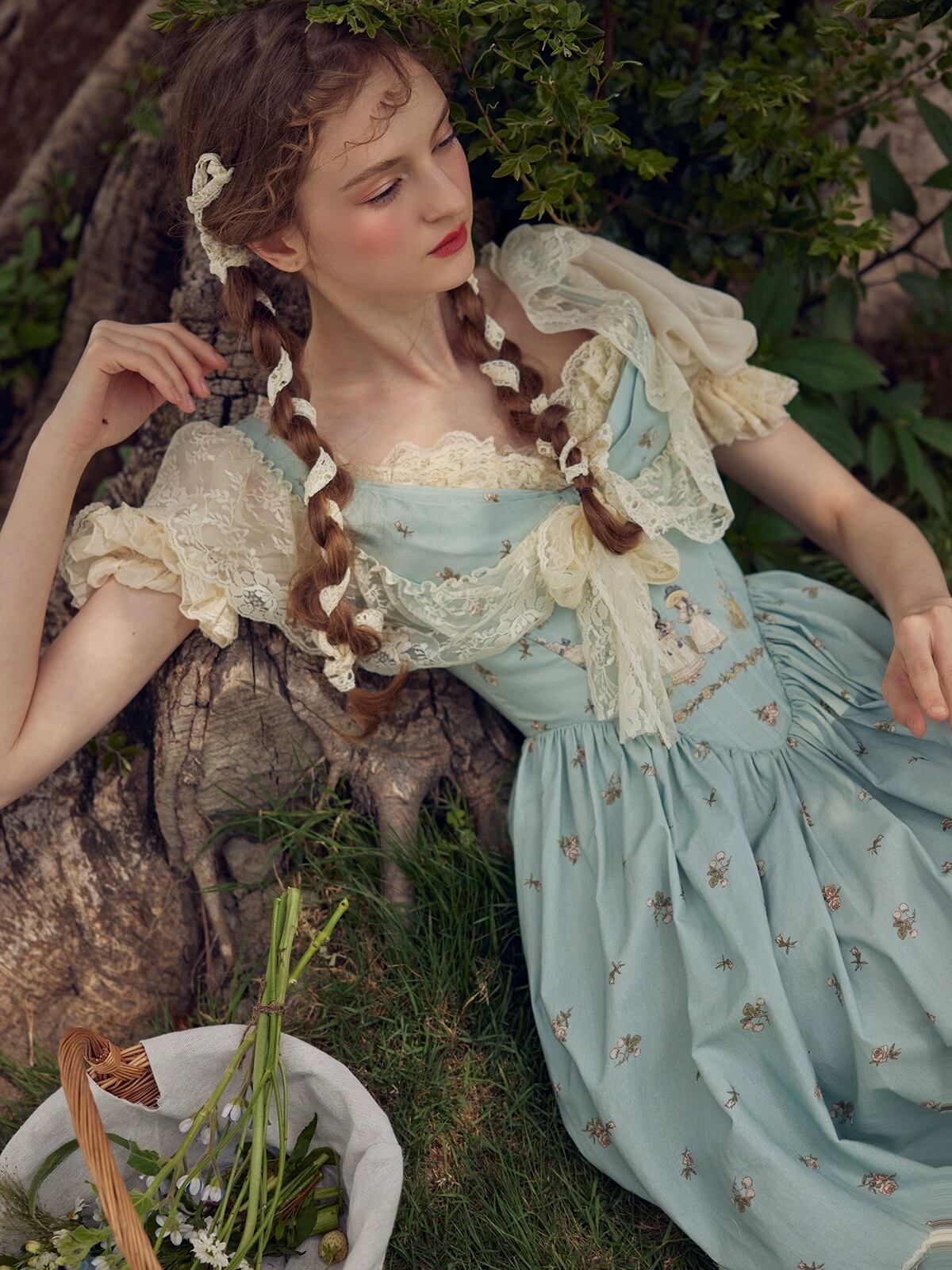 水色 花柄 フラワー ガーリー ワンピース 可愛い 姫 プリンセス コスプレ