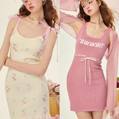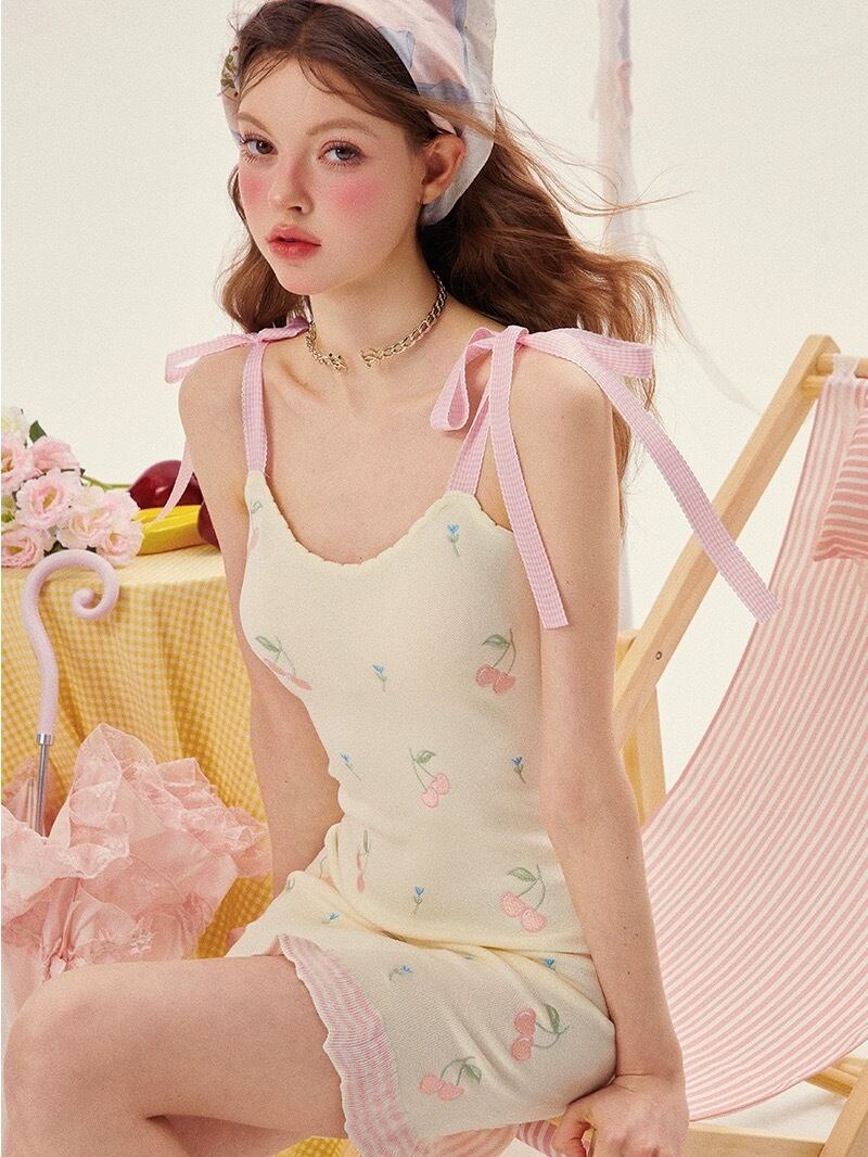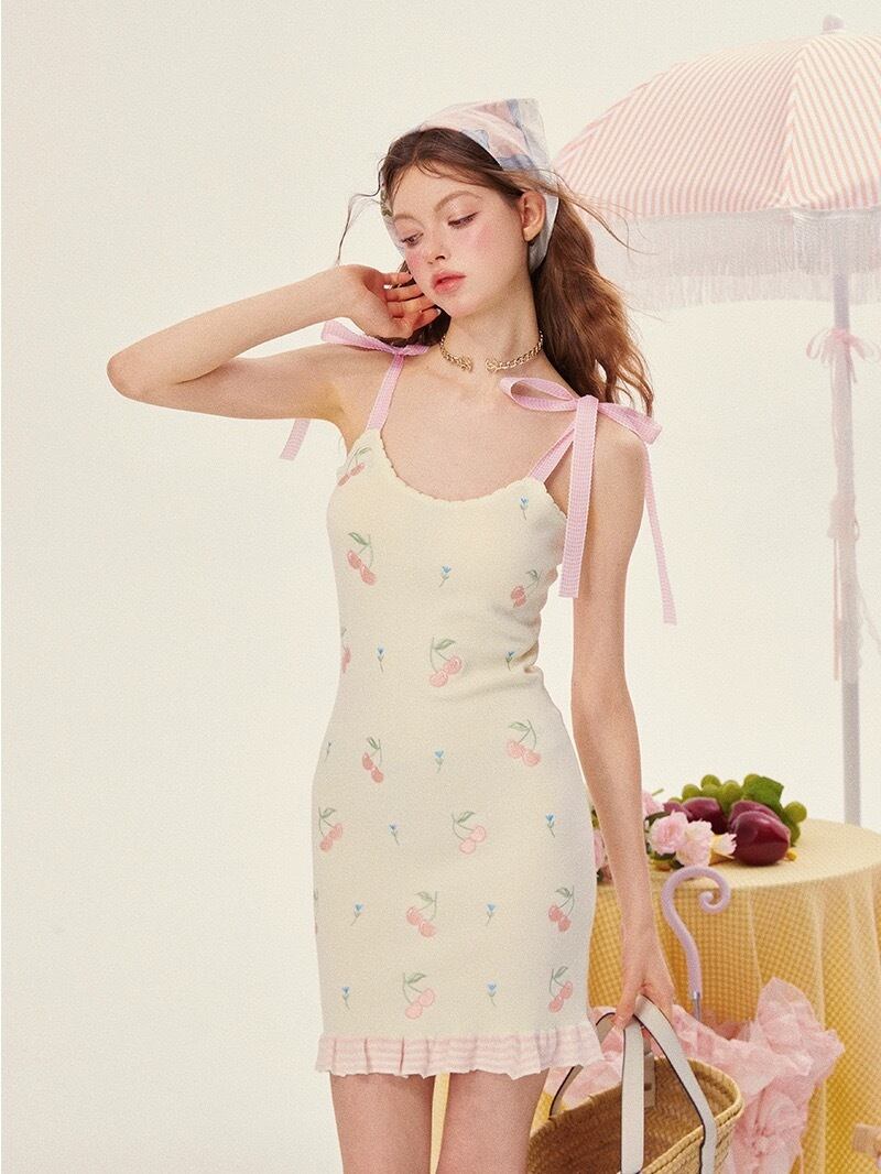 黄色 花柄 ピンク リボン ガーリー 可愛い ワンピース
