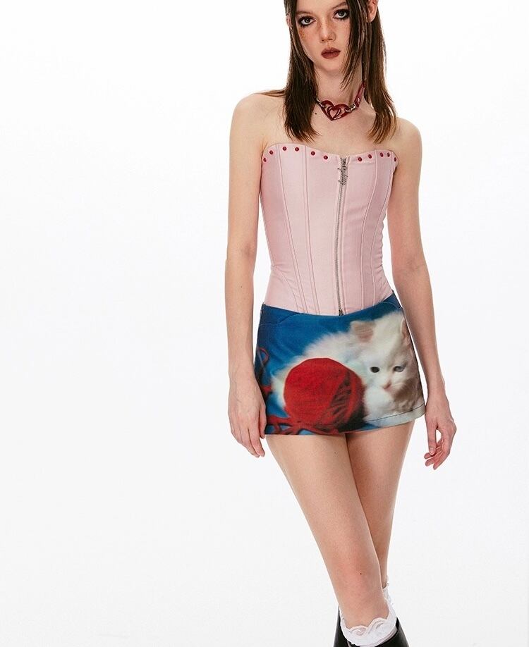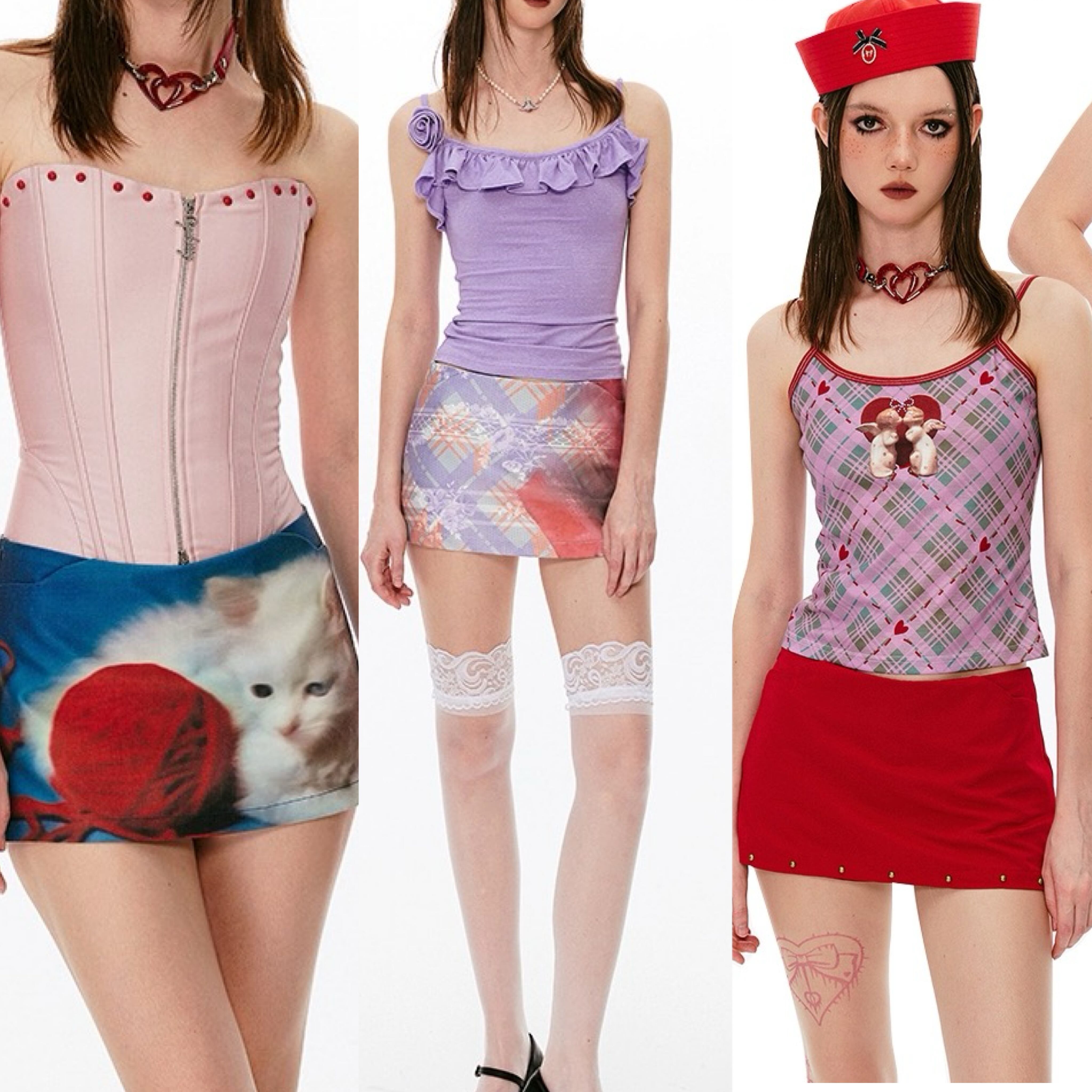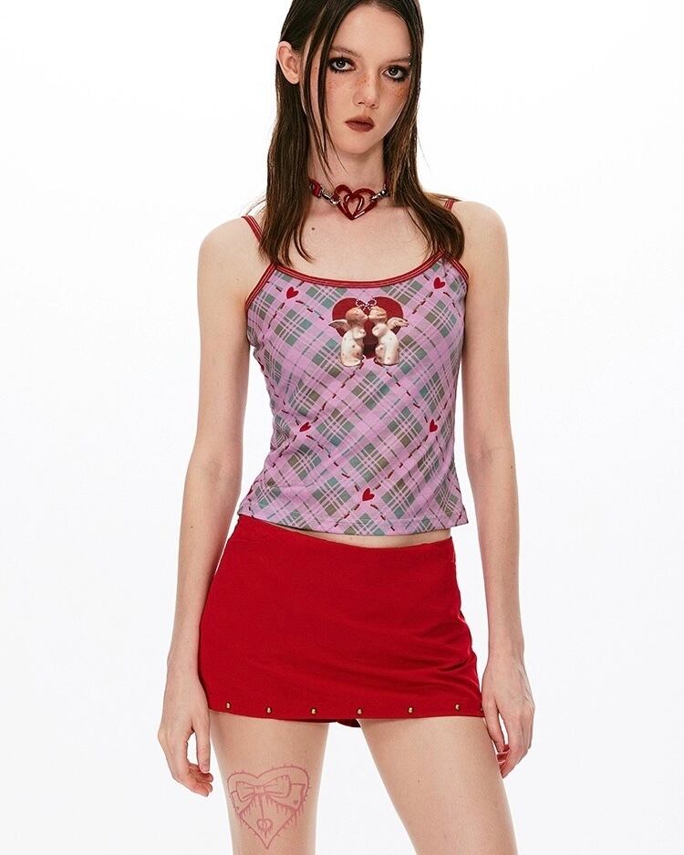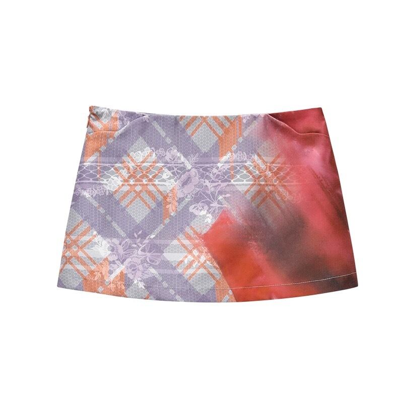 赤 紫 チェック 短い ミニスカート ボトムス ねこ 水色