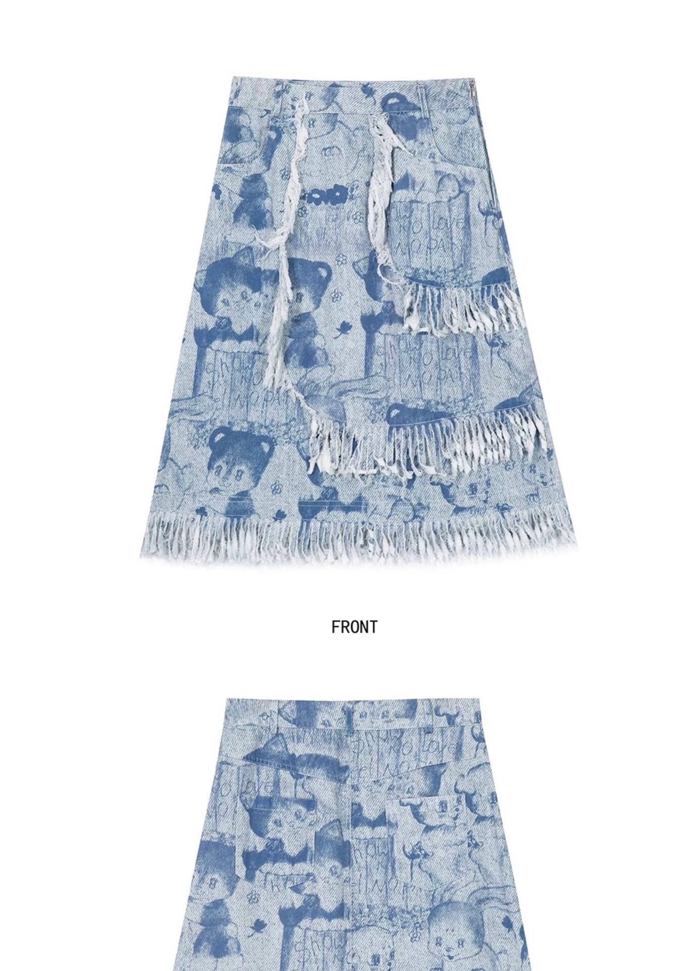 ボトムス 水色 くまさん ジーンズ デニム スカート 可愛い