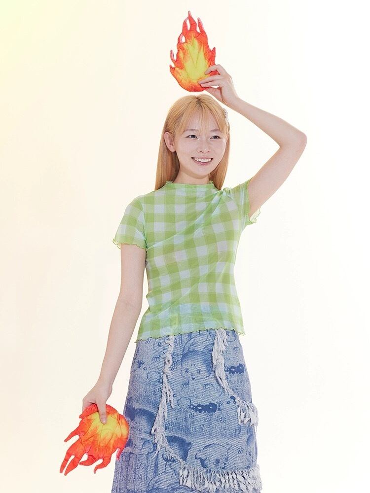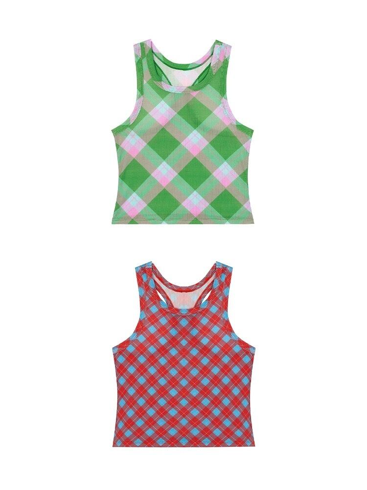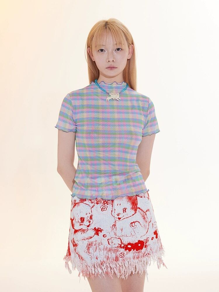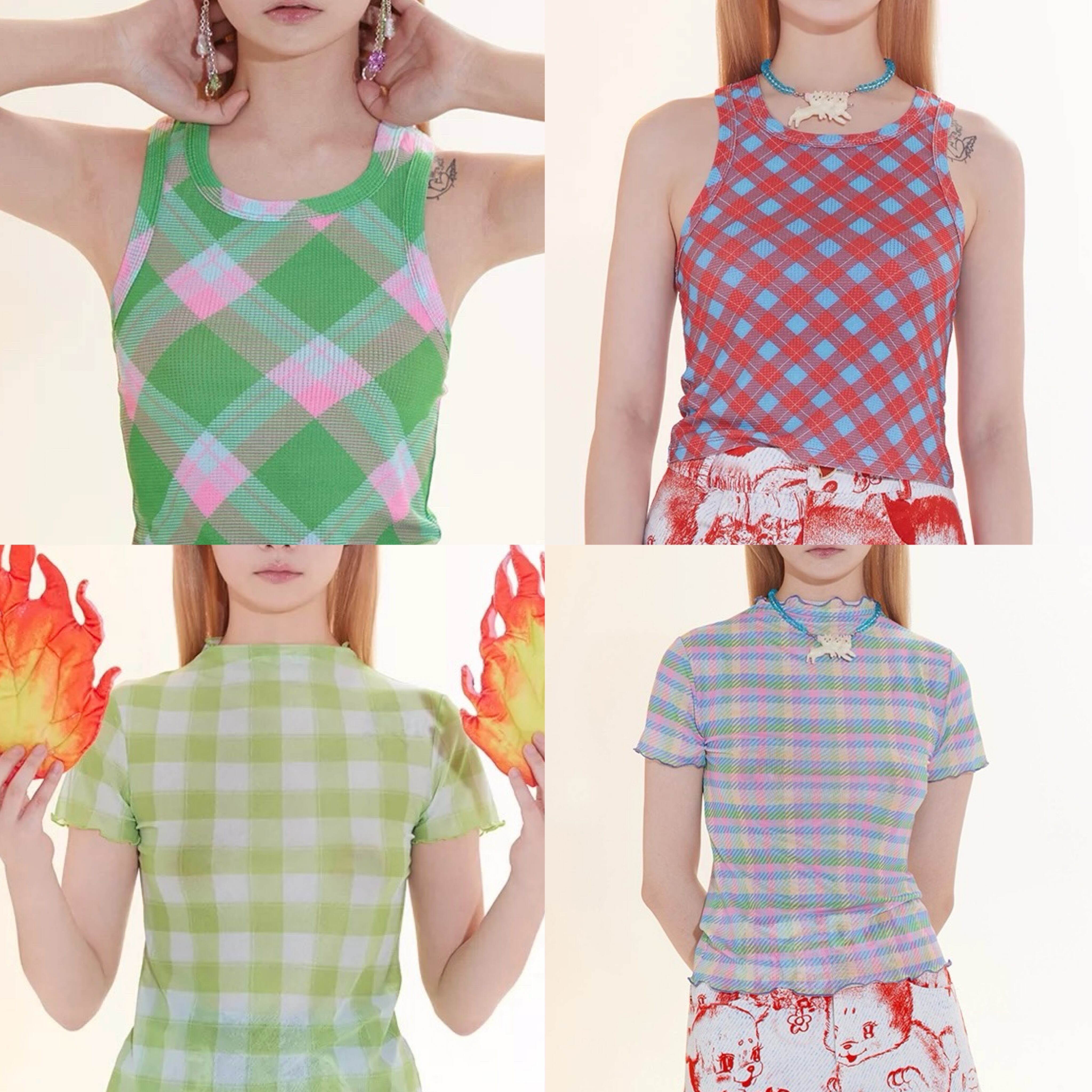 トップス 赤 緑 ガーリー カジュアル Tシャツ チェック
