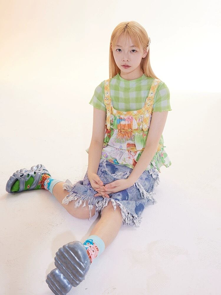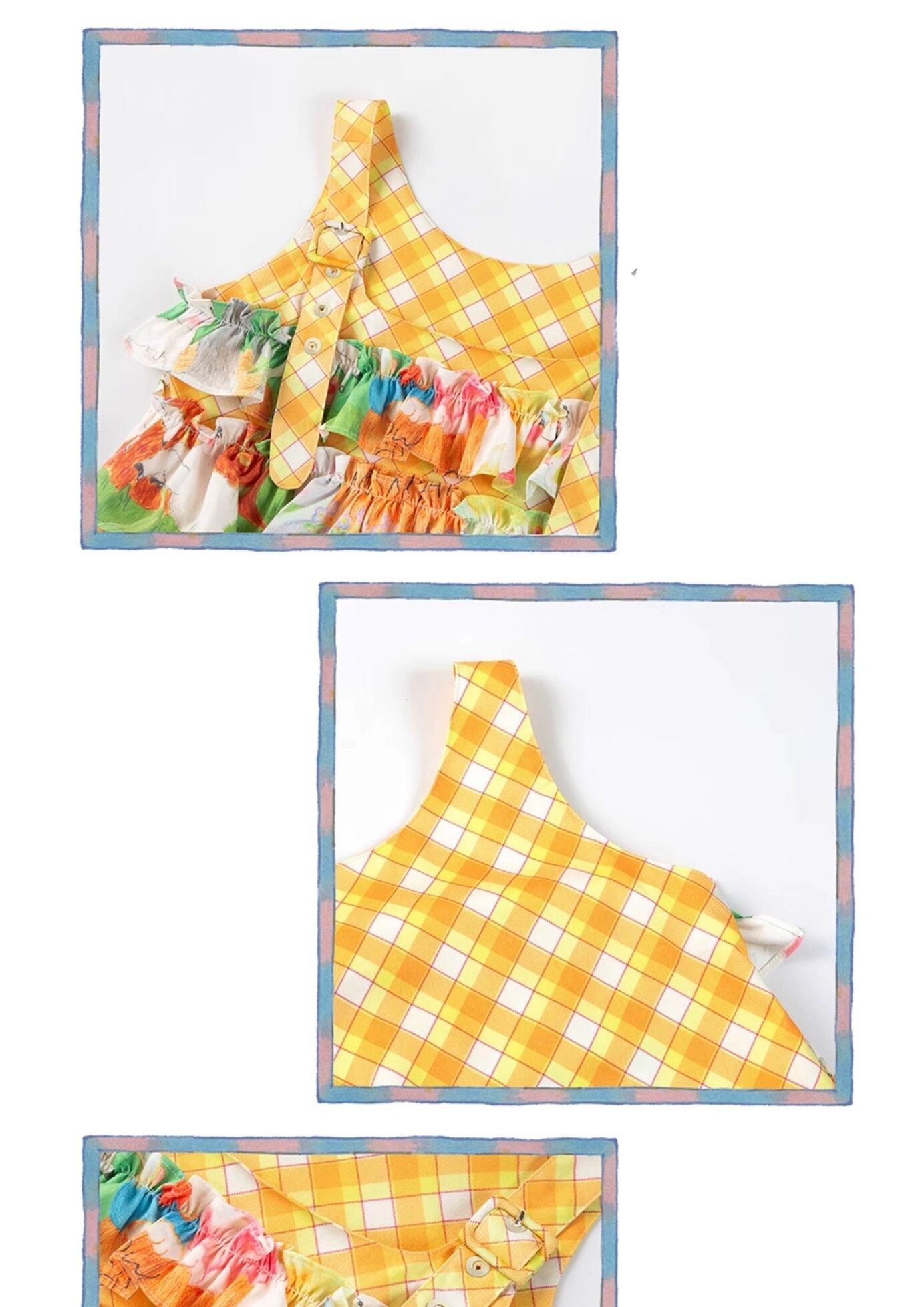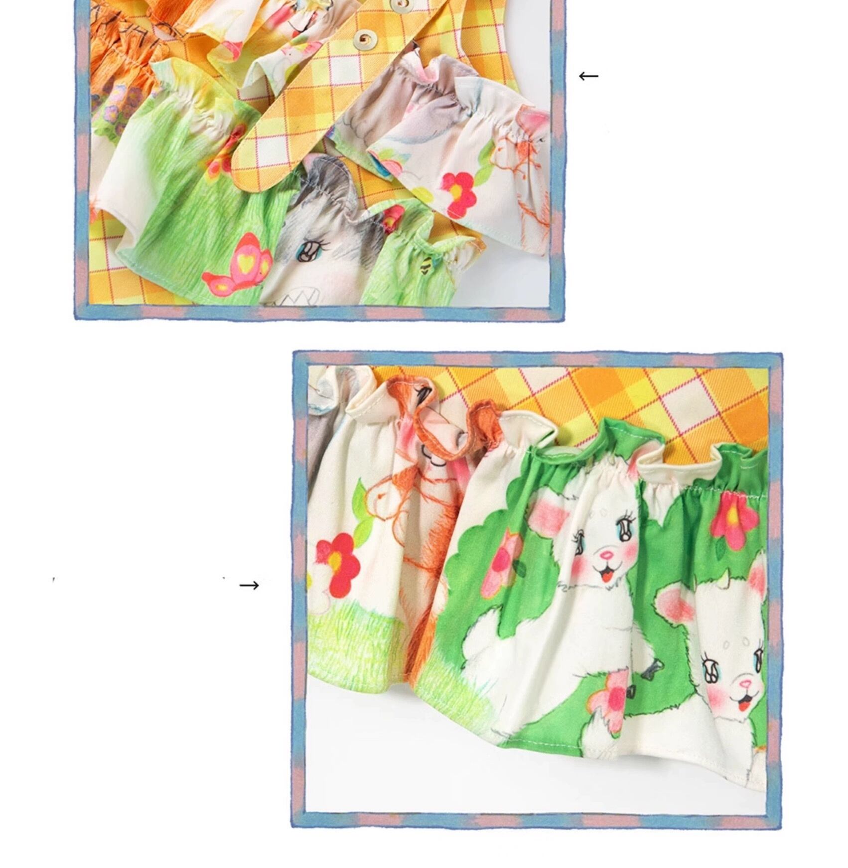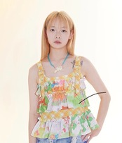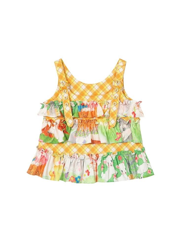 黄色 チェック トップス ブラウス ガーリー フリル キャミソール 可愛い アニマル 緑