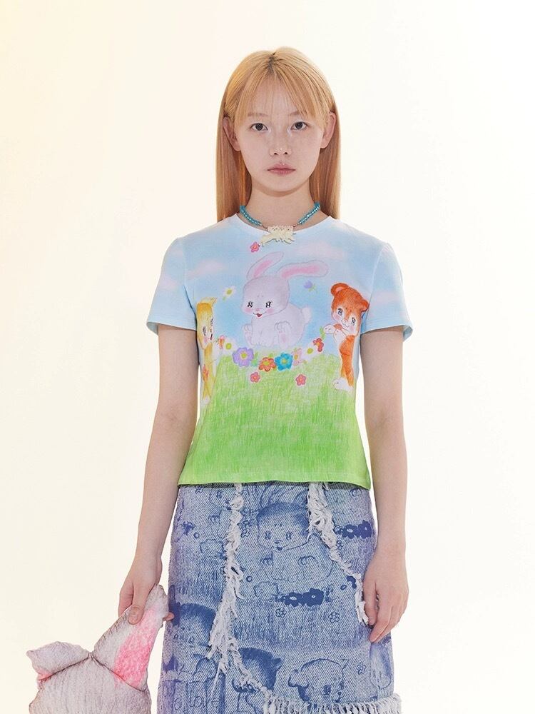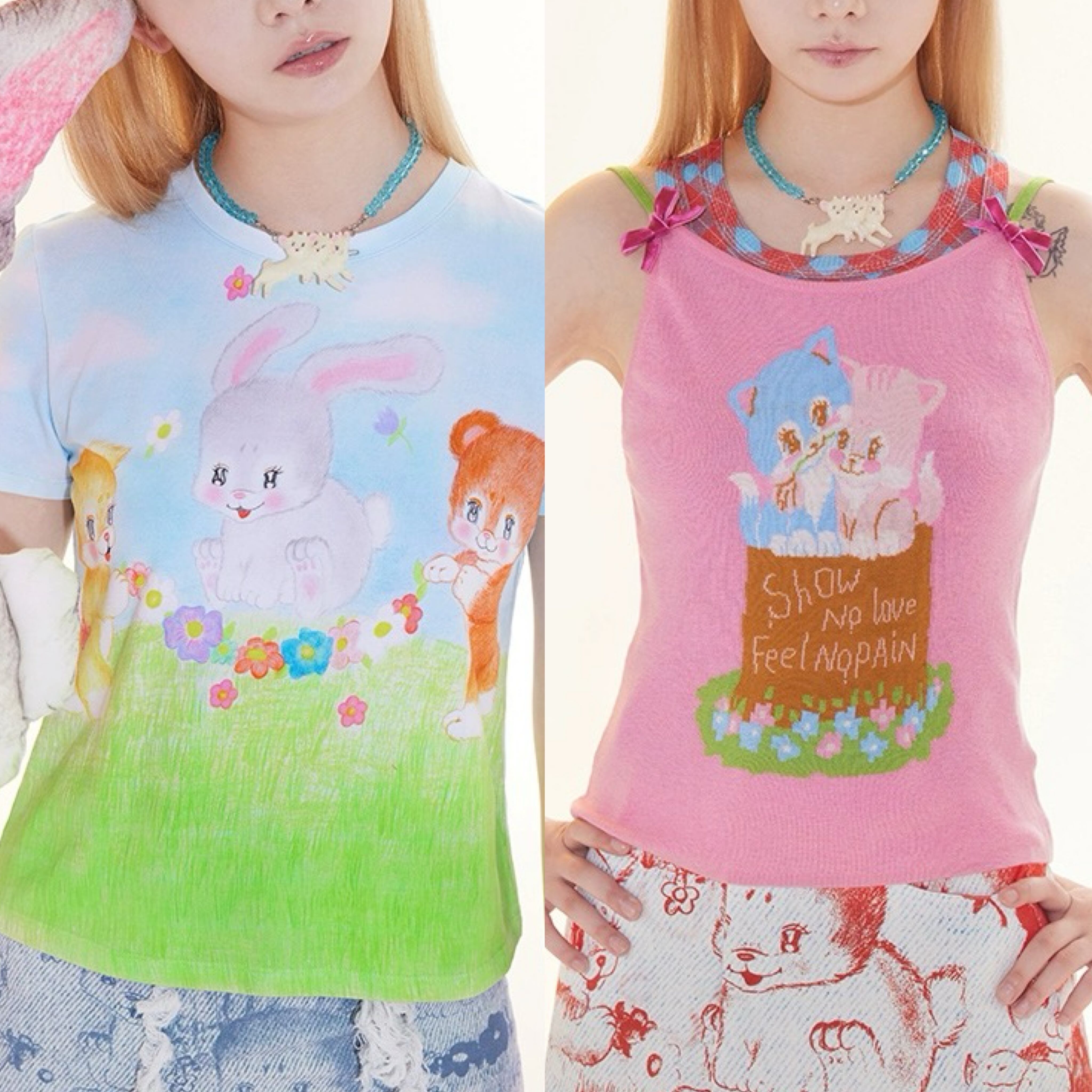 ピンク 水色 くま うさぎ 可愛い トップス ブラウス 緑 原宿 キャミソール Tシャツ