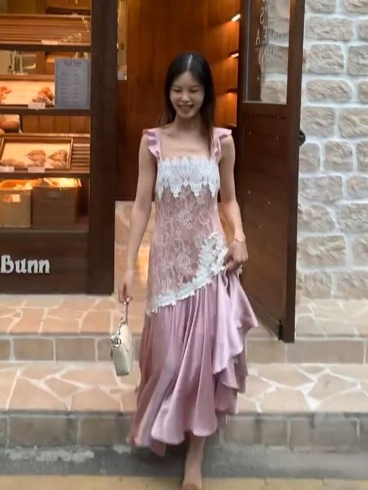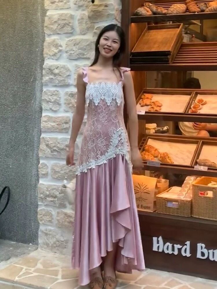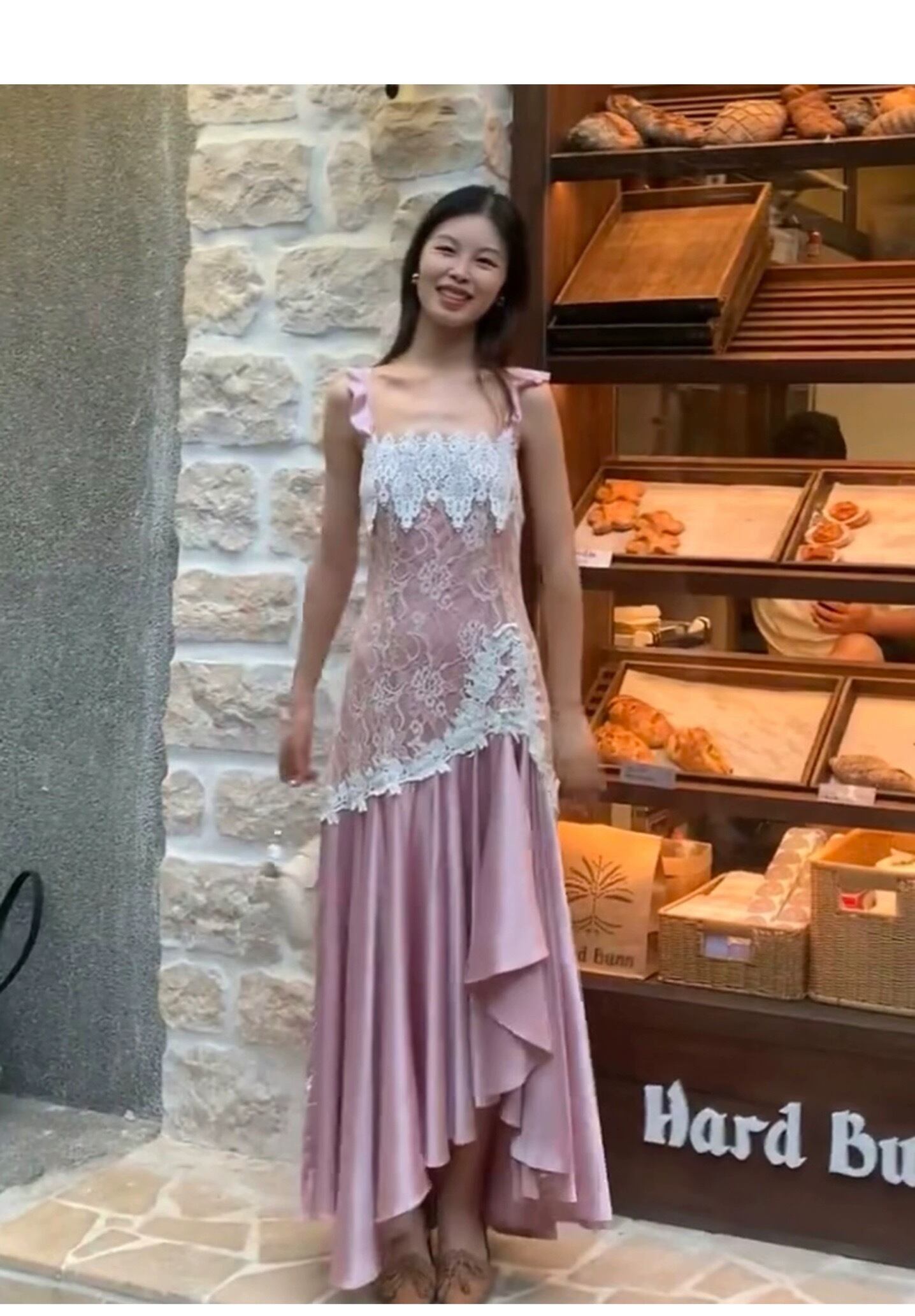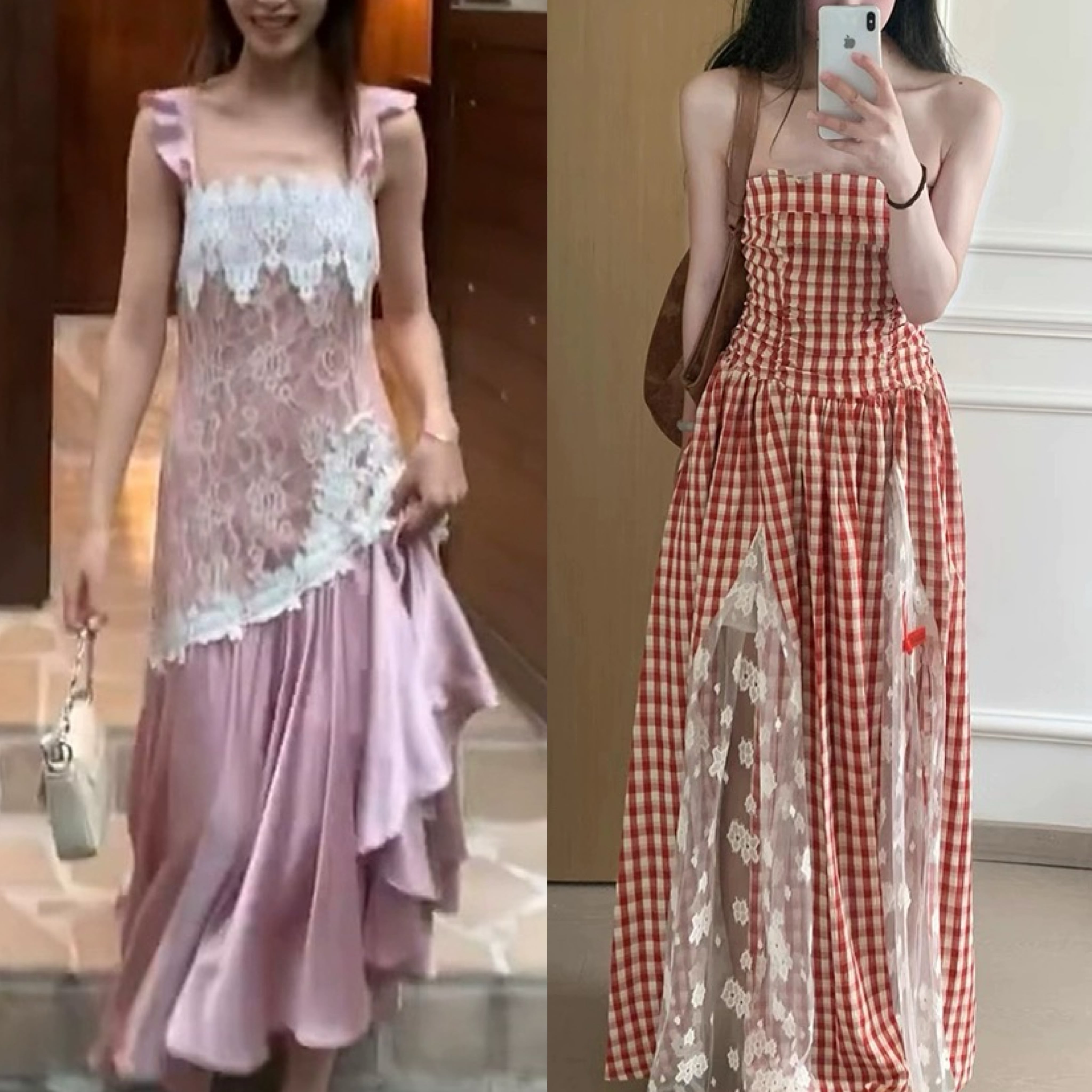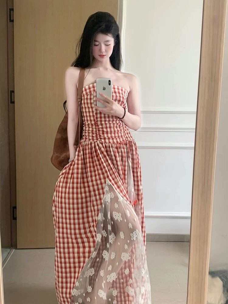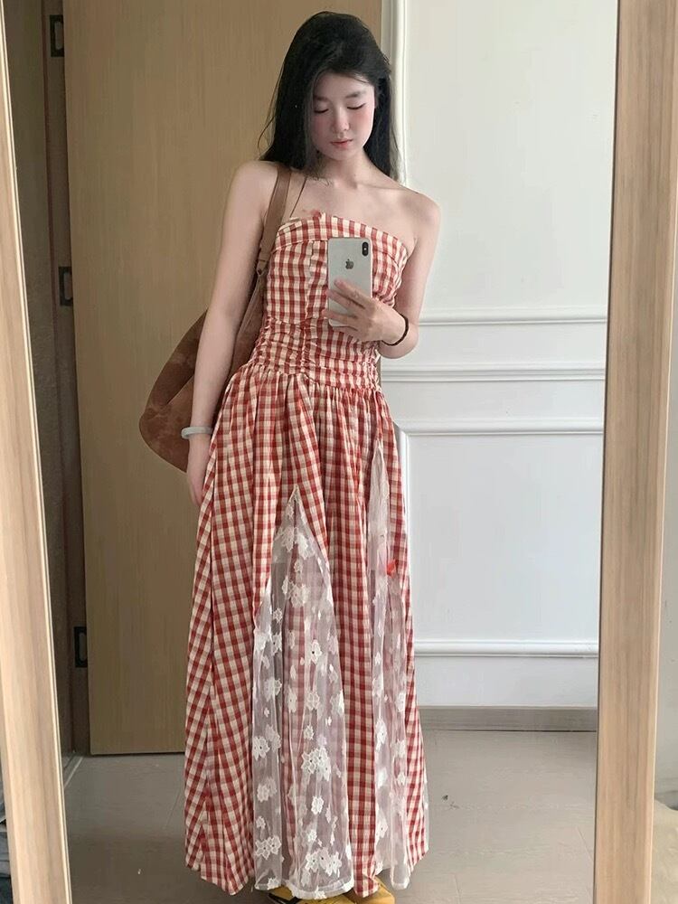 ピンク 赤 チェック ガーリー マキシ ワンピース