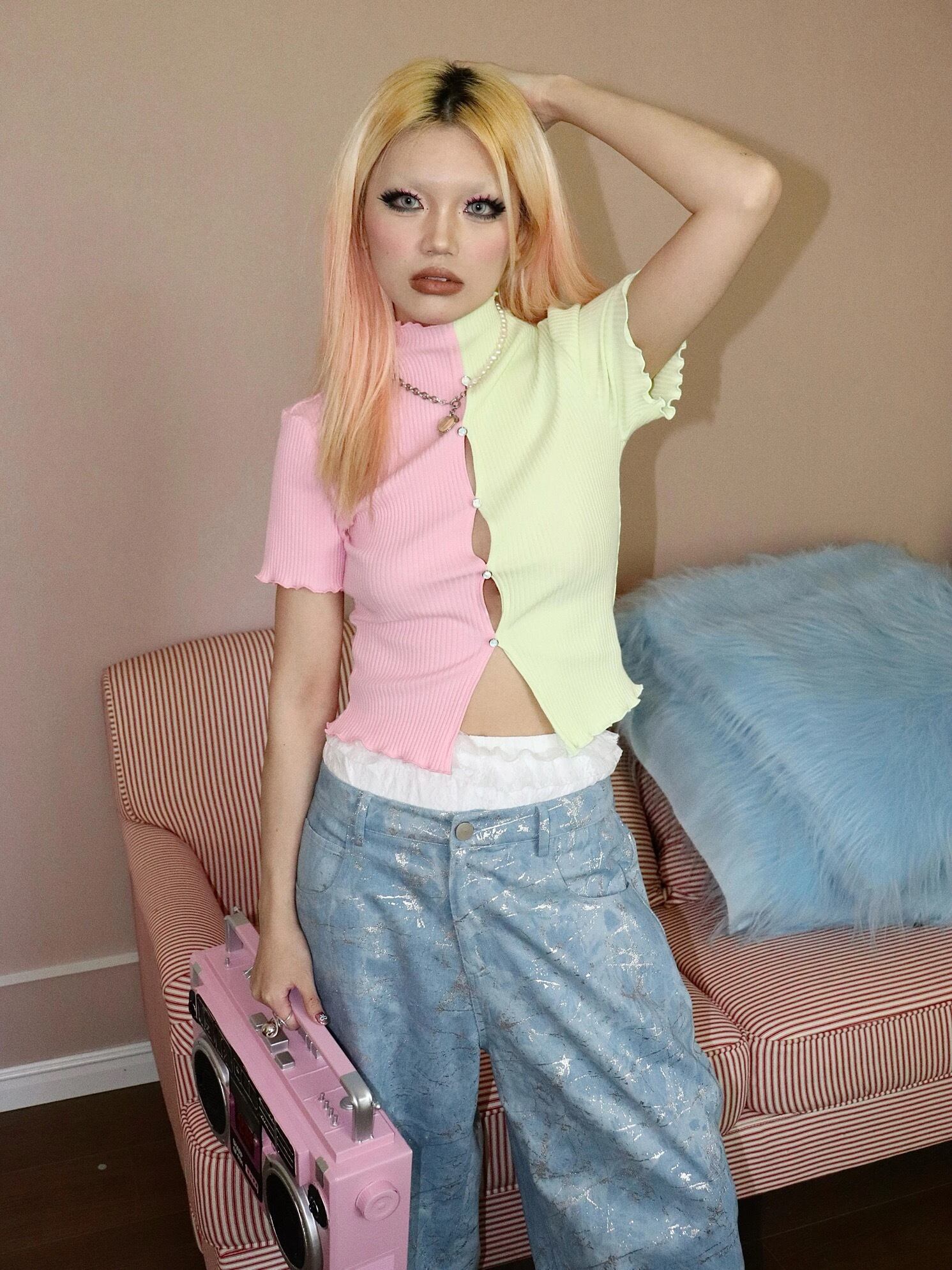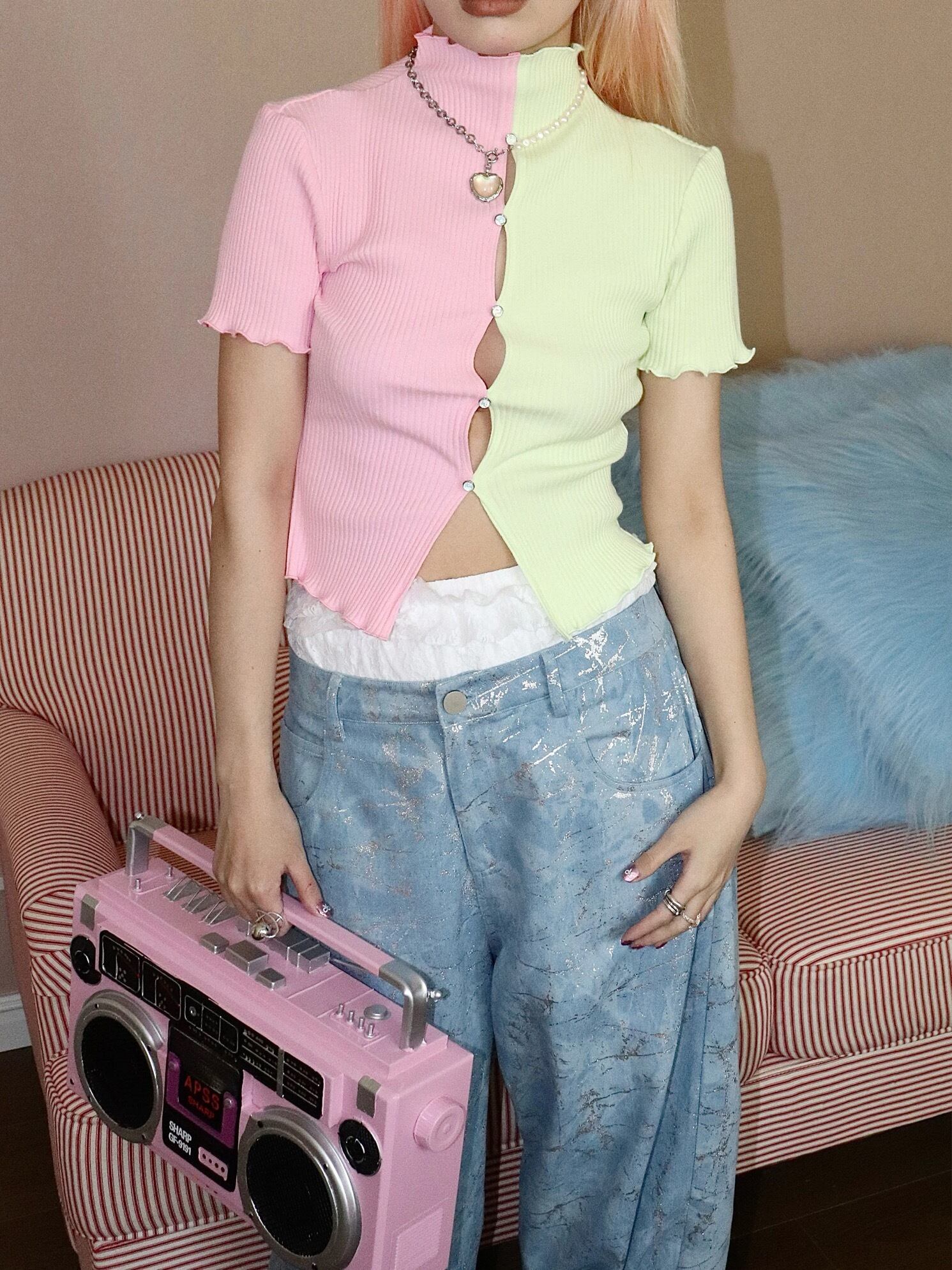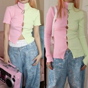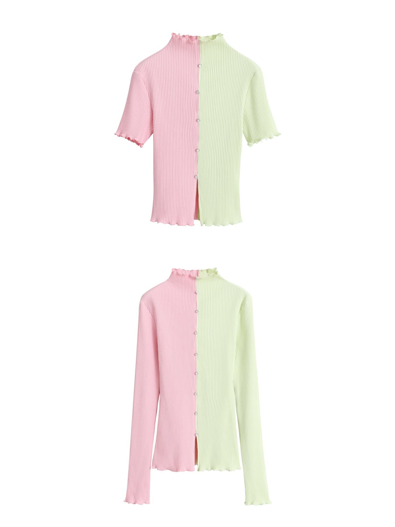 バイカラー 半袖 長袖 カーディガン ブラウス トップス