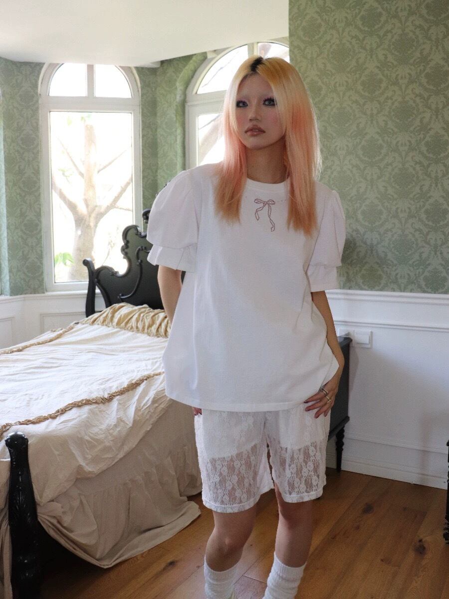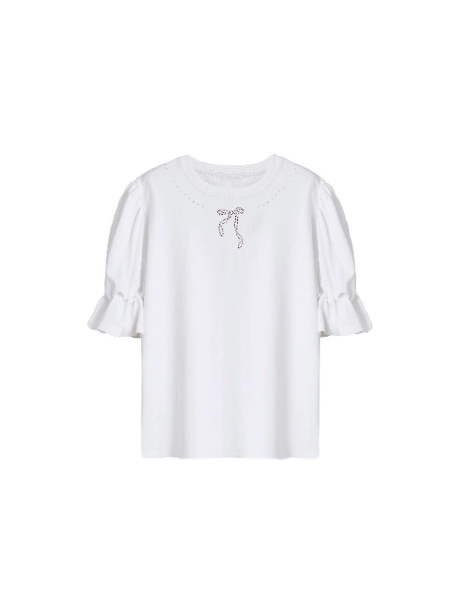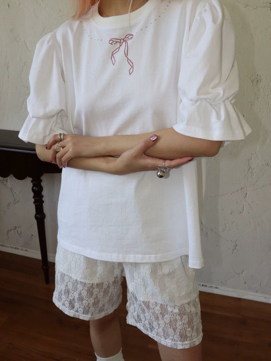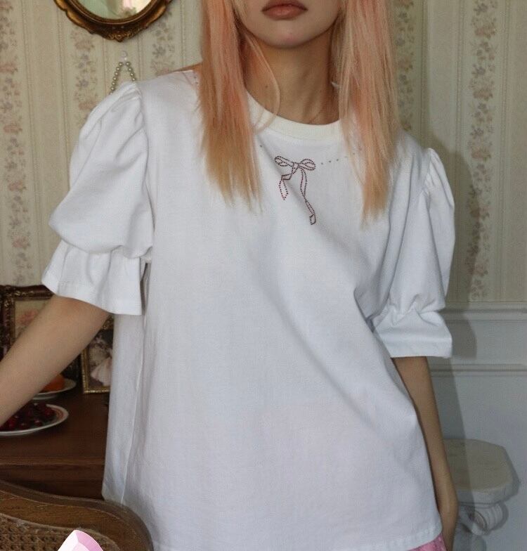 可愛い シンプル 白 ホワイト Tシャツ リボン ガーリー