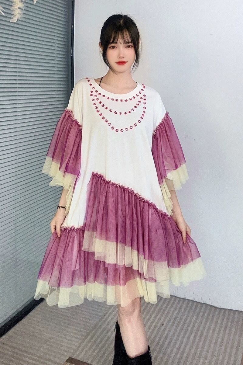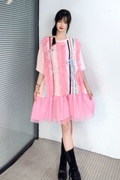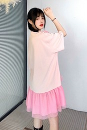 ピンク 白 黒 フリル ゆったり ガーリー ワンピース Tシャツ 可愛い