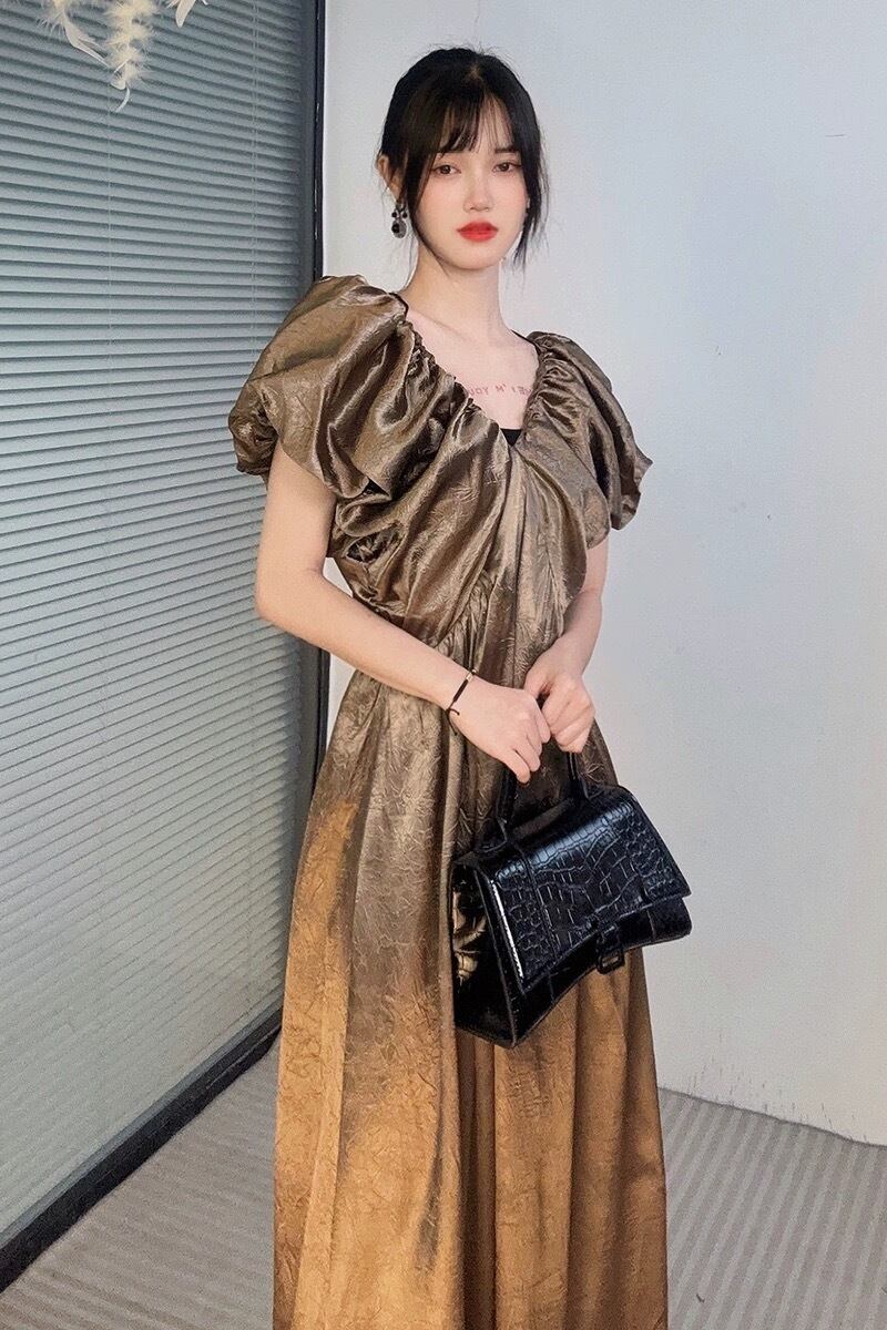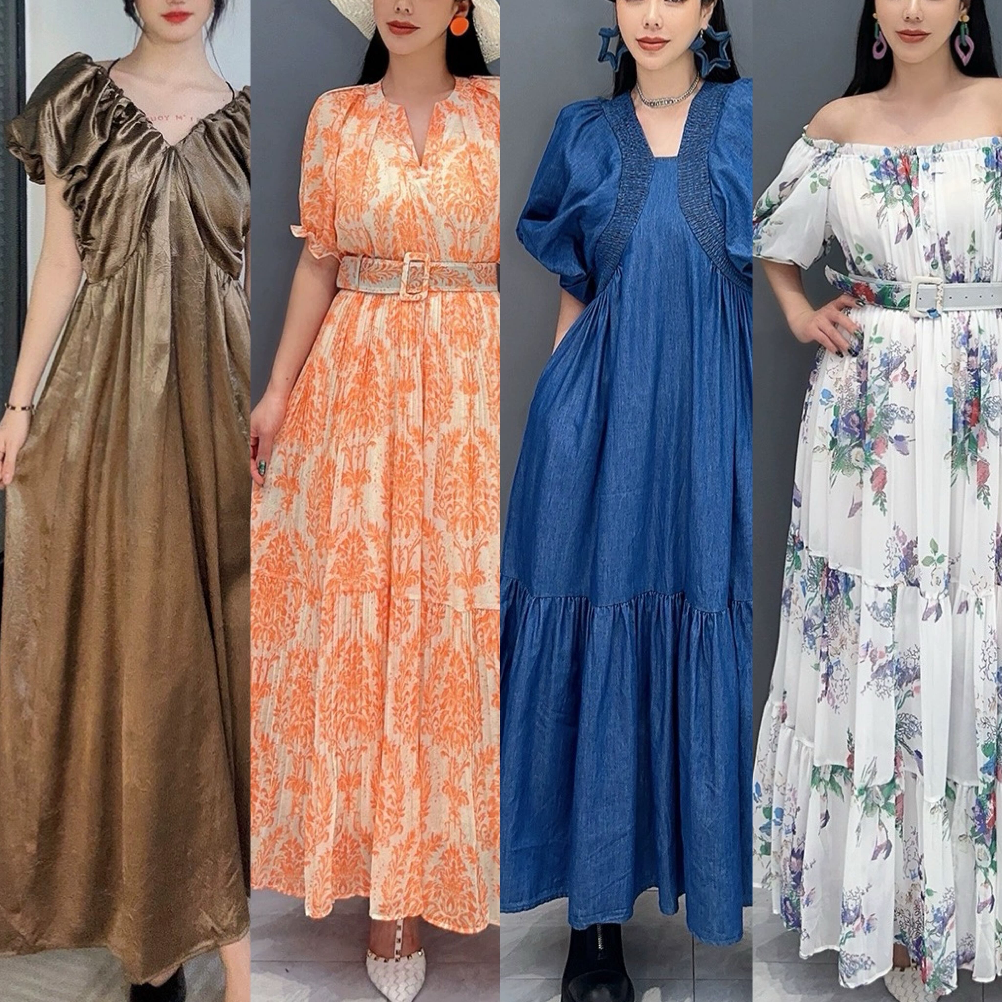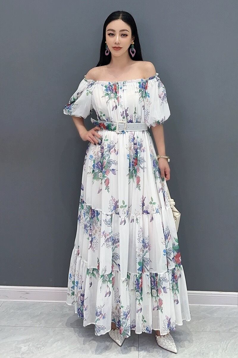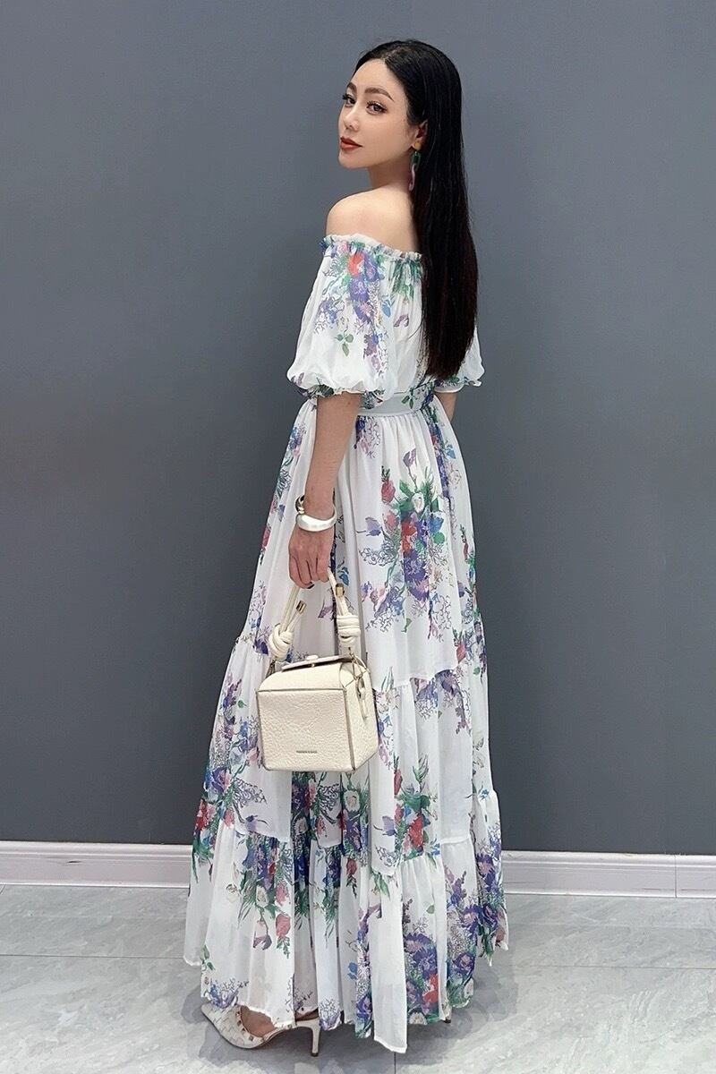 マキシ ロング ワンピース 白 オレンジ 花柄 フラワー エレガント