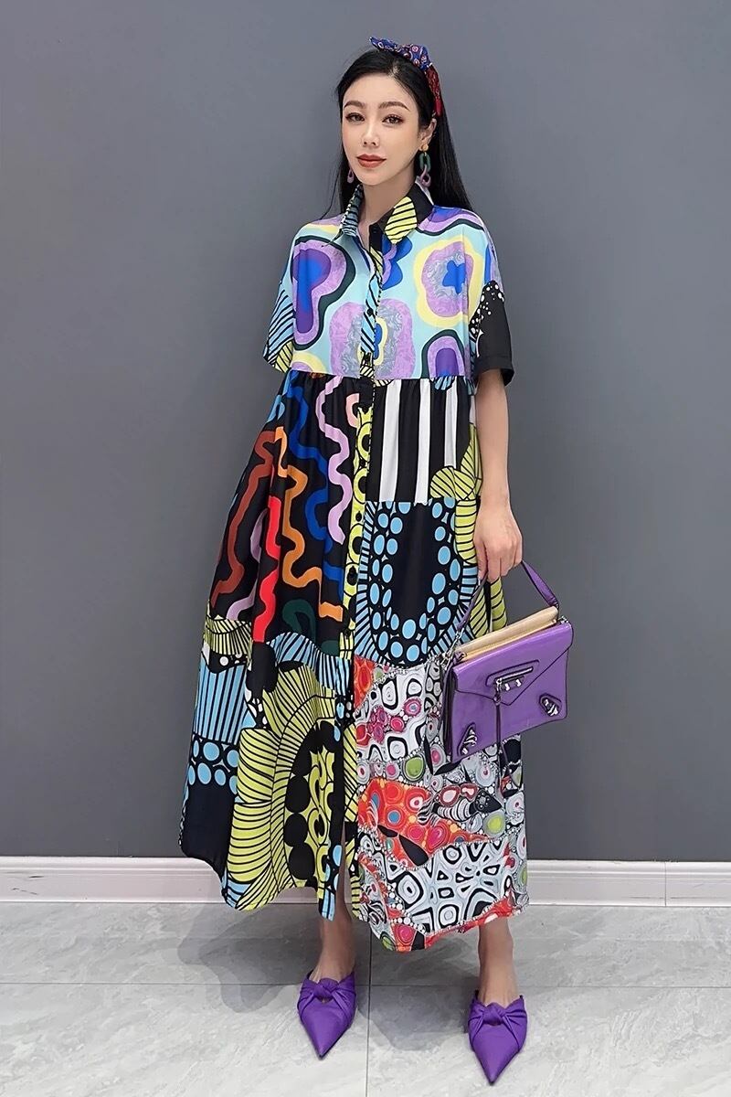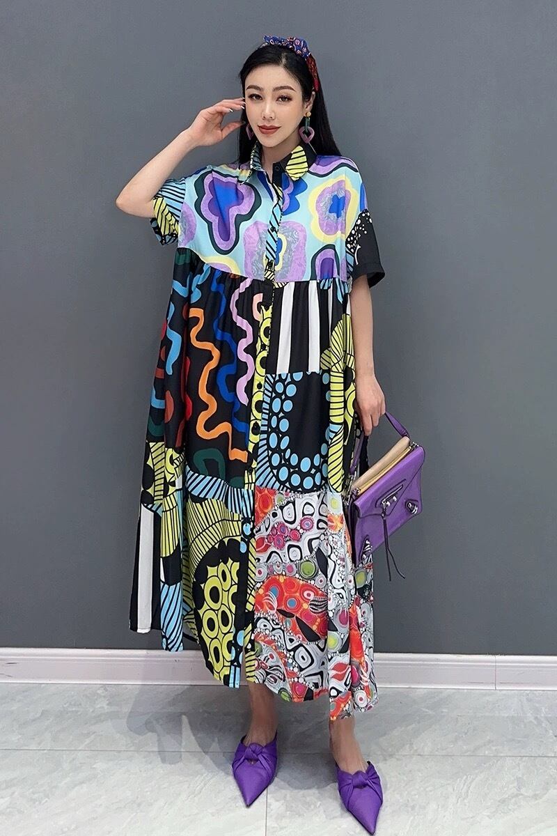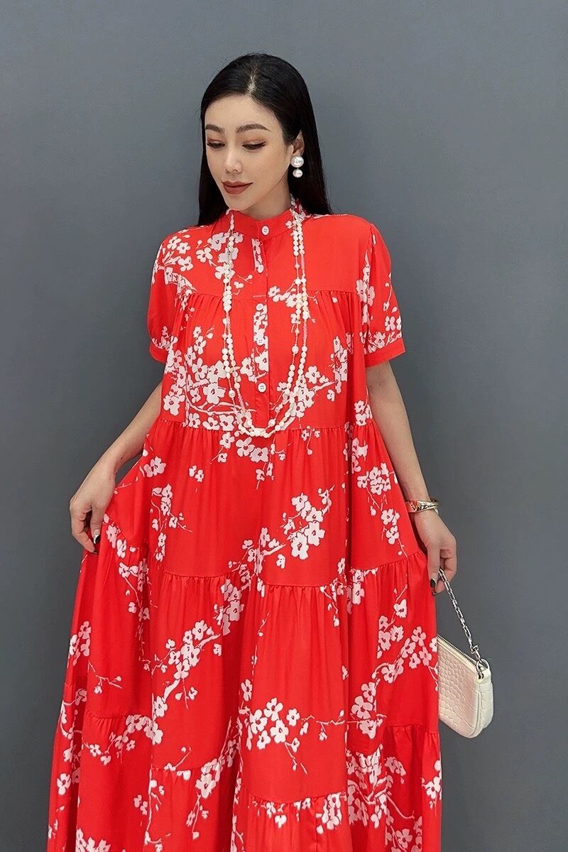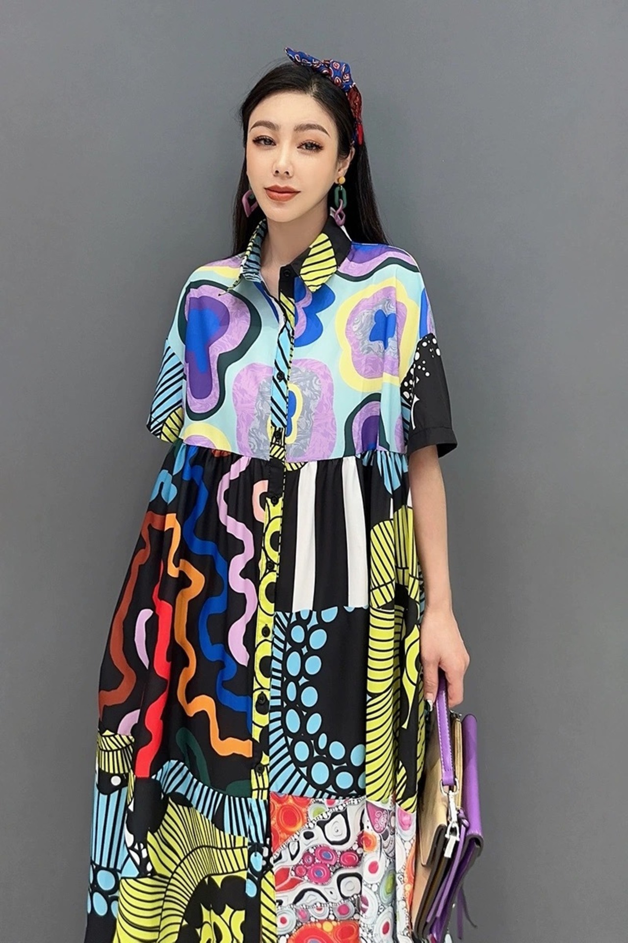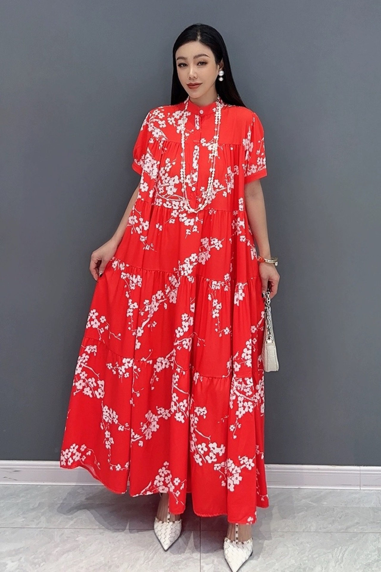 カラフル 赤 ワンピース 柄 海 花柄 ワンピース ブラウス シャツ