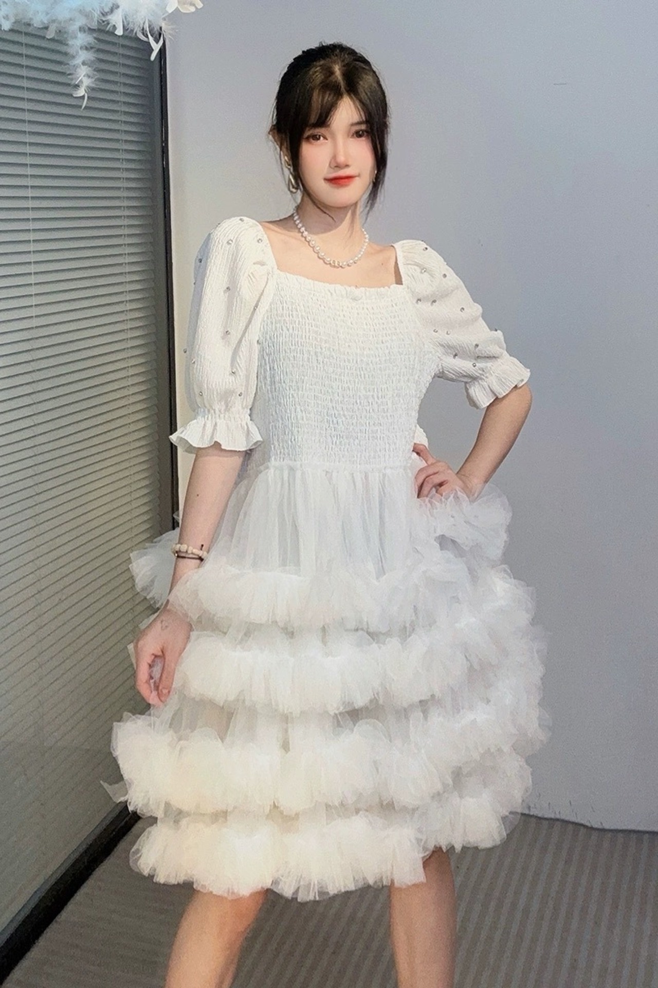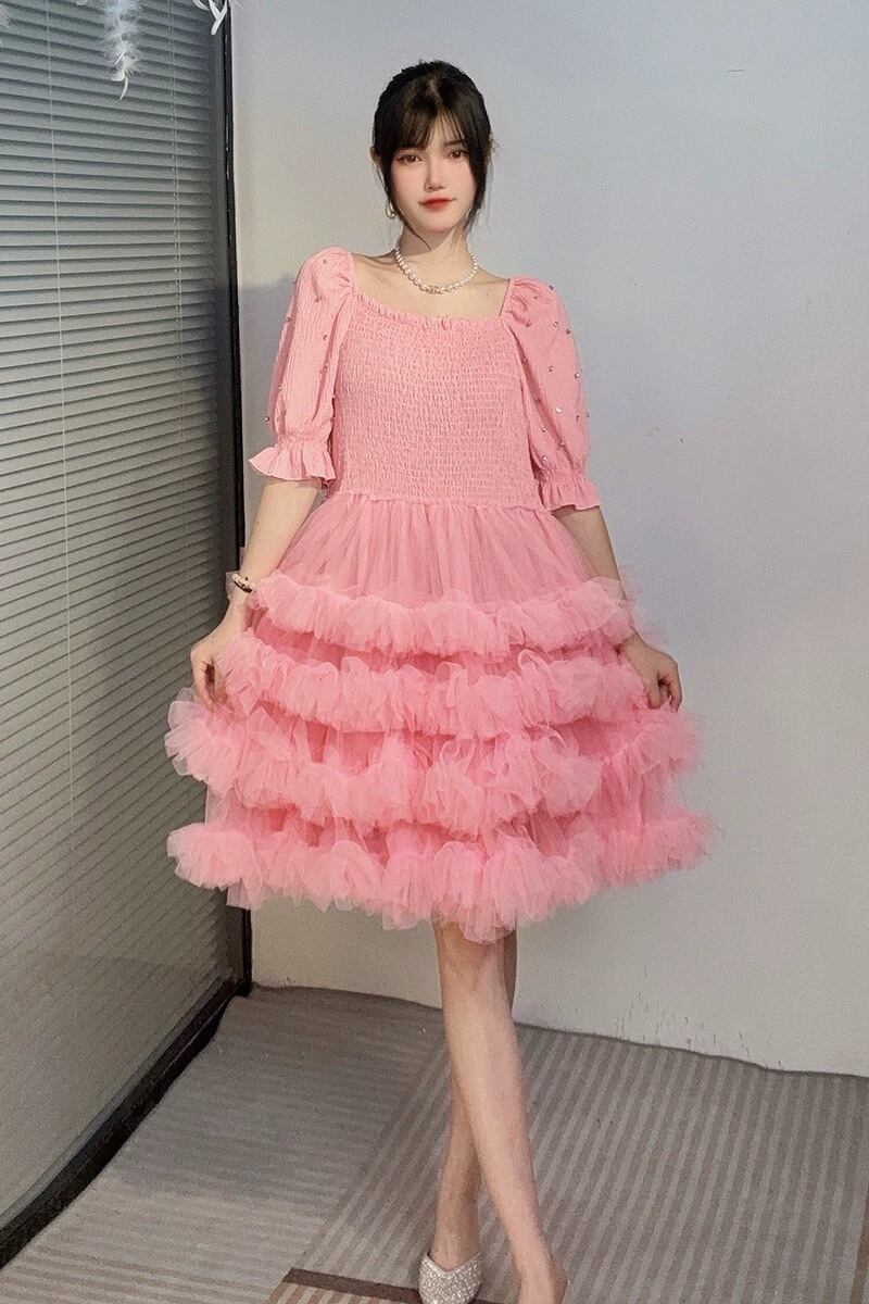 ピンク 白 ホワイト ワンピース ガーリー エレガント 可愛い ゆったり