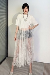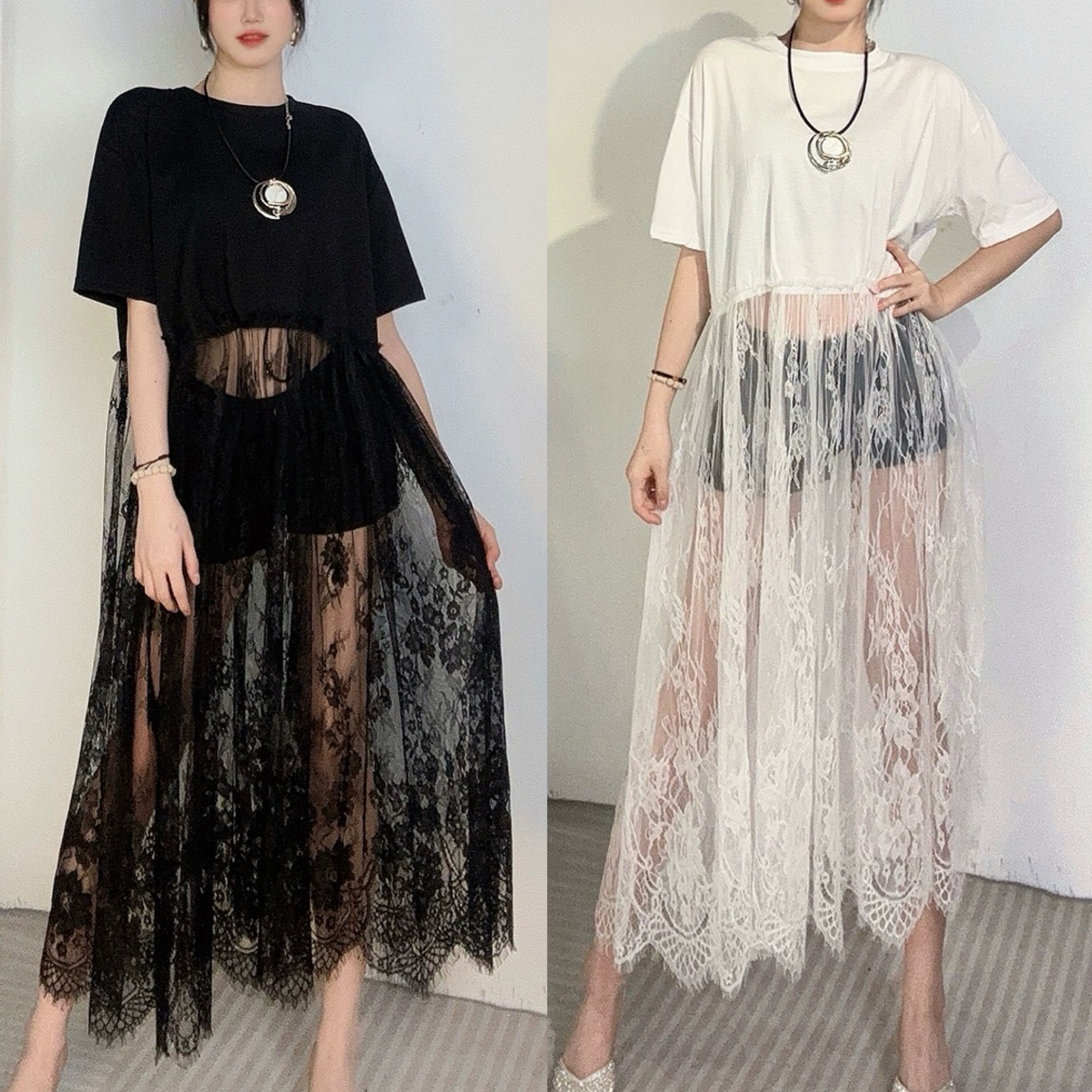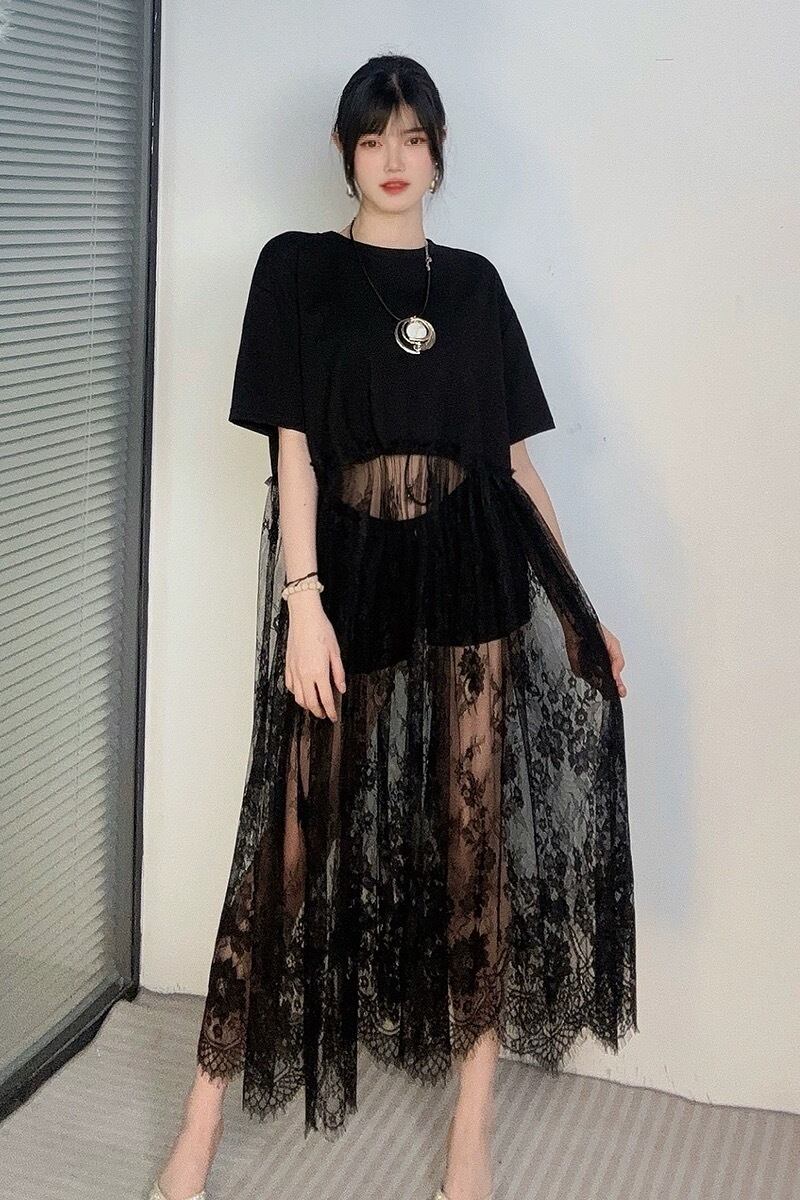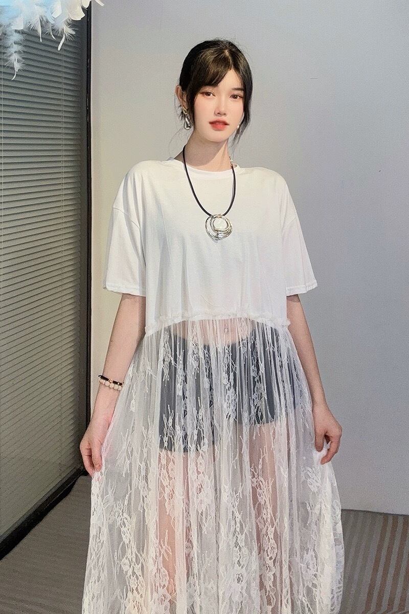 黒 白 レース ワンピース エレガント ブラウス Tシャツ