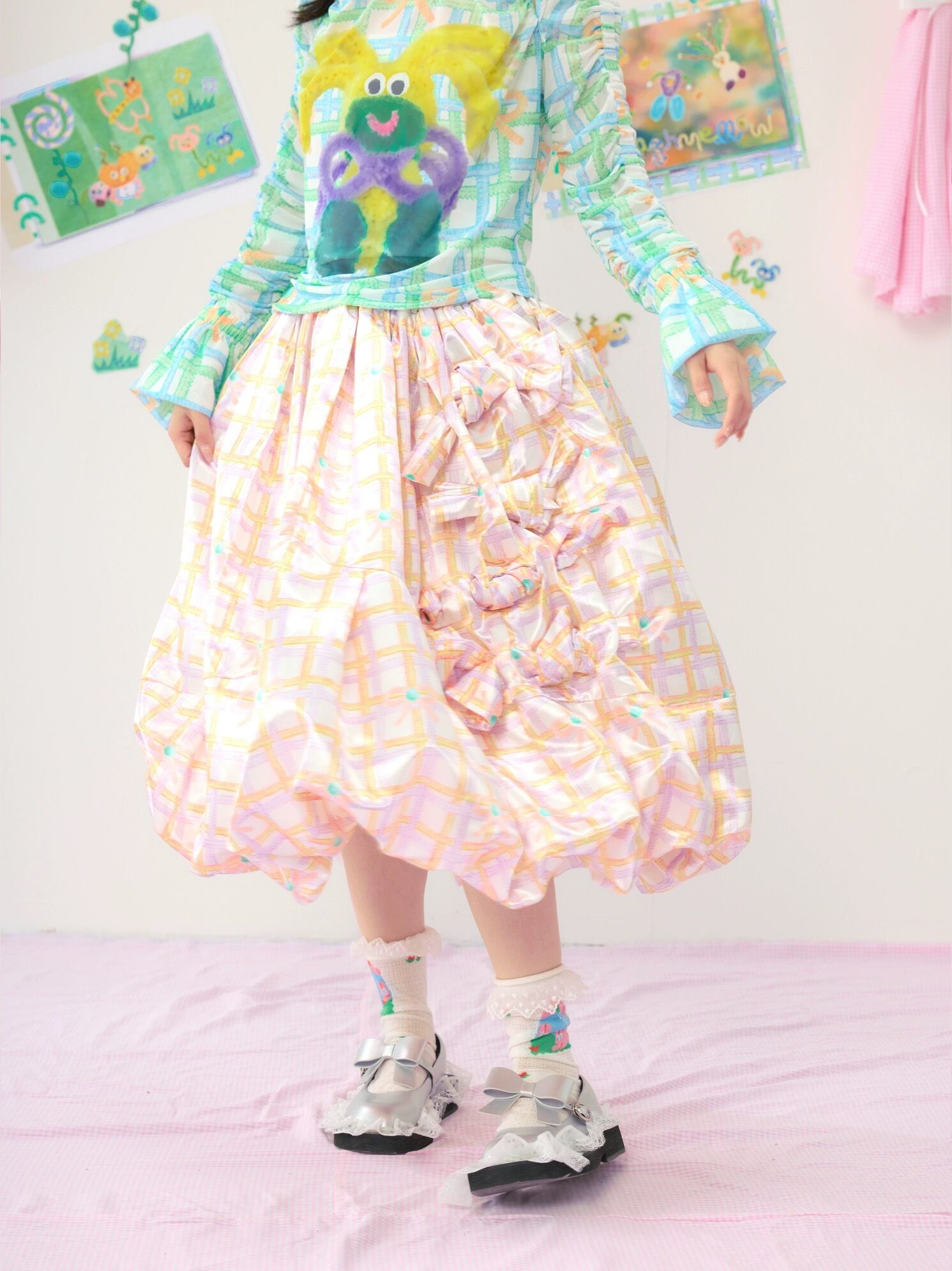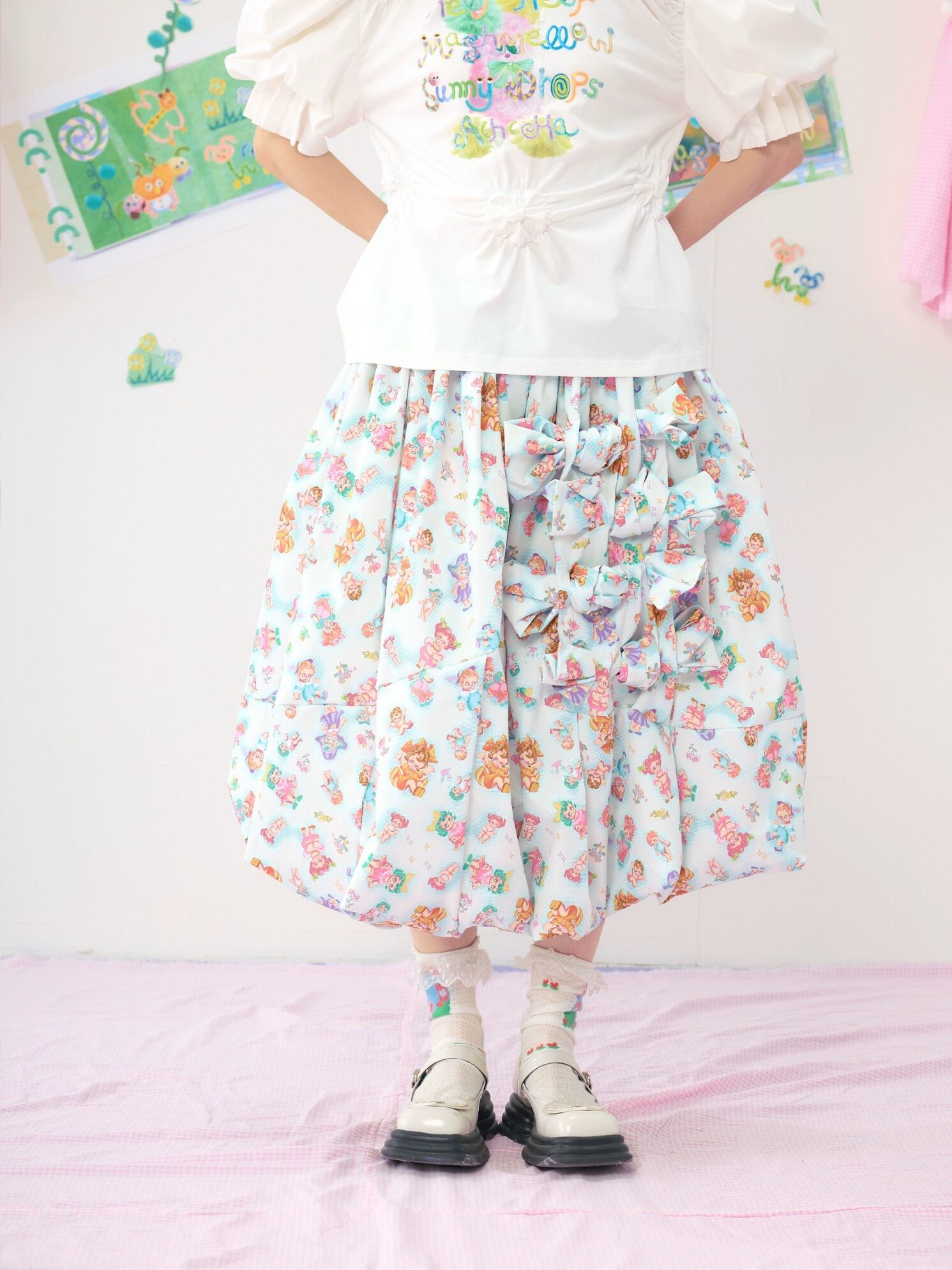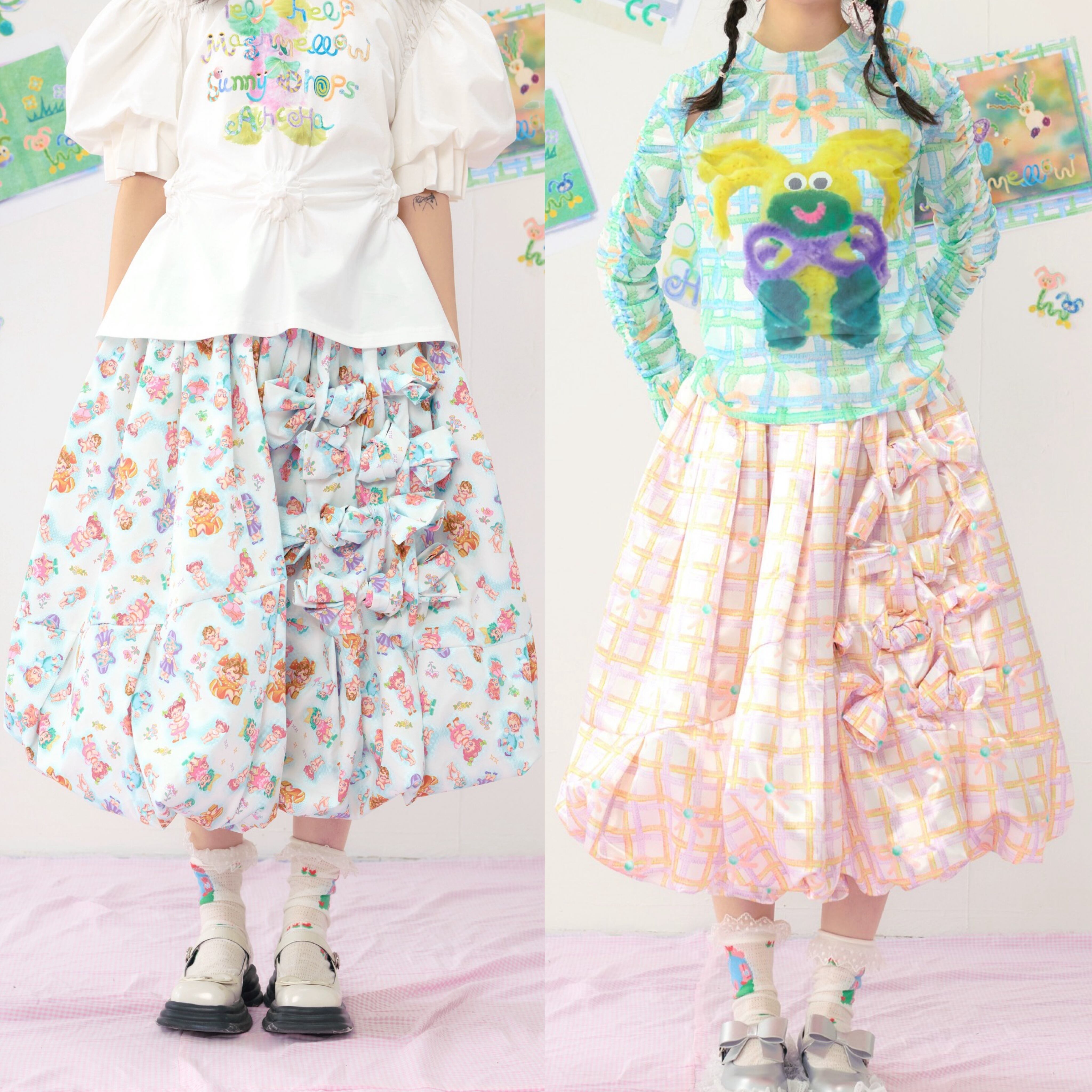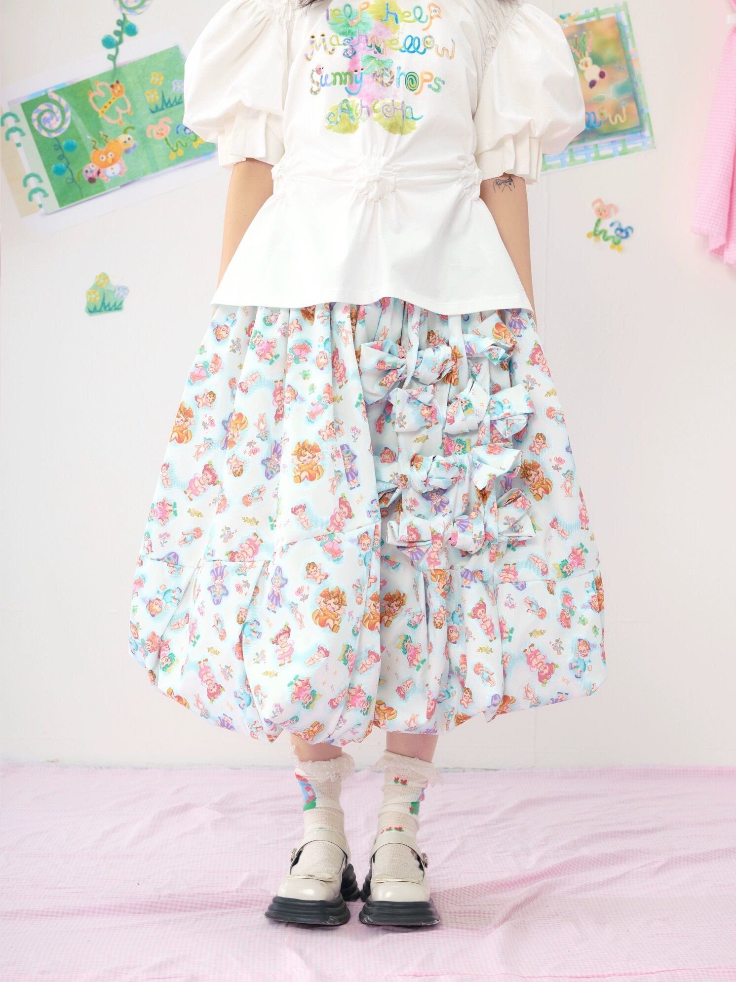 バルーン スカート オレンジ ピンク 水色 原宿 可愛い ボトムス リボン