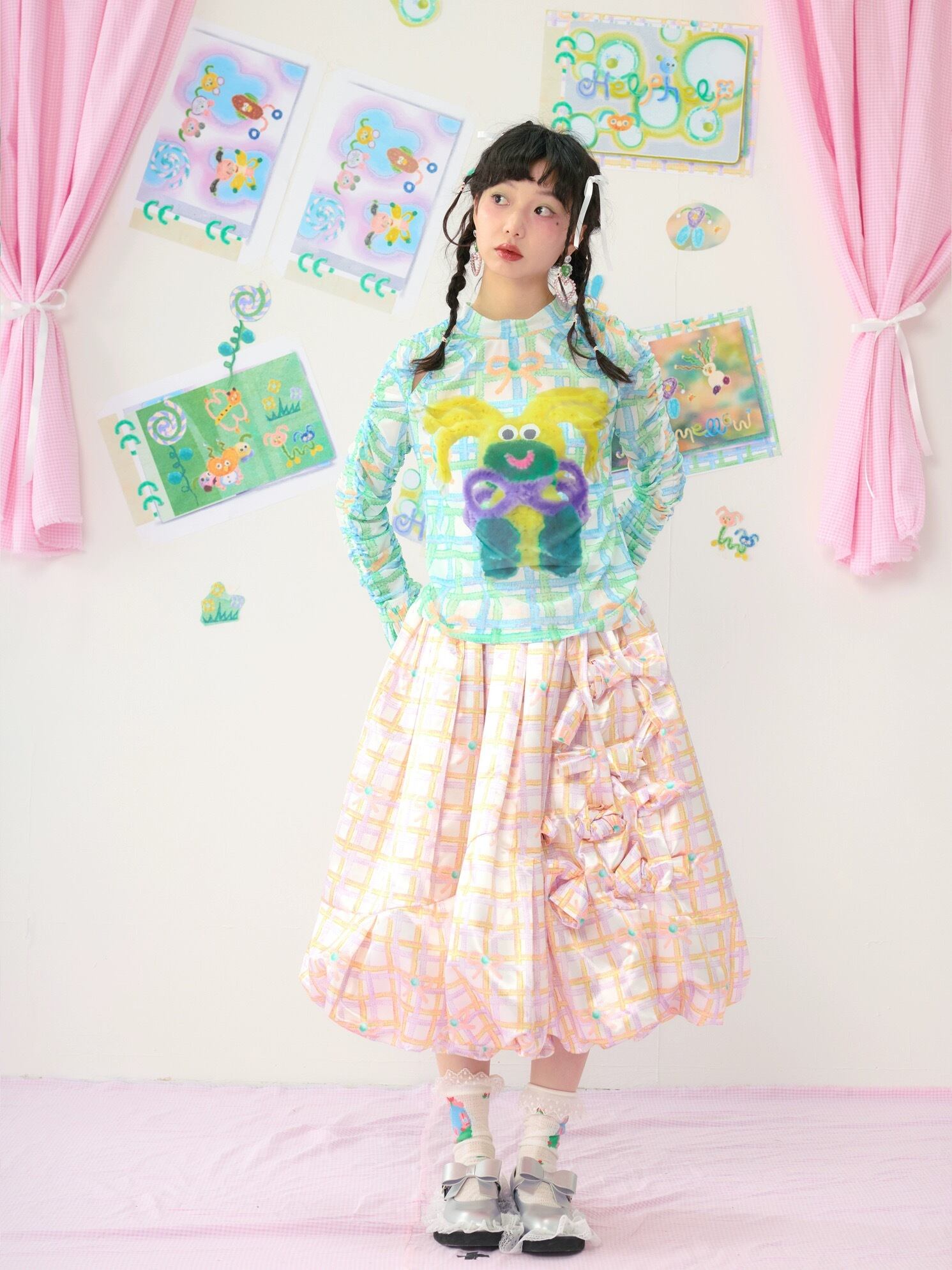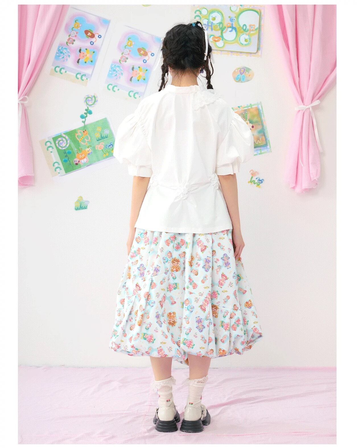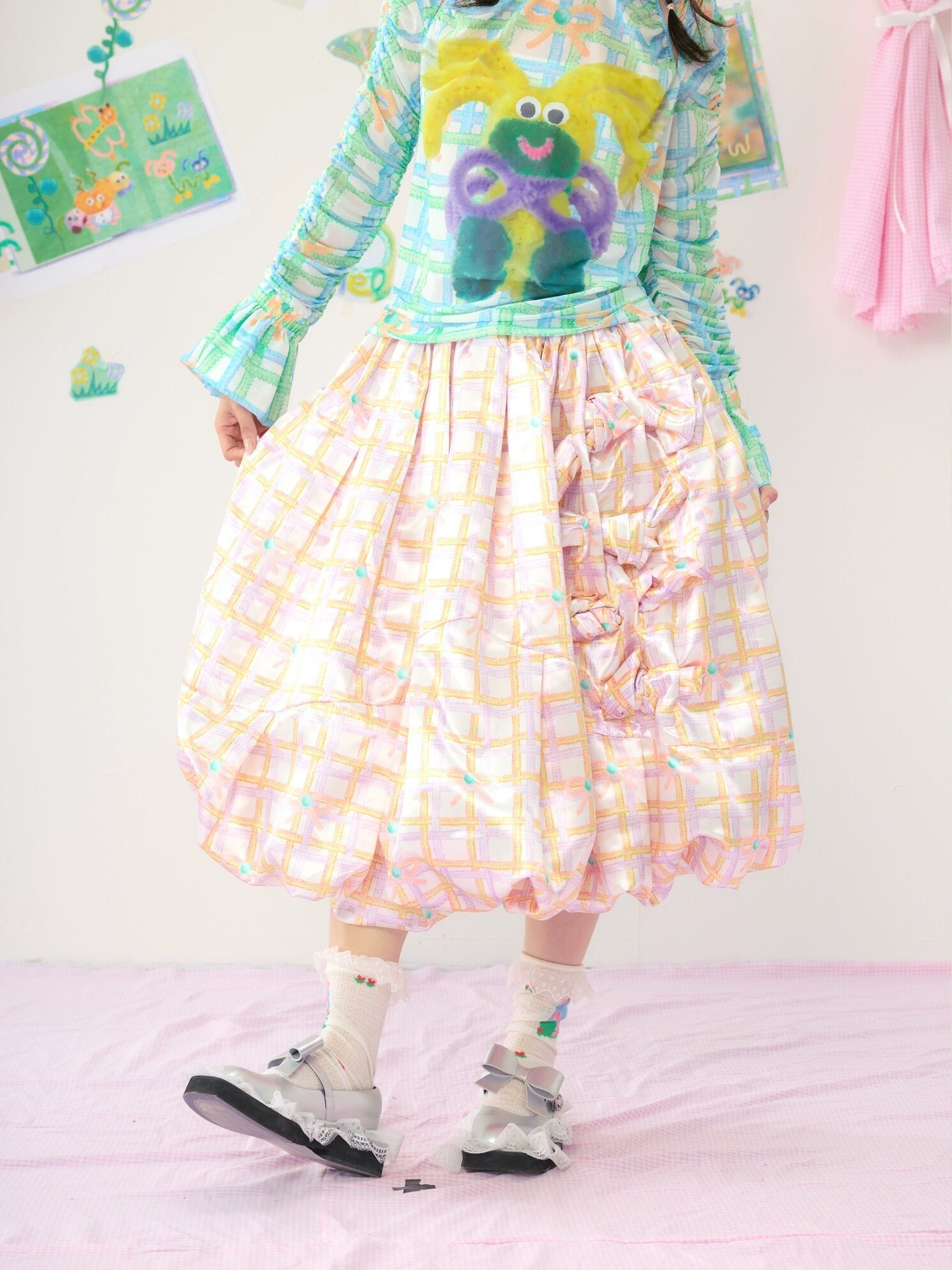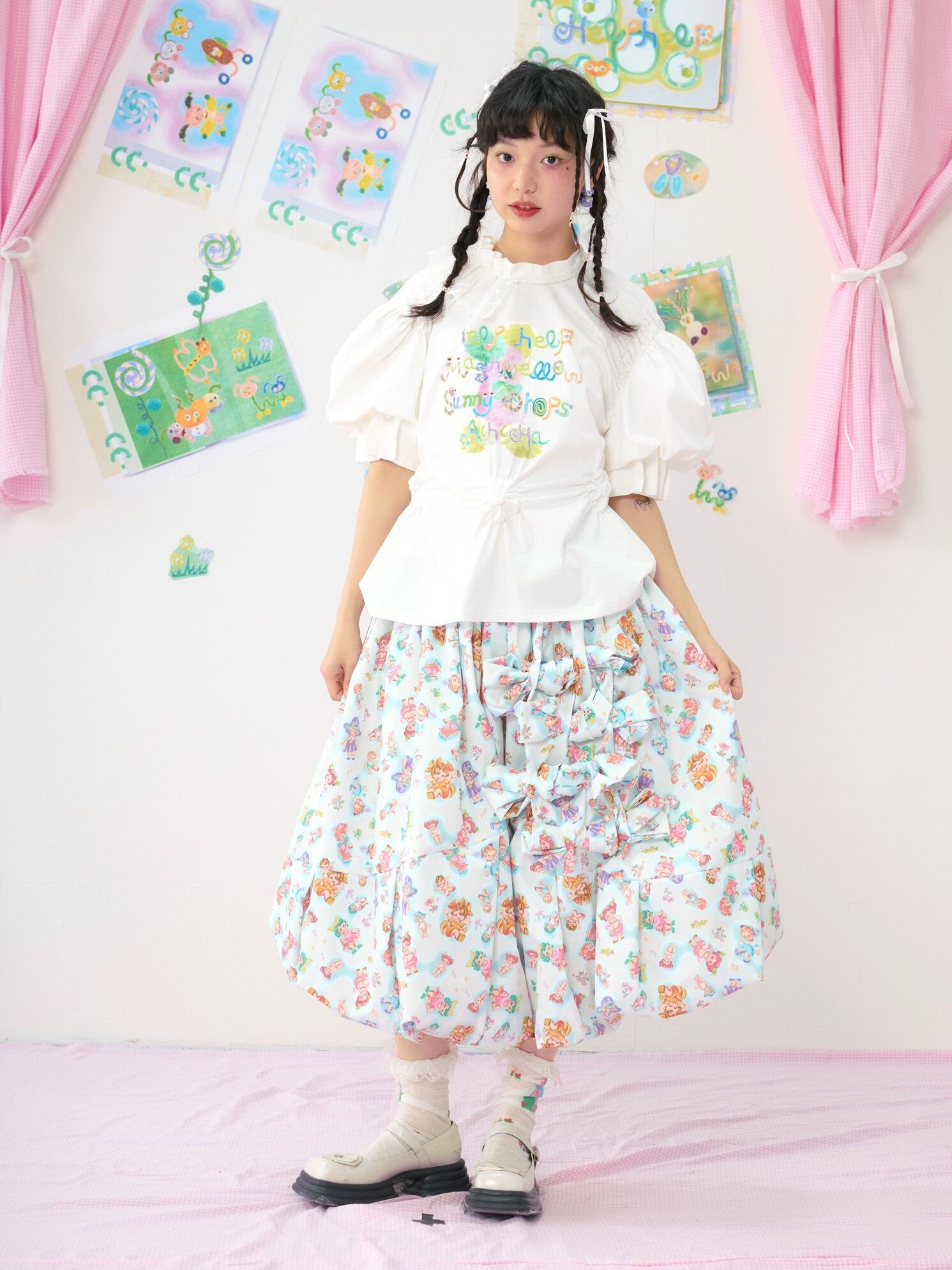 バルーン スカート オレンジ ピンク 水色 原宿 可愛い ボトムス リボン