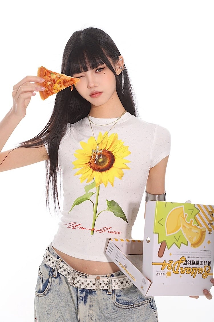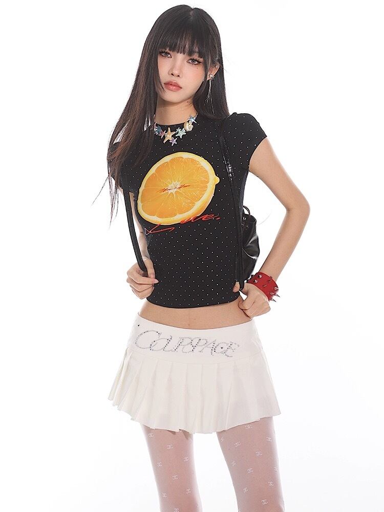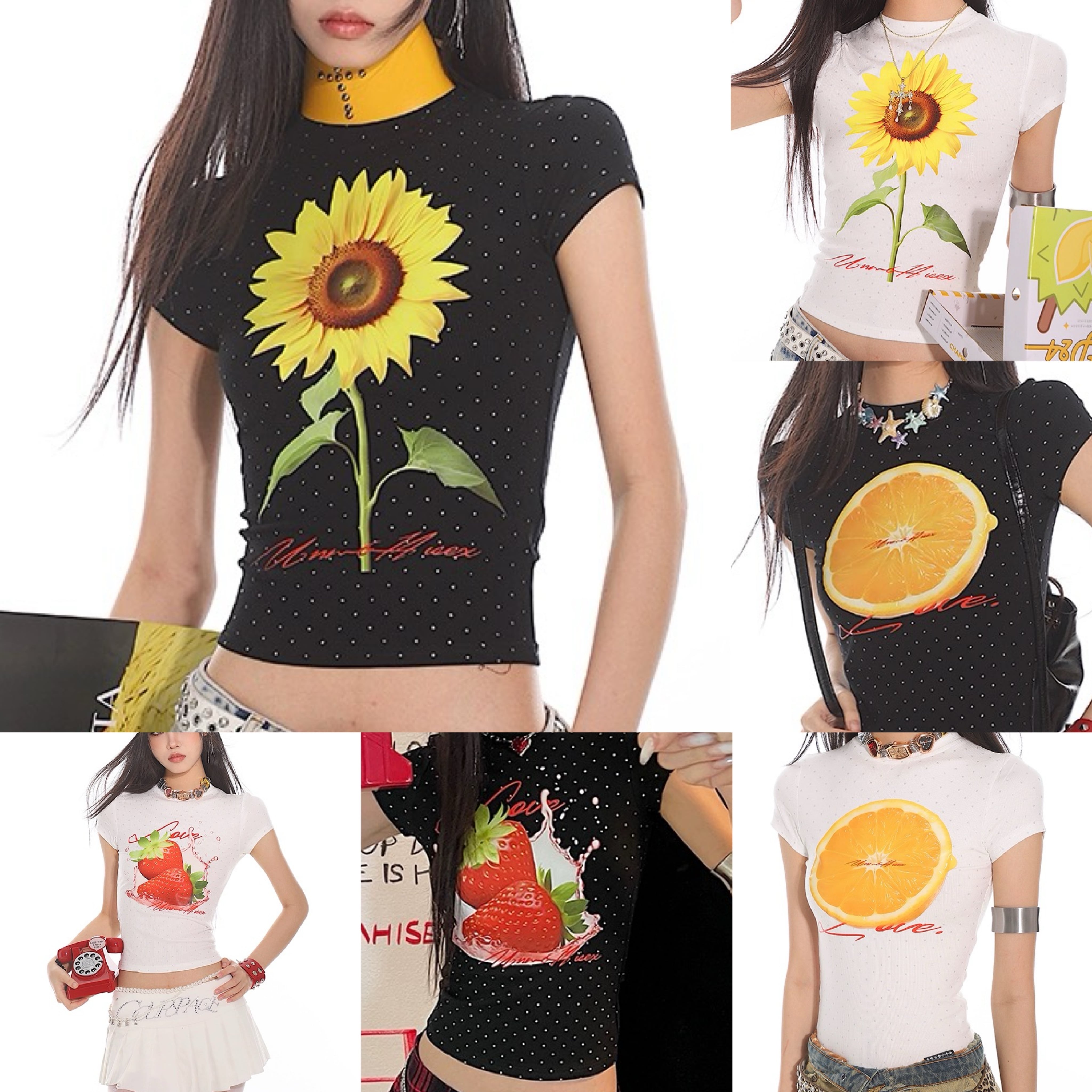 トップス 黒 白 水玉 レモン 黄色 赤 フルーツ ひまわり いちご Tシャツ タンクトップ カジュアル ブラウス