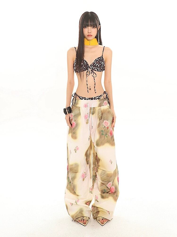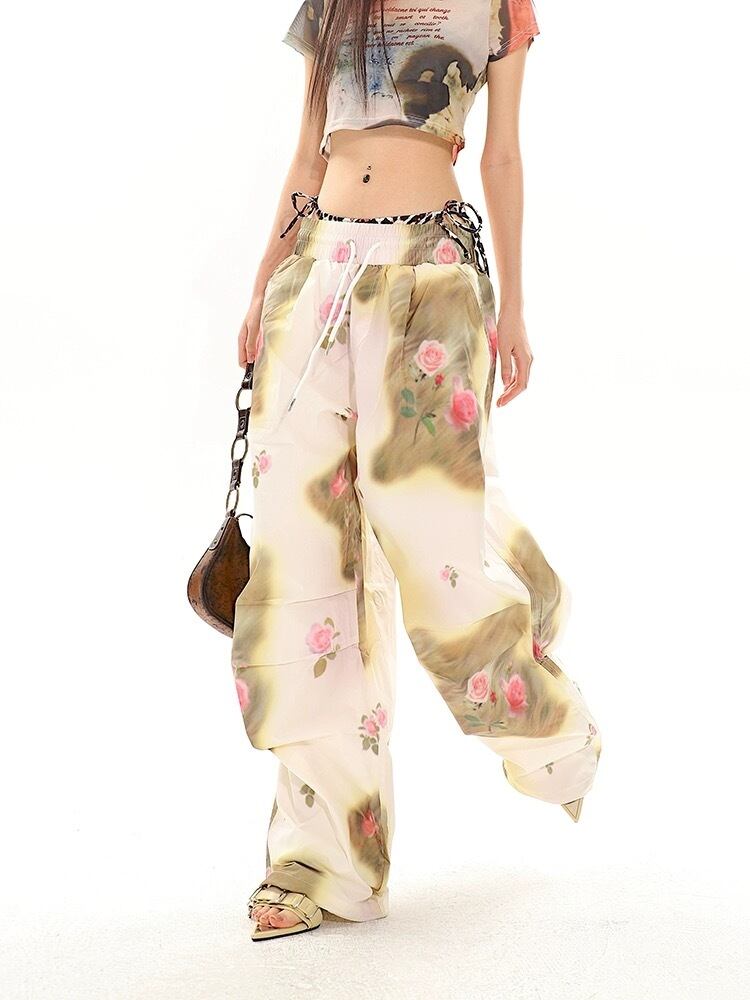 パンツ 薔薇 スウェット カジュアル ボトムス 茶色