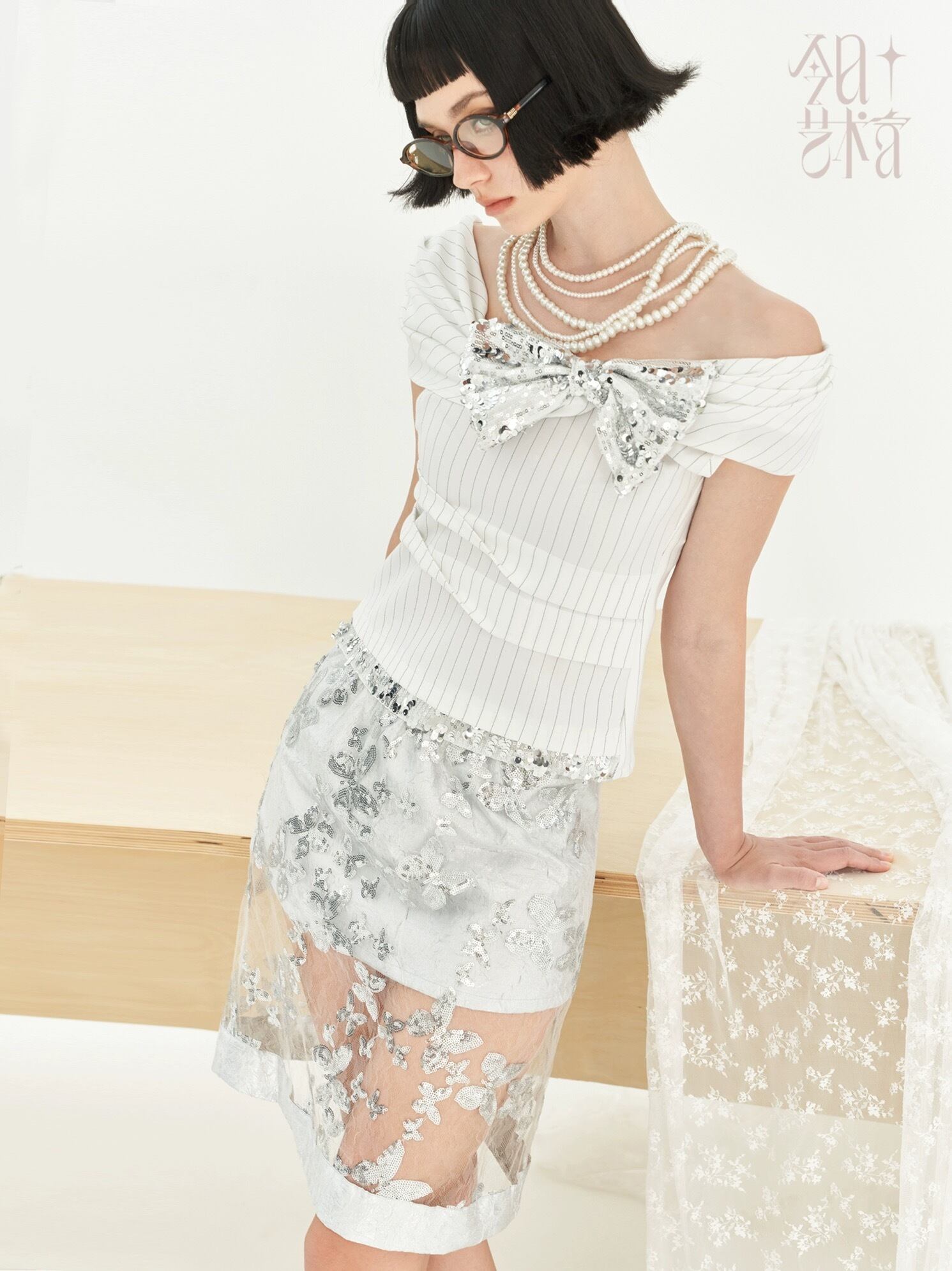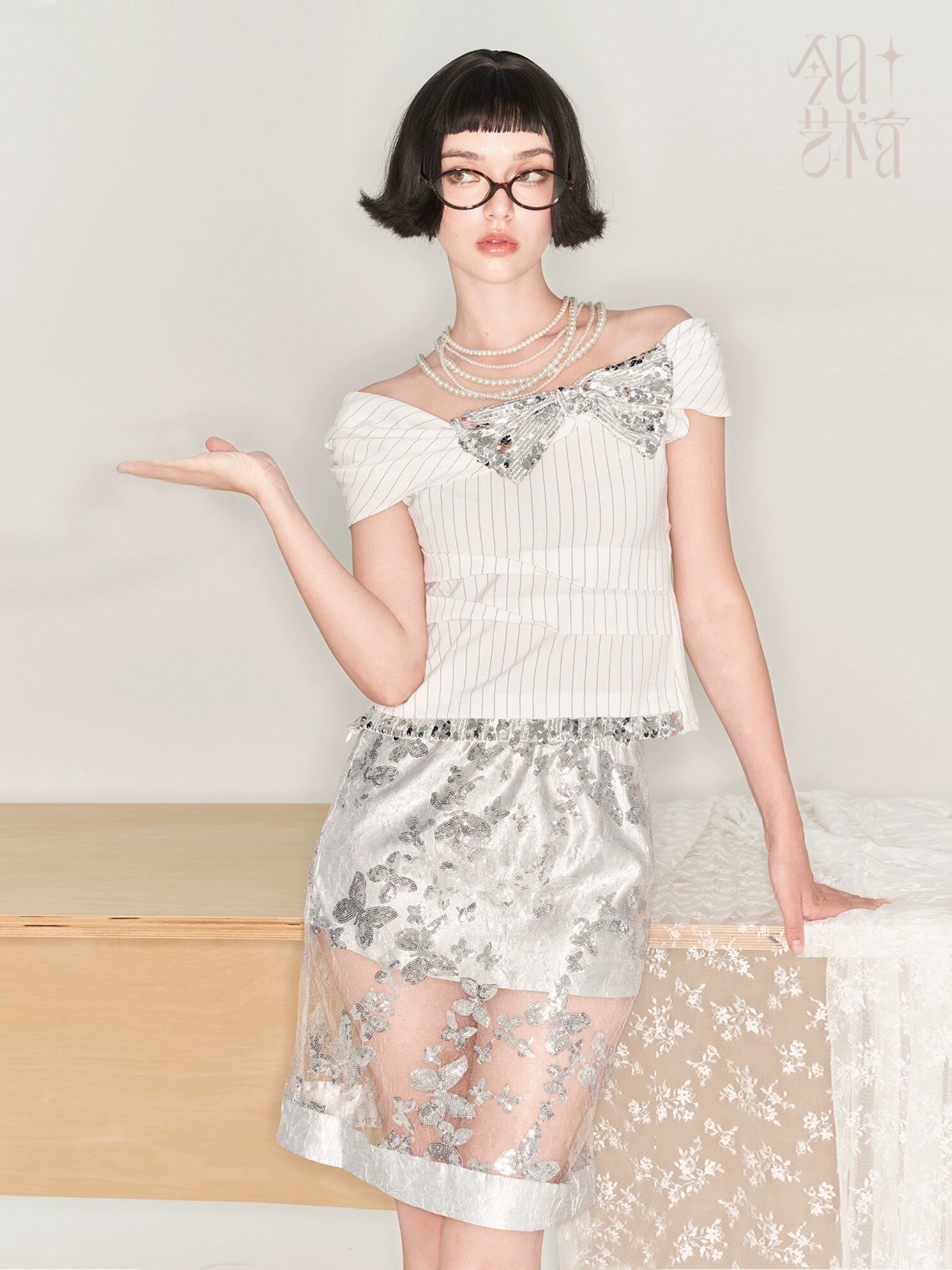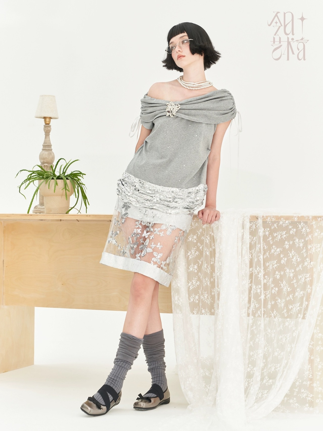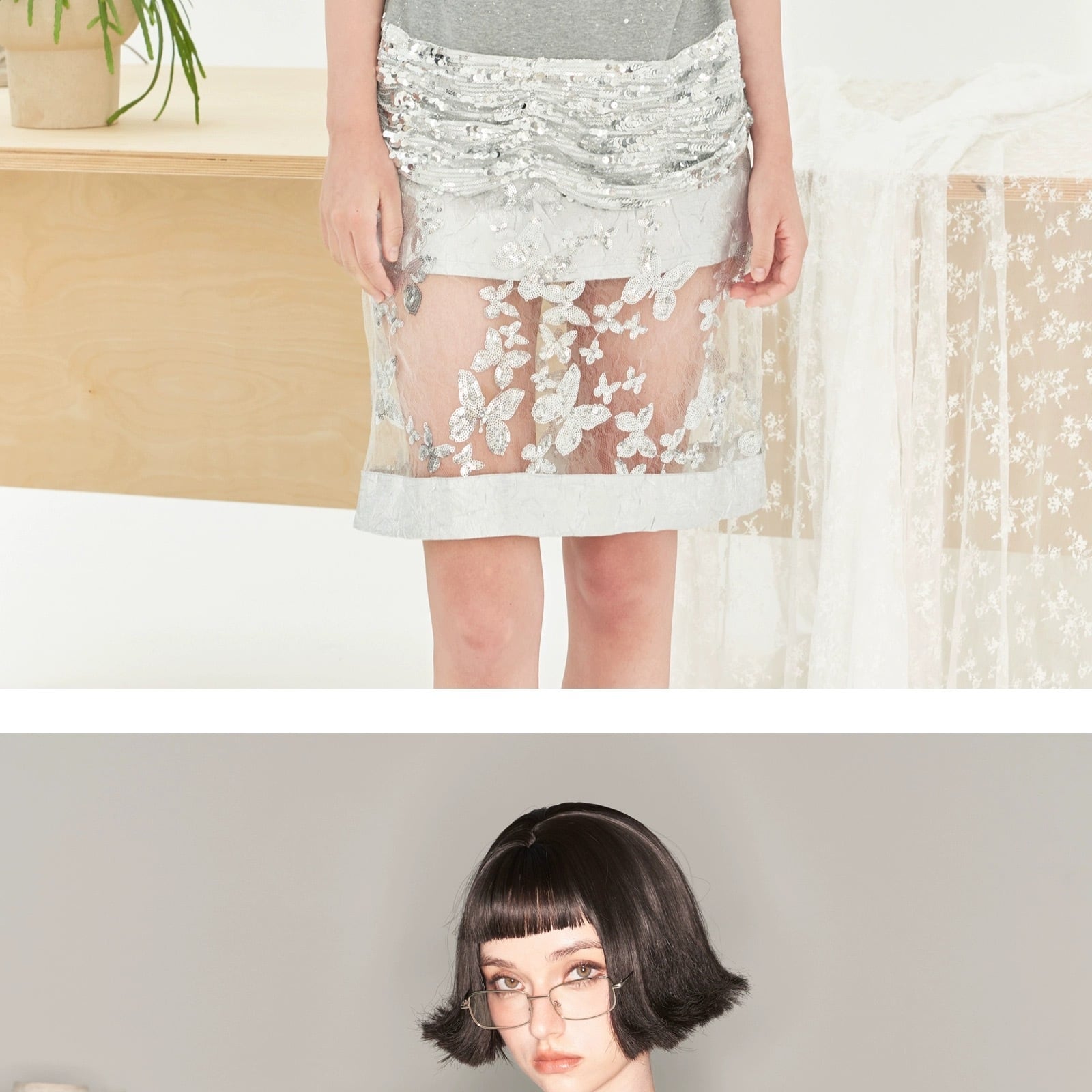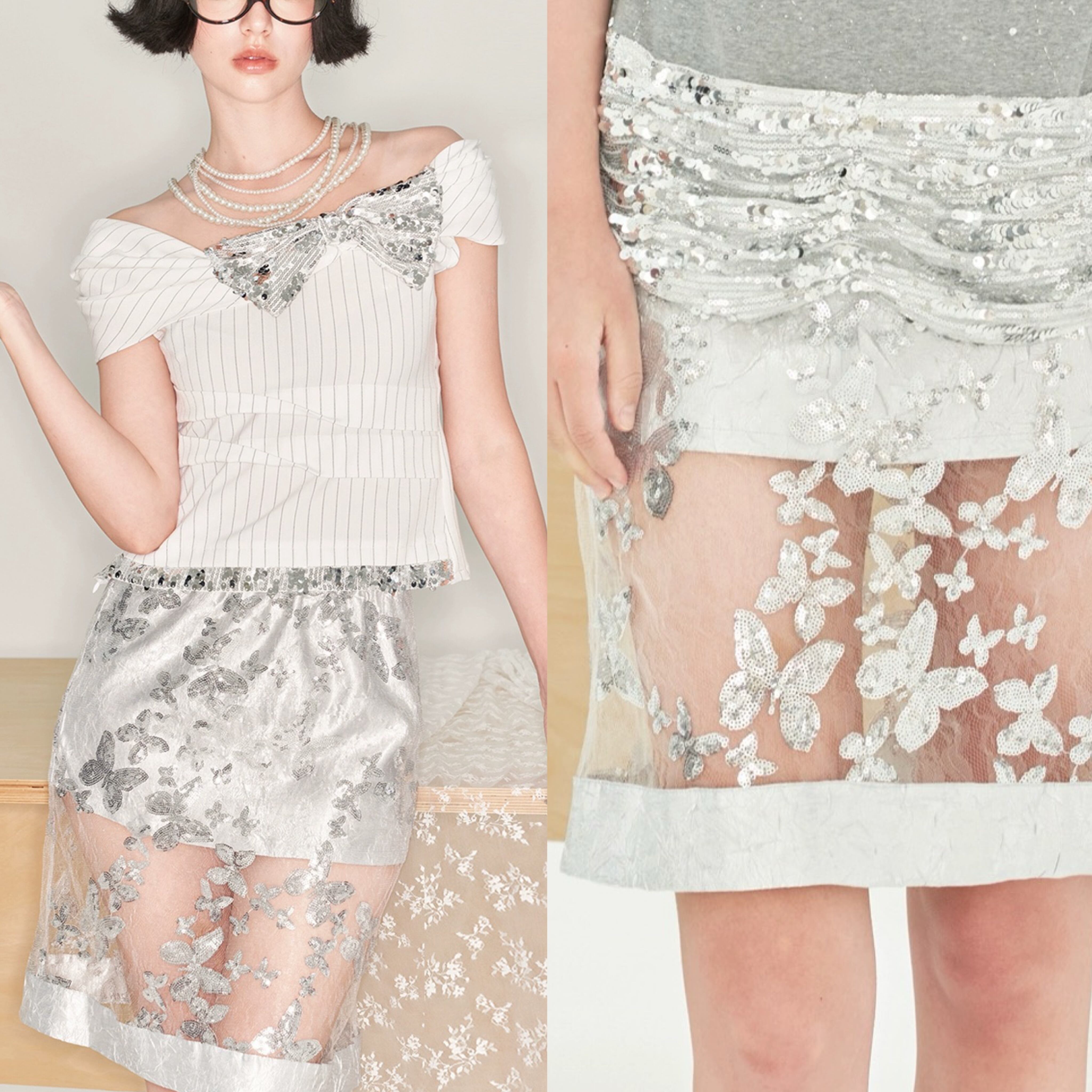 シルバー シースルー 花柄 フラワー キラキラ ボトムス スカート