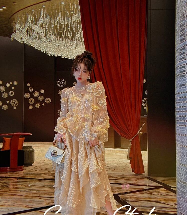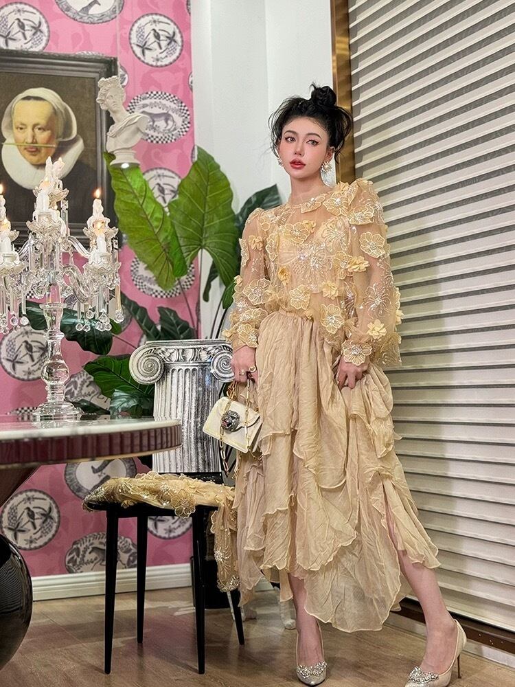 【スカート】ベージュ 黄色 白 ボトムス 金色 フレアスカート