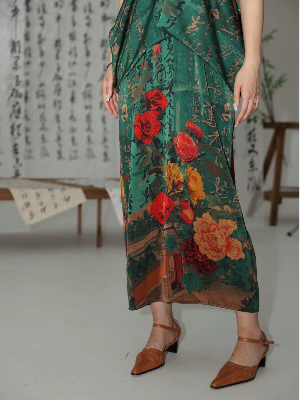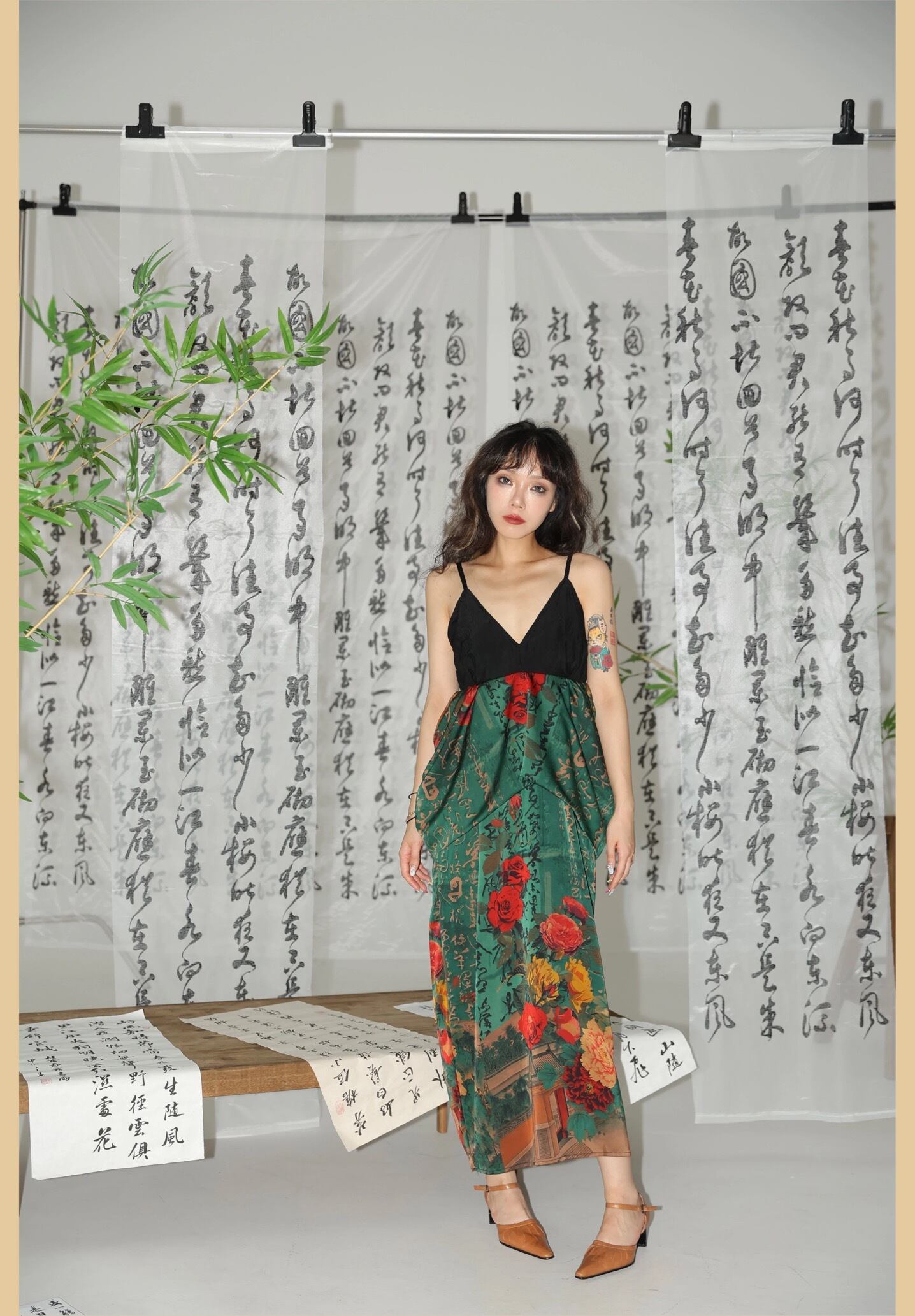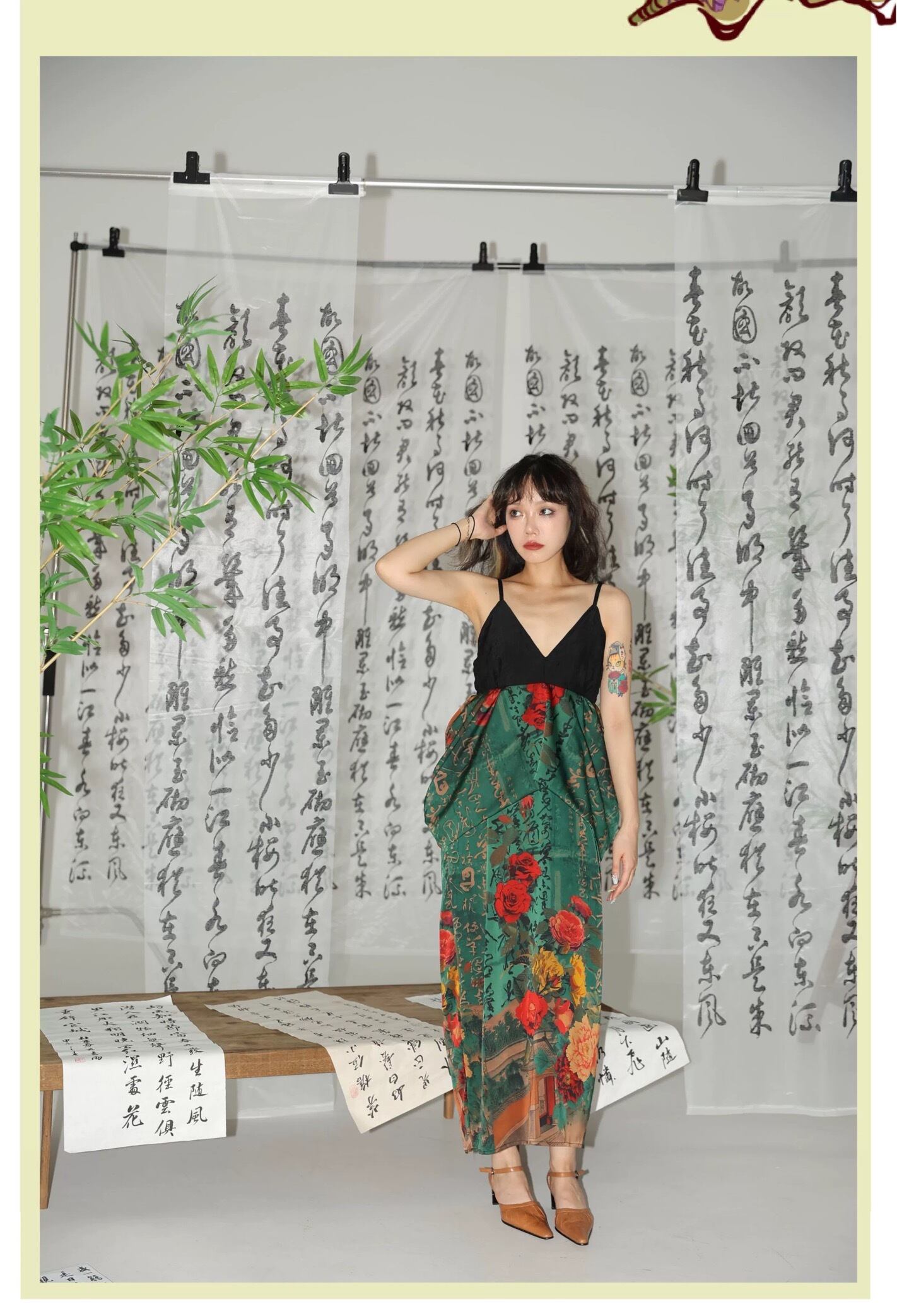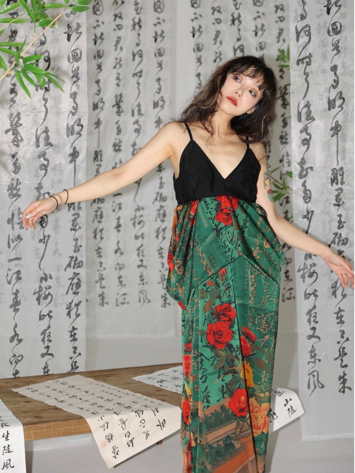 緑 フラワー 花柄 赤 チャイナ ワンピース キャミソール エスニック