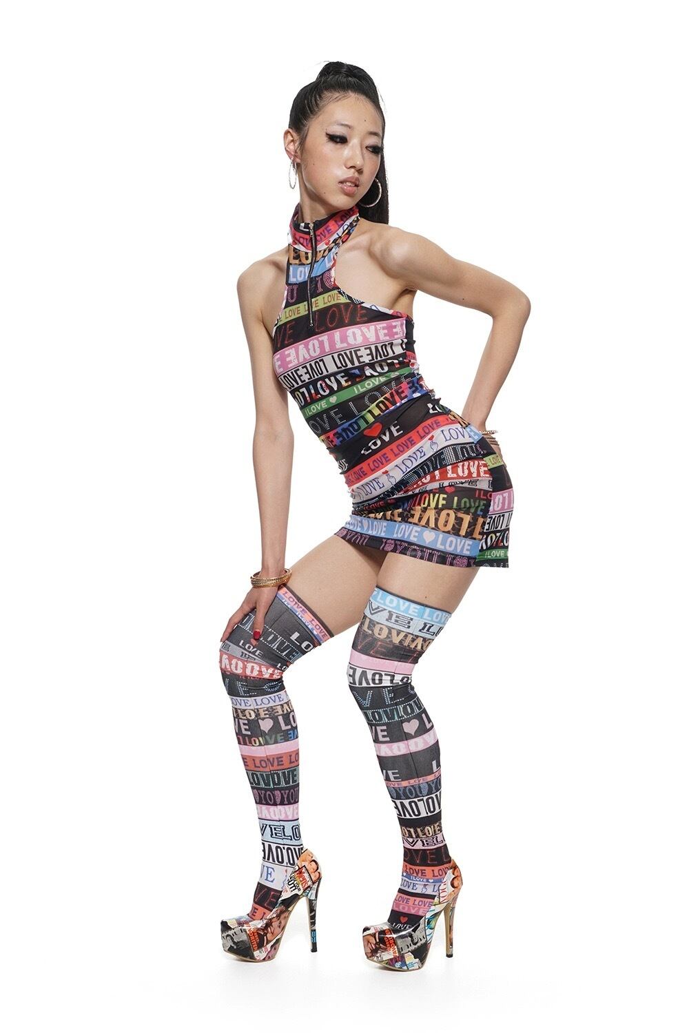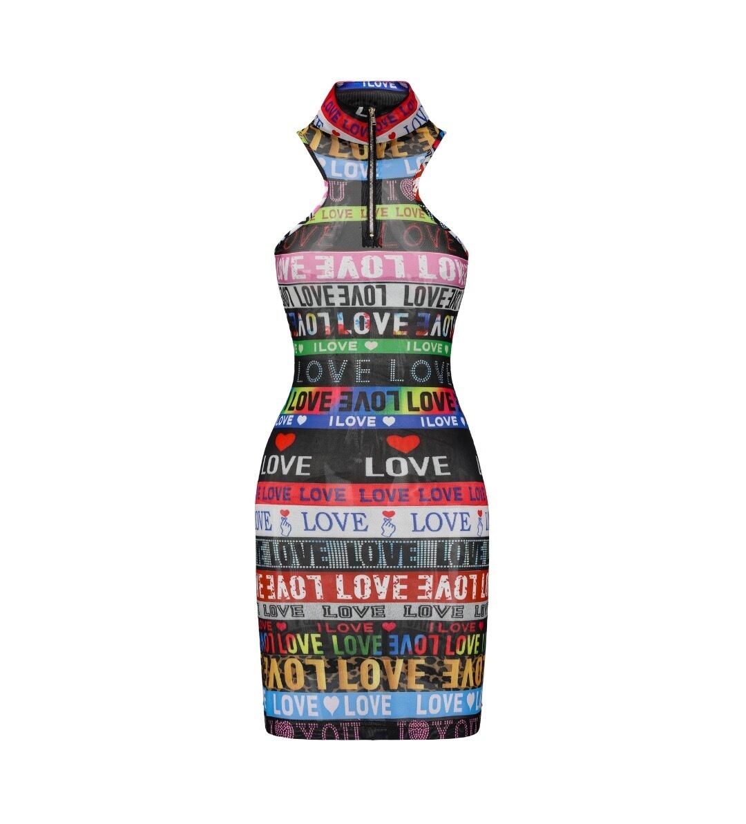 ホルダーネック カラフル LOVE ワンピース ダンス クラブ ボーダー チェック 黒