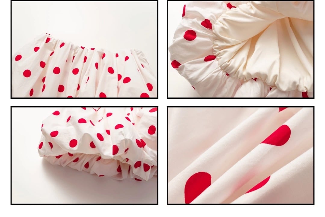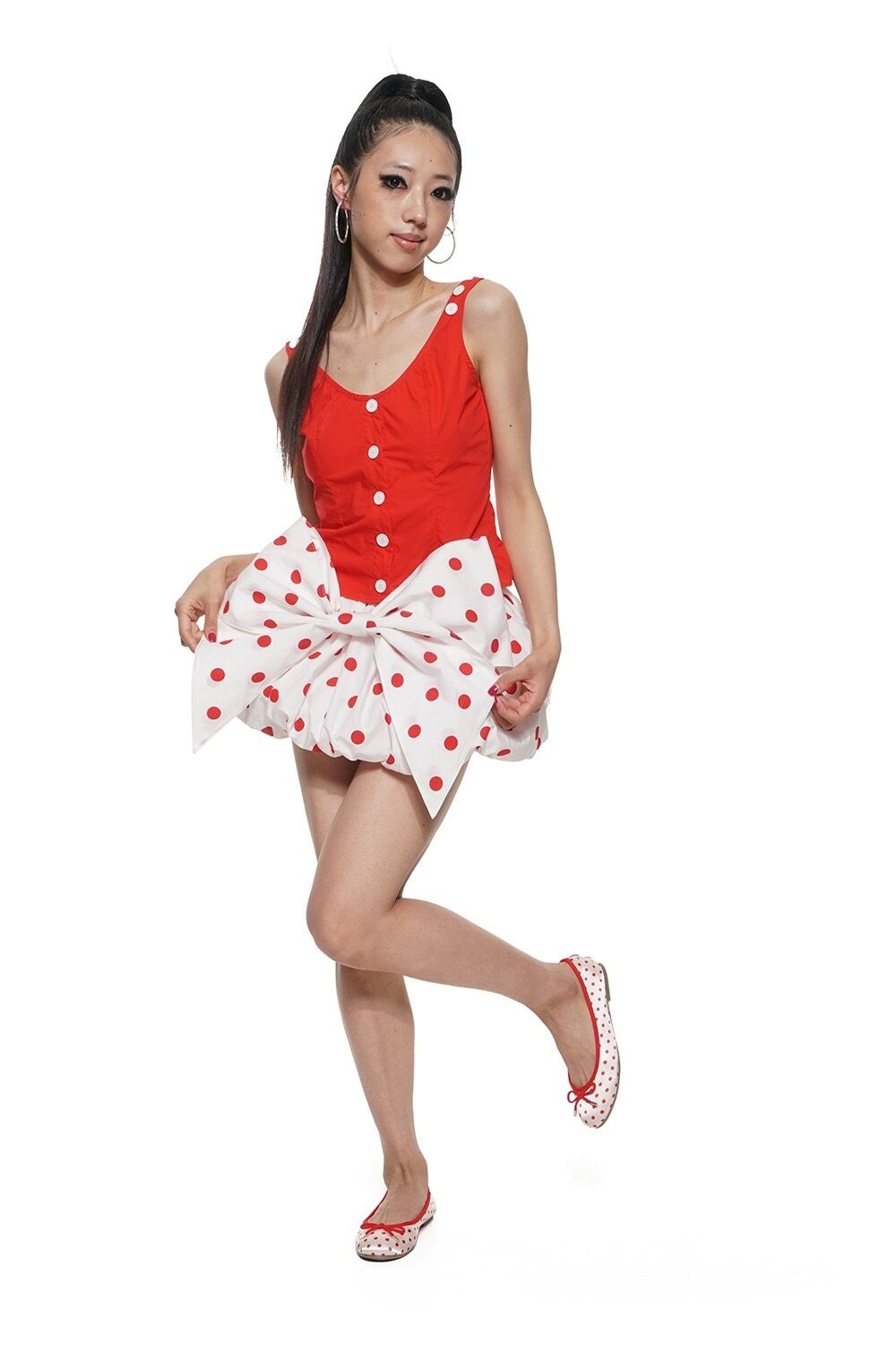 【スカート】バルーン 赤 白 水玉 ドット ミニスカート ボトムス ガーリー