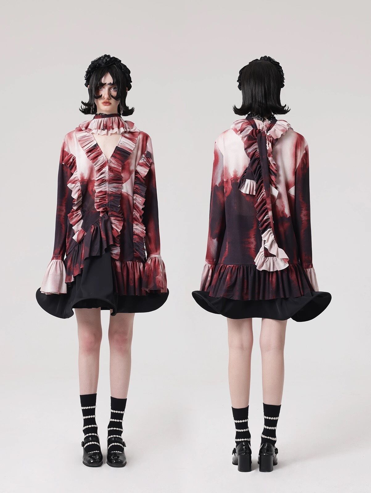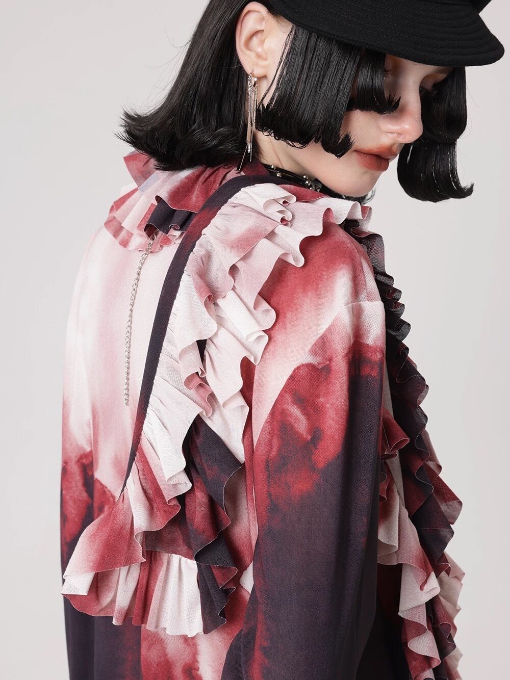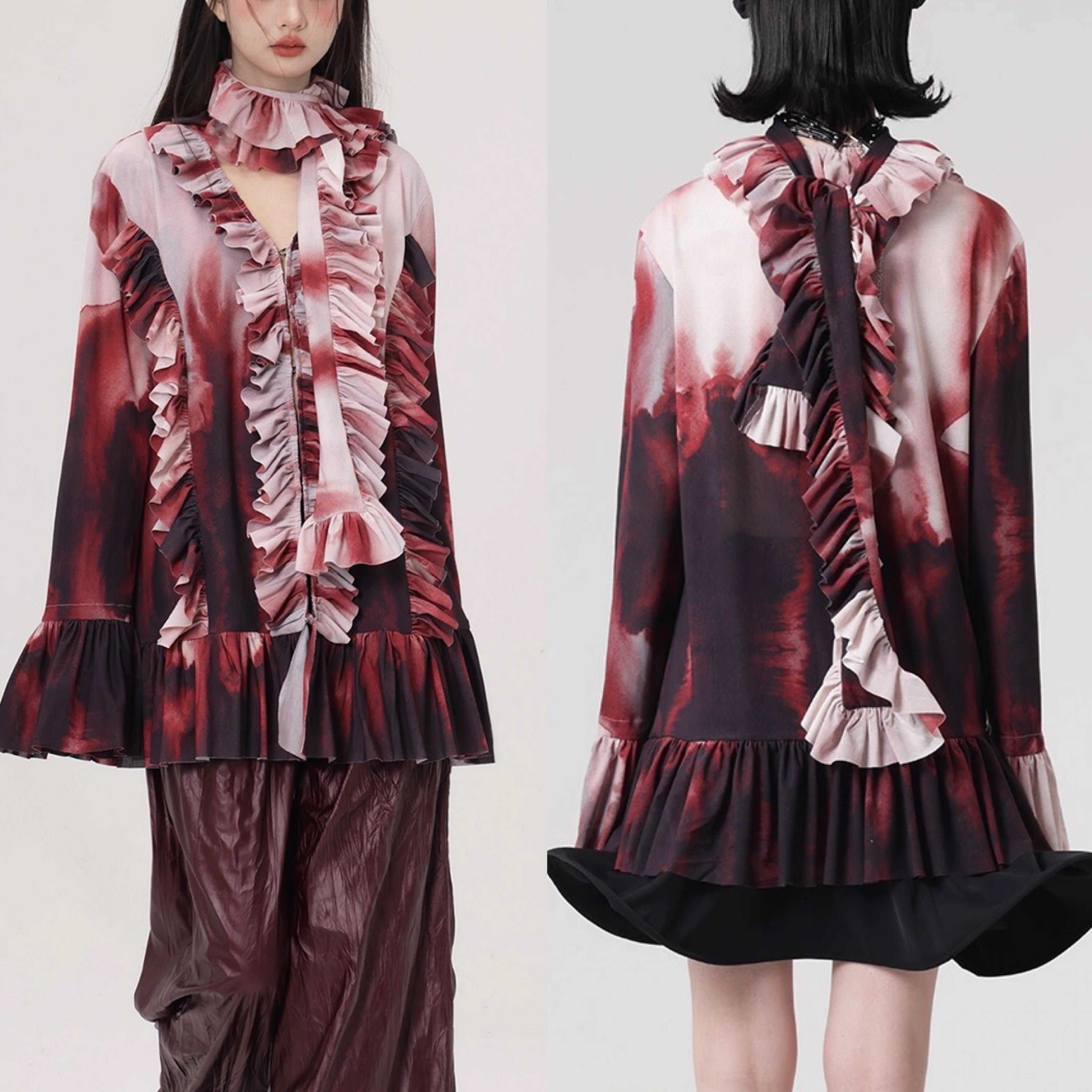 赤 グラデーション ピンク 茶色 ブラウス トップス