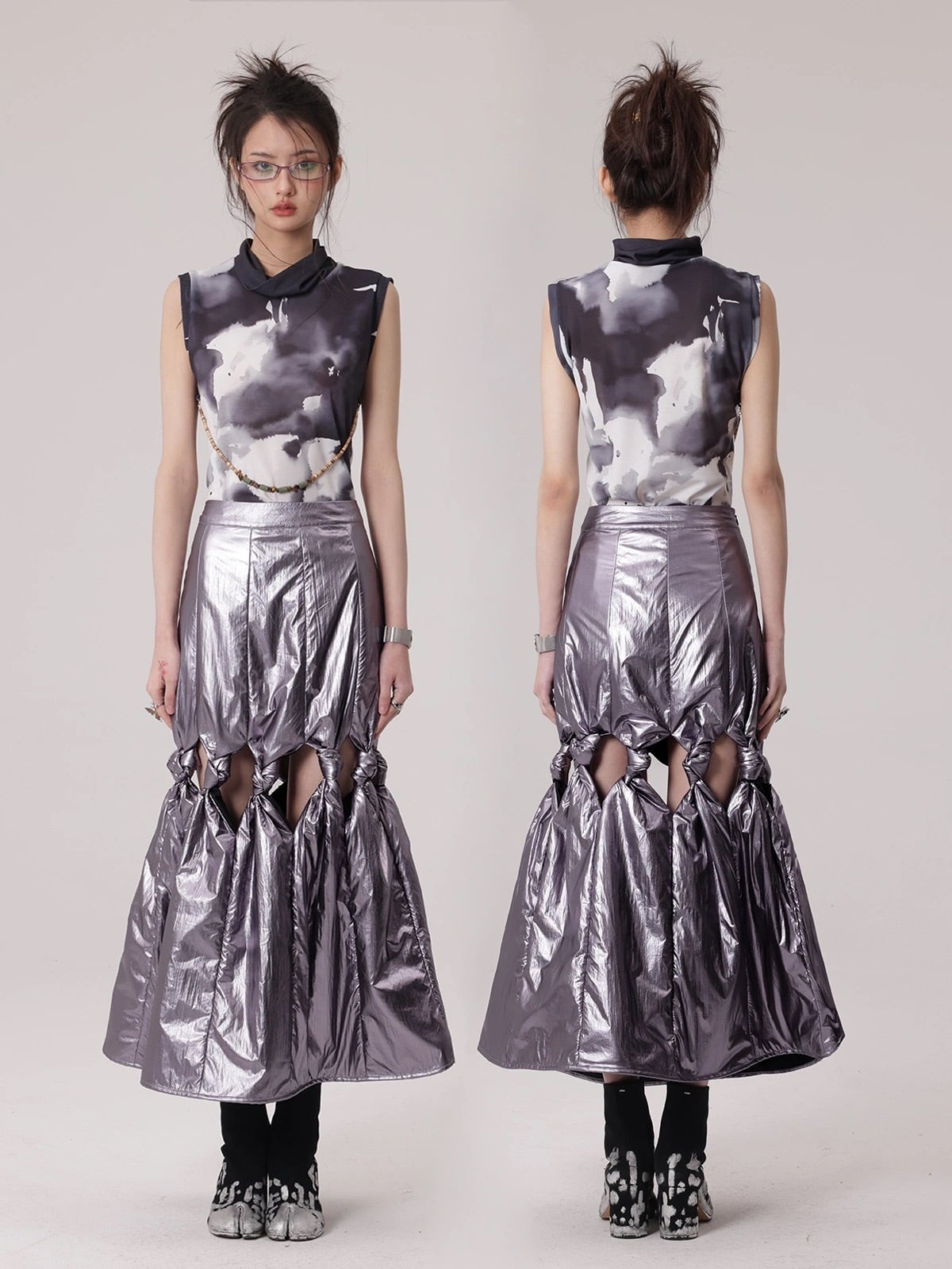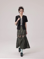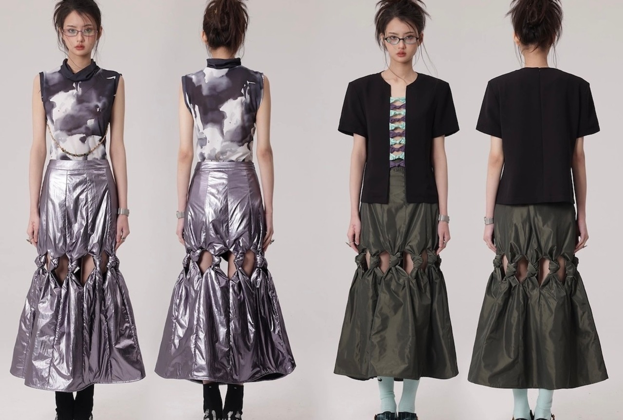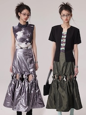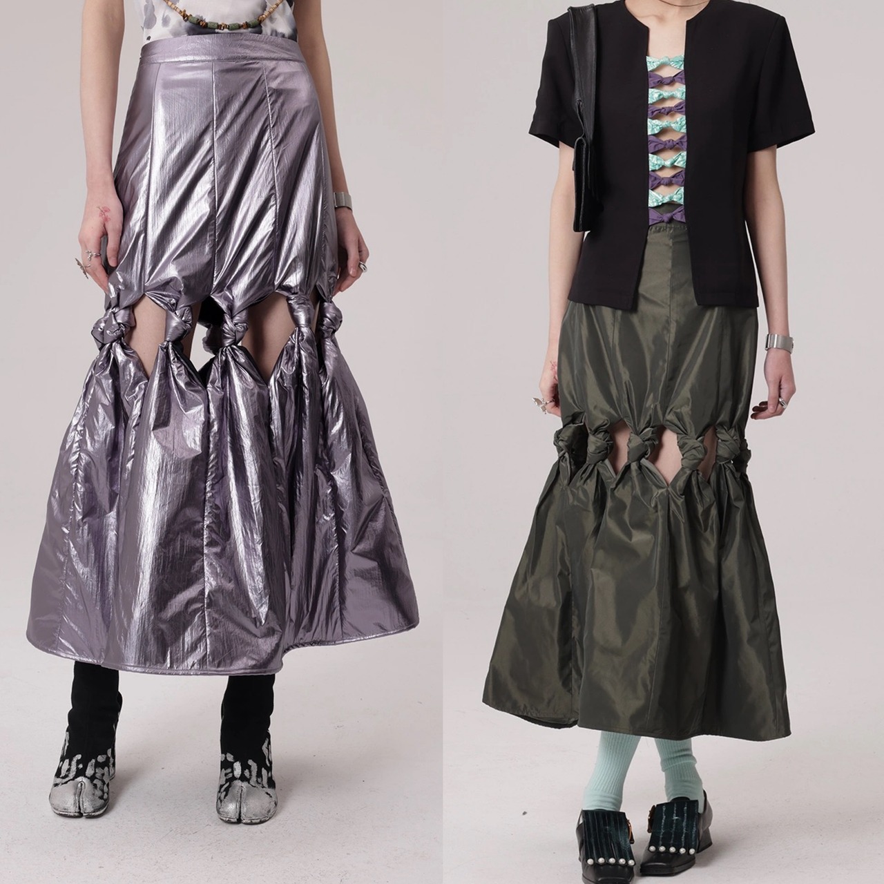 リボン あみあみ スカート ボトムス グリーン 緑 シルバー サイバー