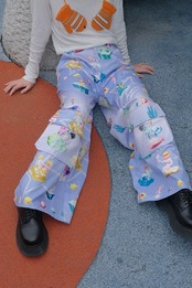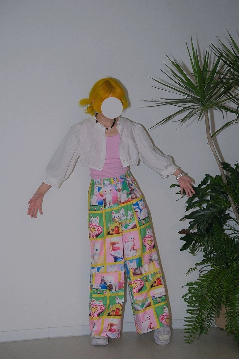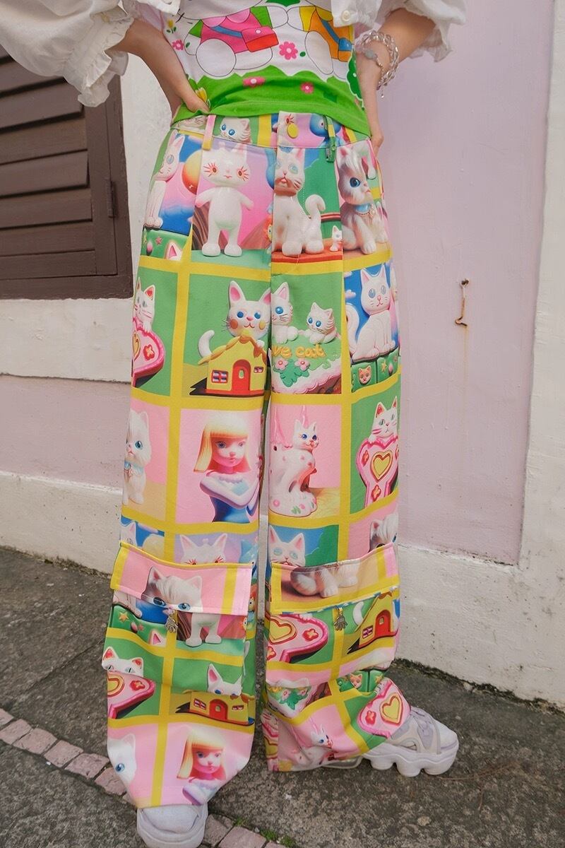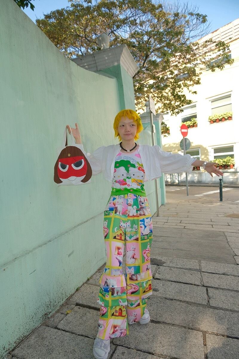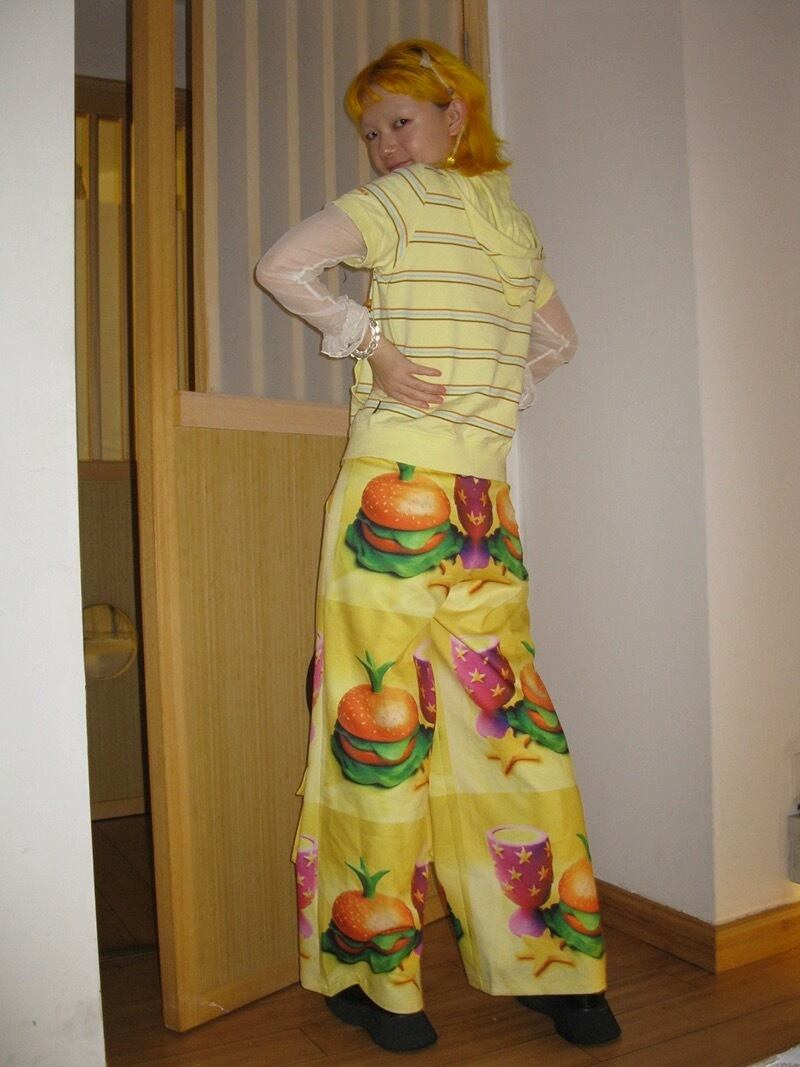 黄色 緑 チェック ハンバーガー 水色 ぬいぐるみ 原宿 可愛い ボトムス ズボン スウェット レトロ
