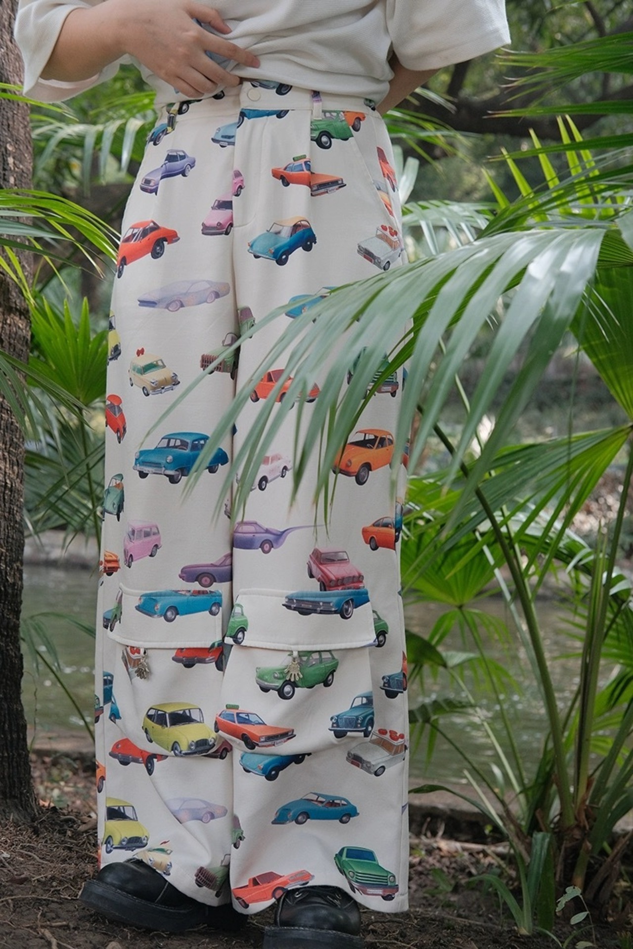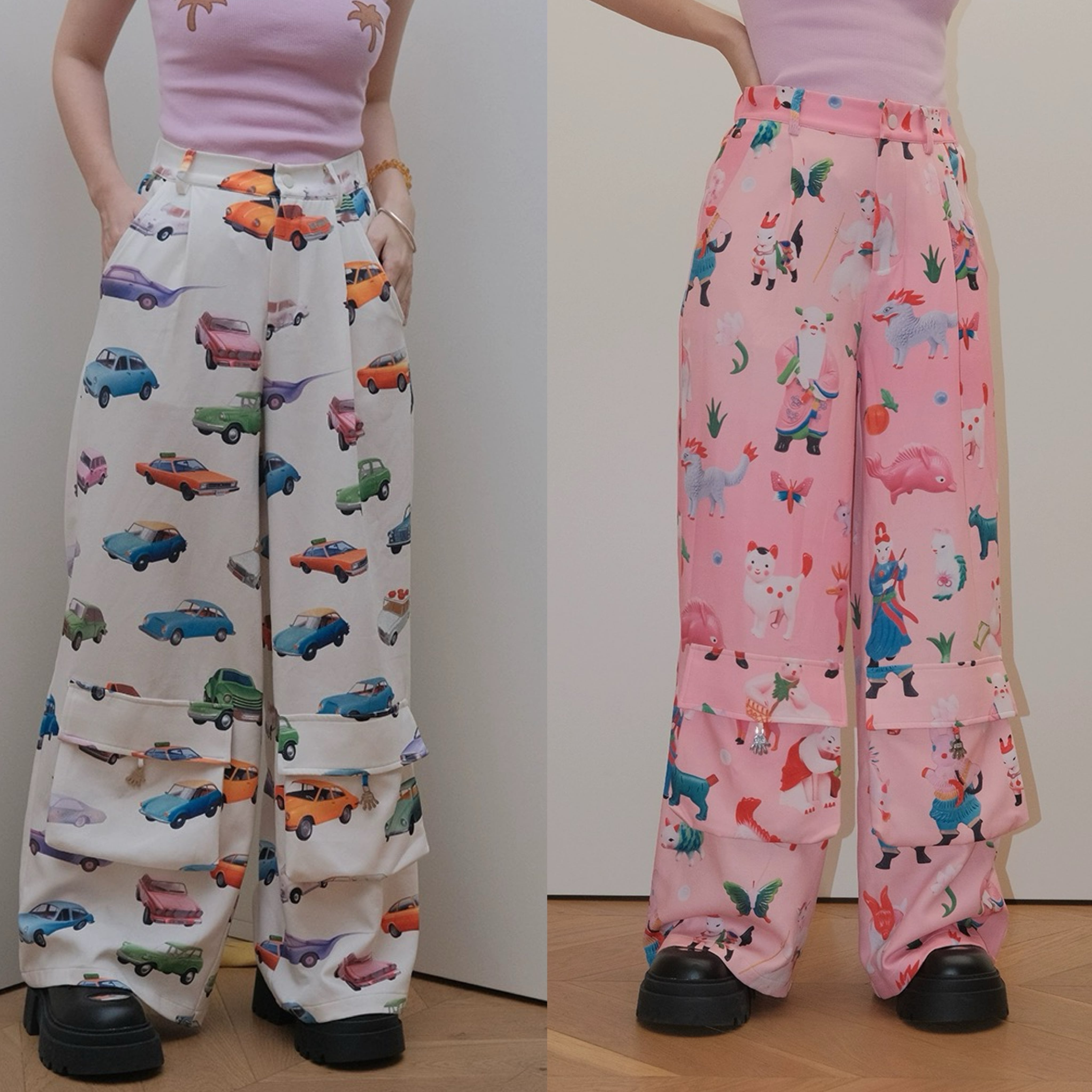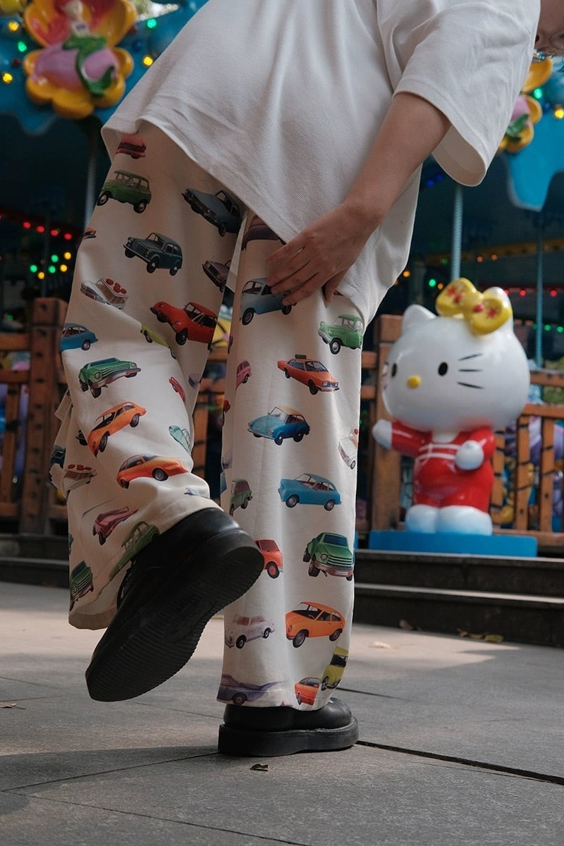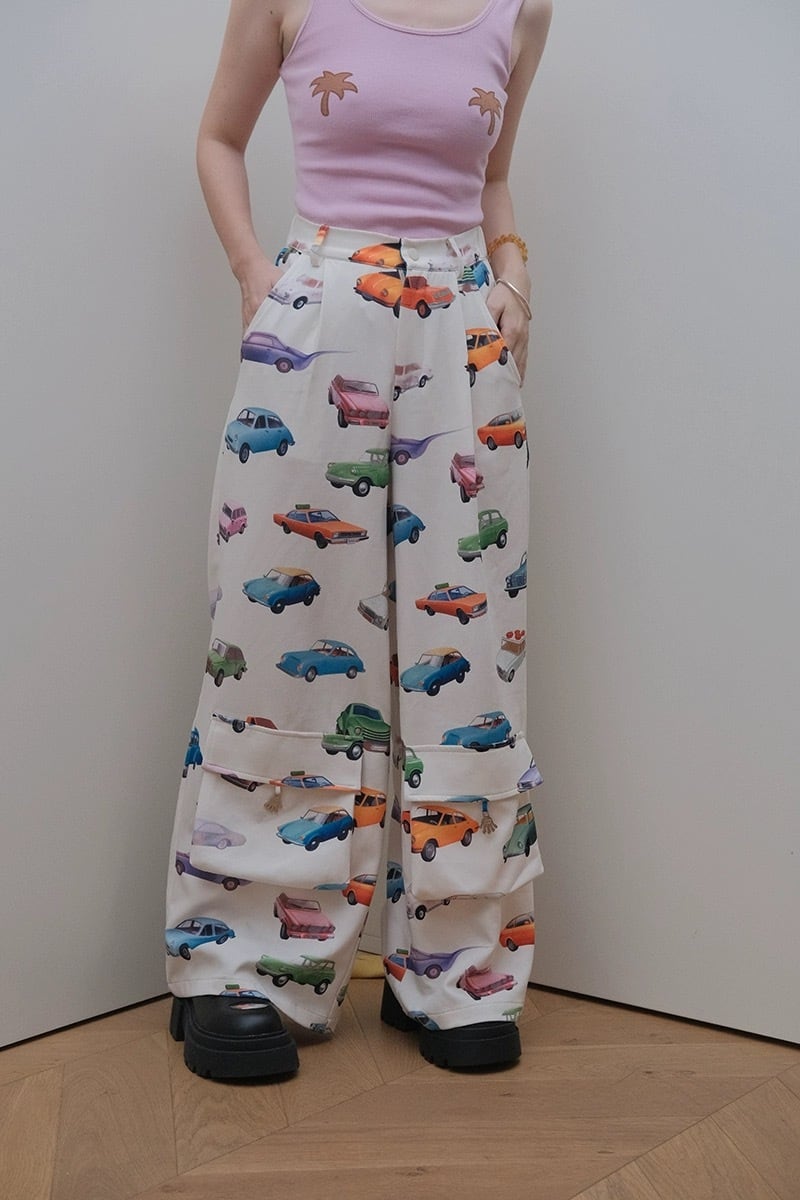 ピンク 白 ボトムス パンツ スウェット XL 原宿 可愛い カジュアル カラフル 可愛い レトロ 車 オレンジ 白 ジャージ