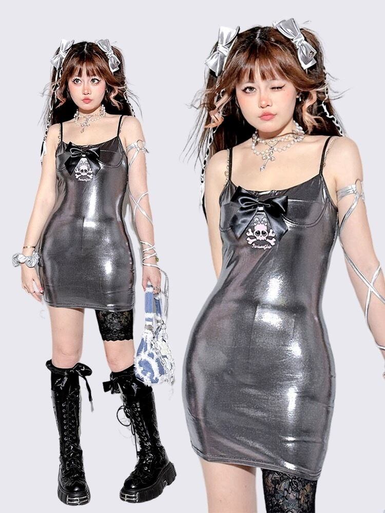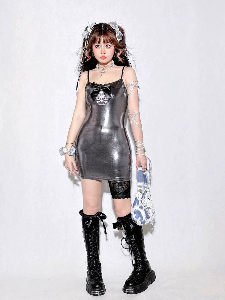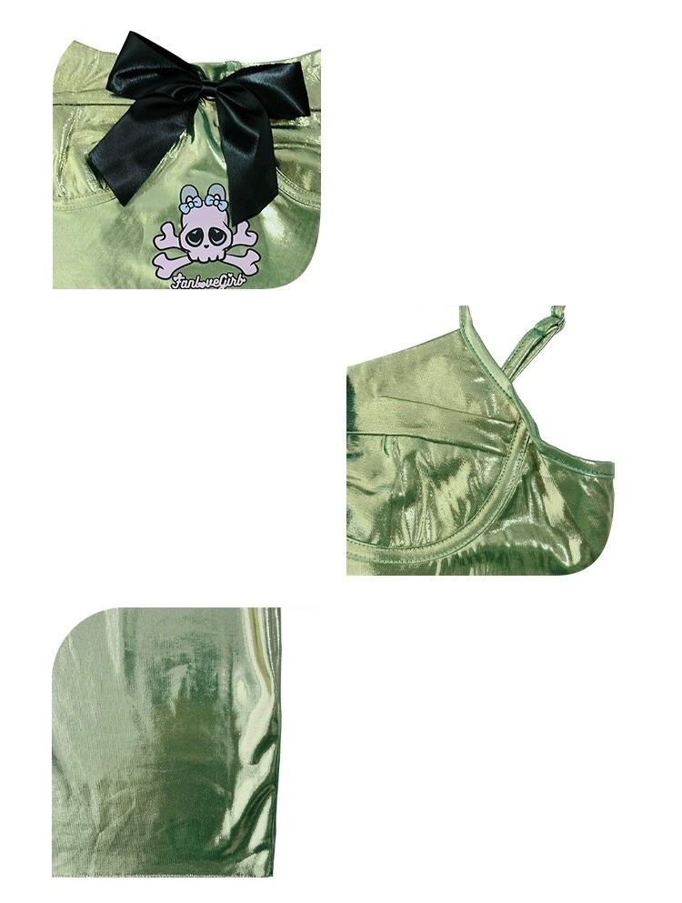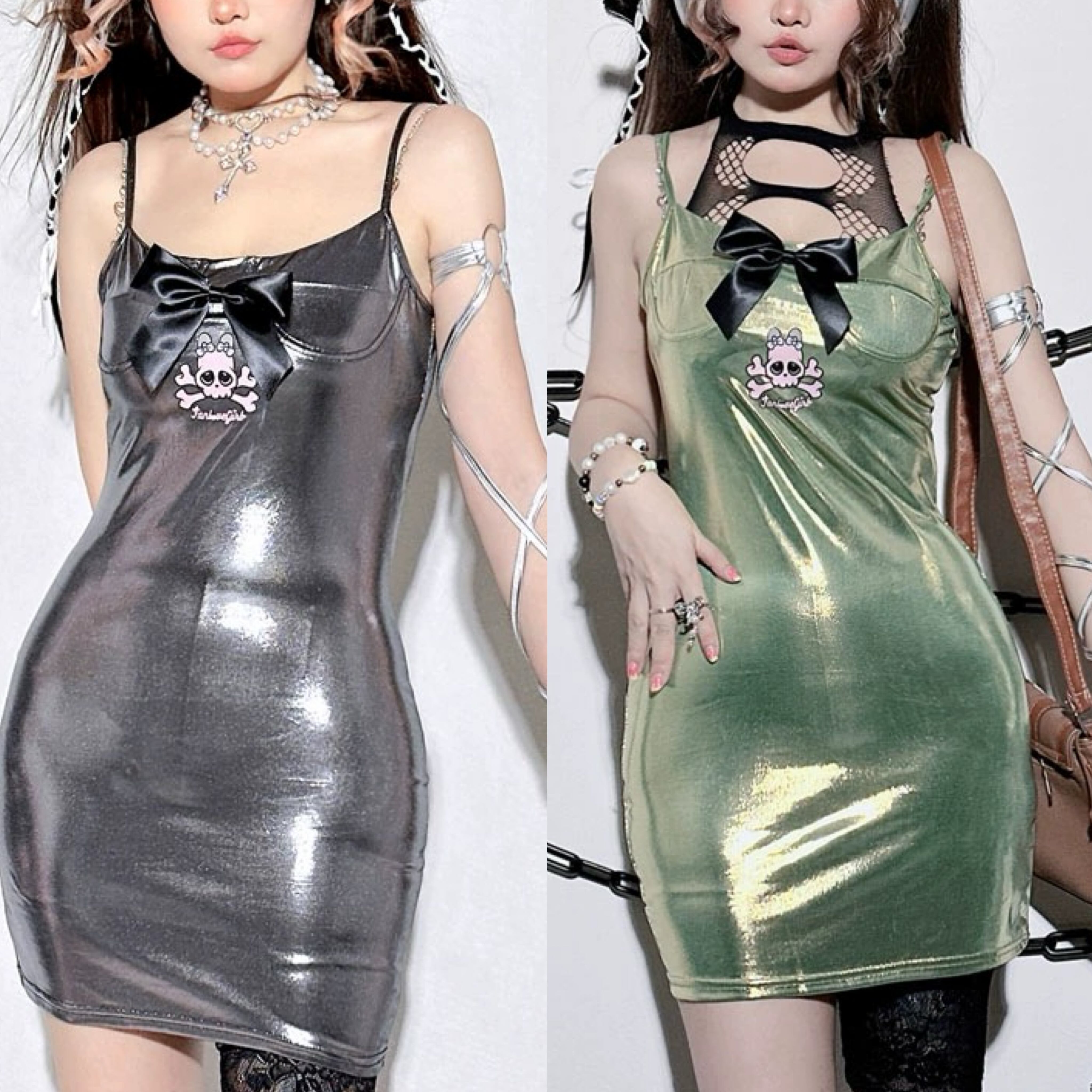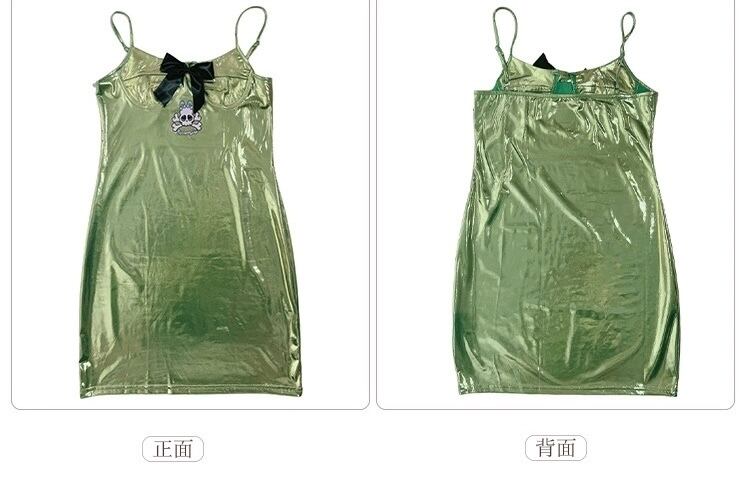 キャミソール グレー 緑 サイバー セクシー ワンピース 原宿 ダンス クラブ