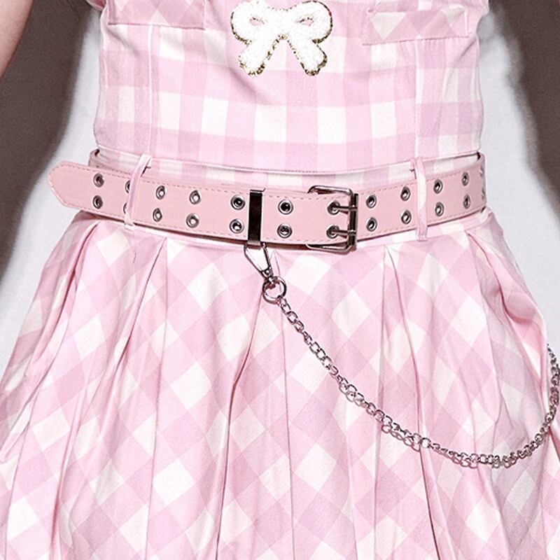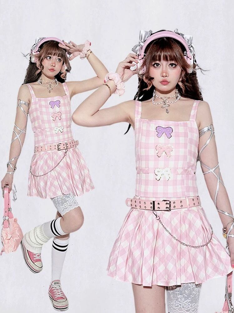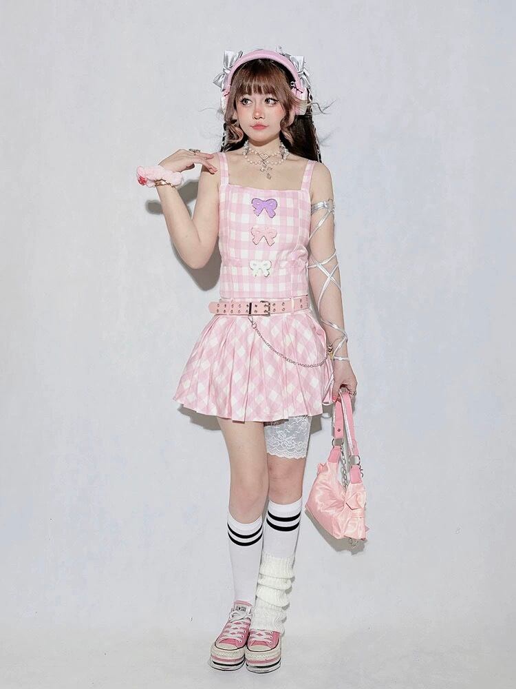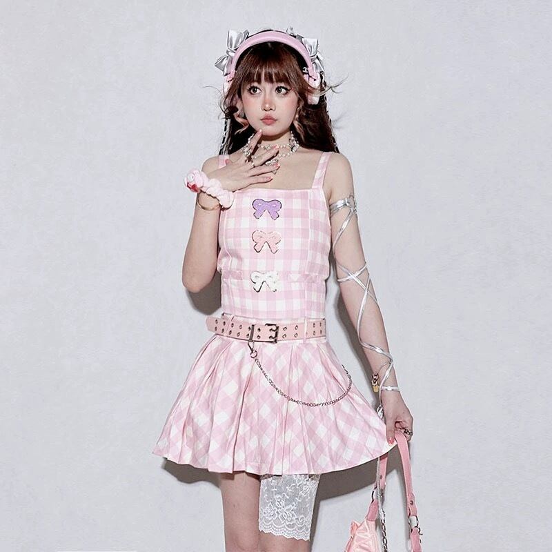 ピンク リボン チェック ガーリー ミニスカート キャミソール