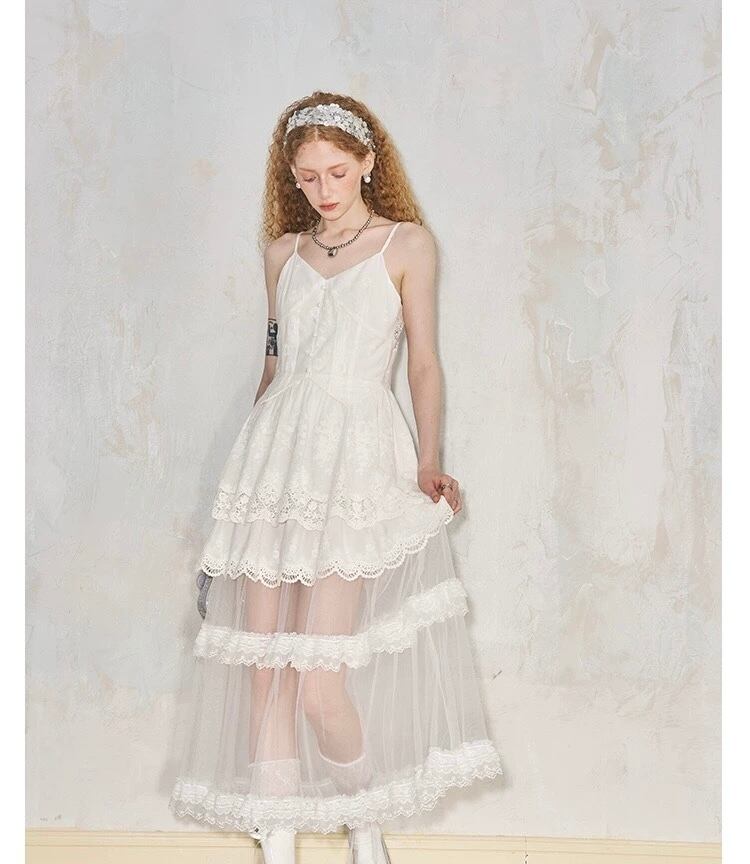白 ガーリー キャミソール ホワイト ワンピース レース 白 ガーリー お嬢様