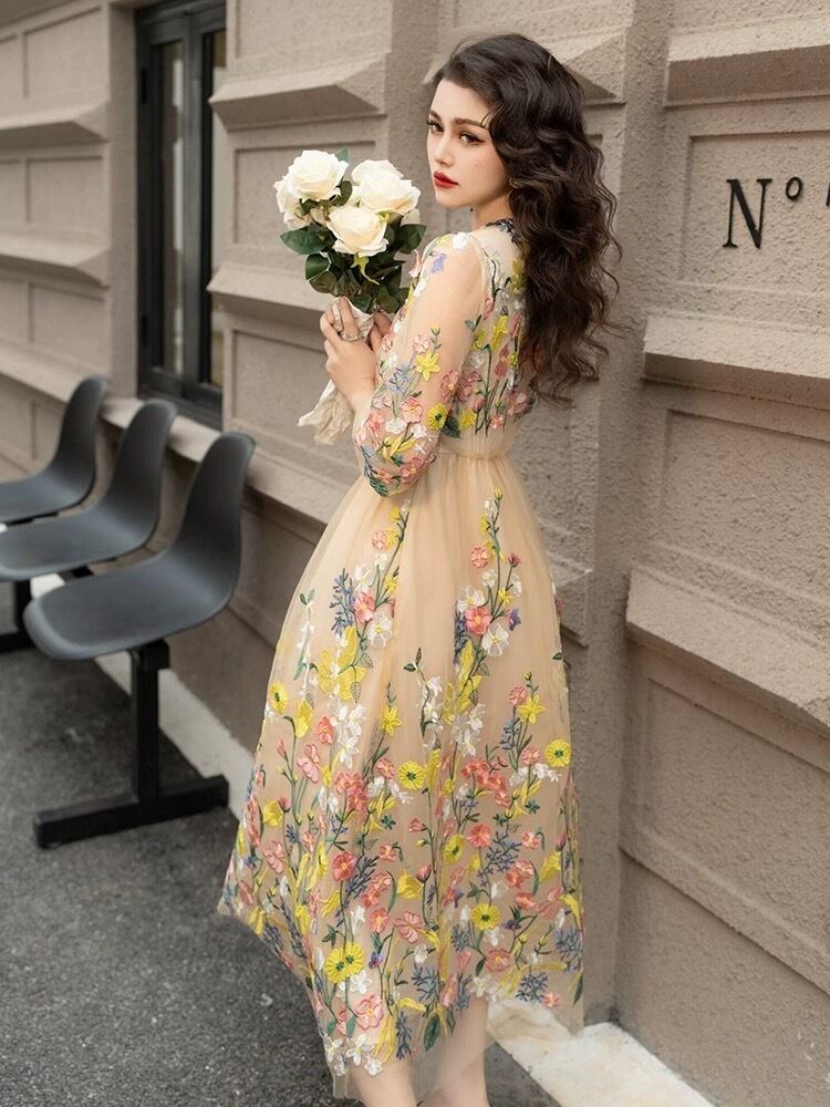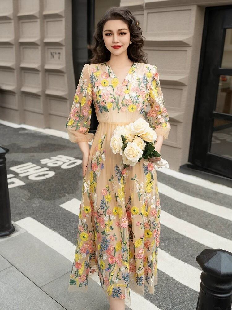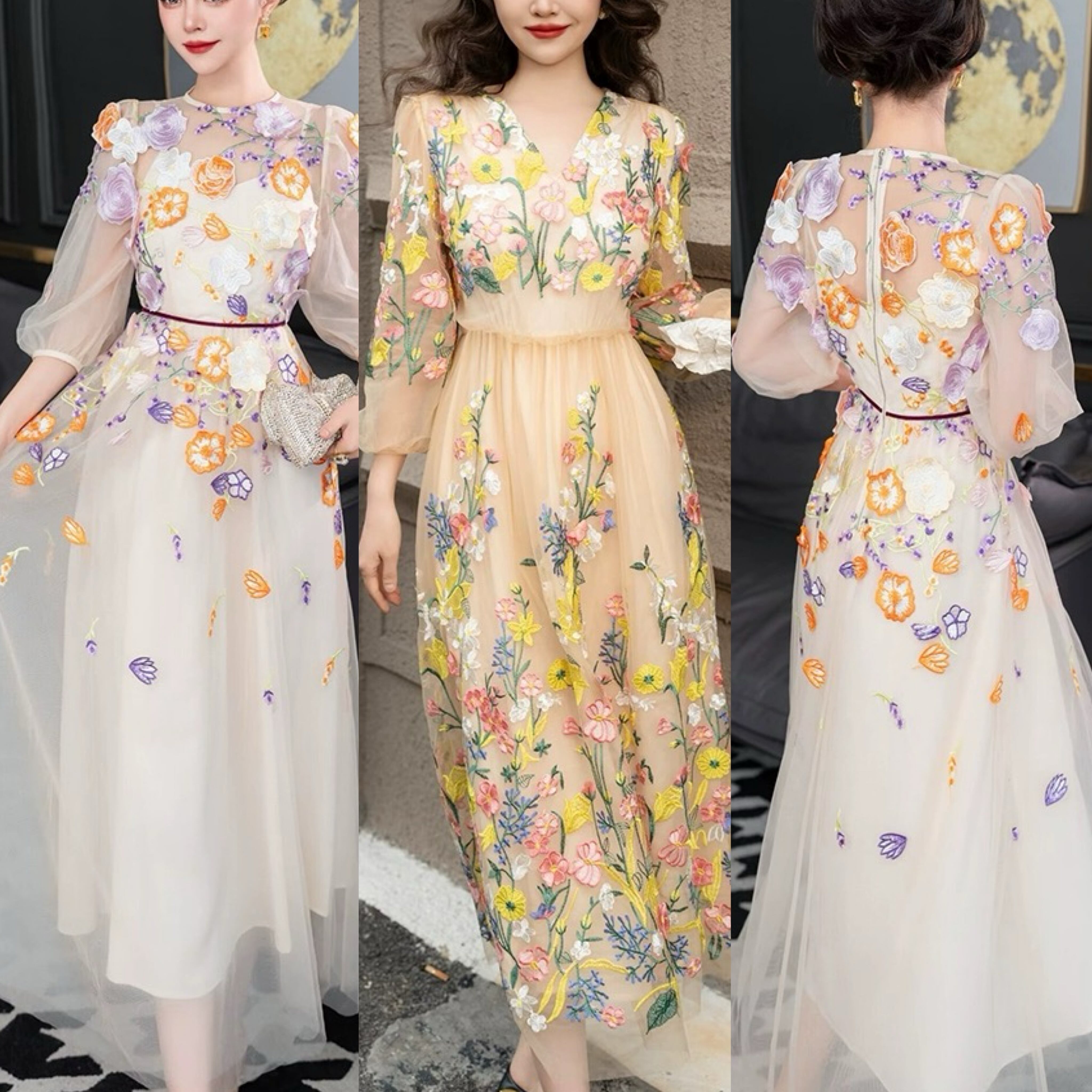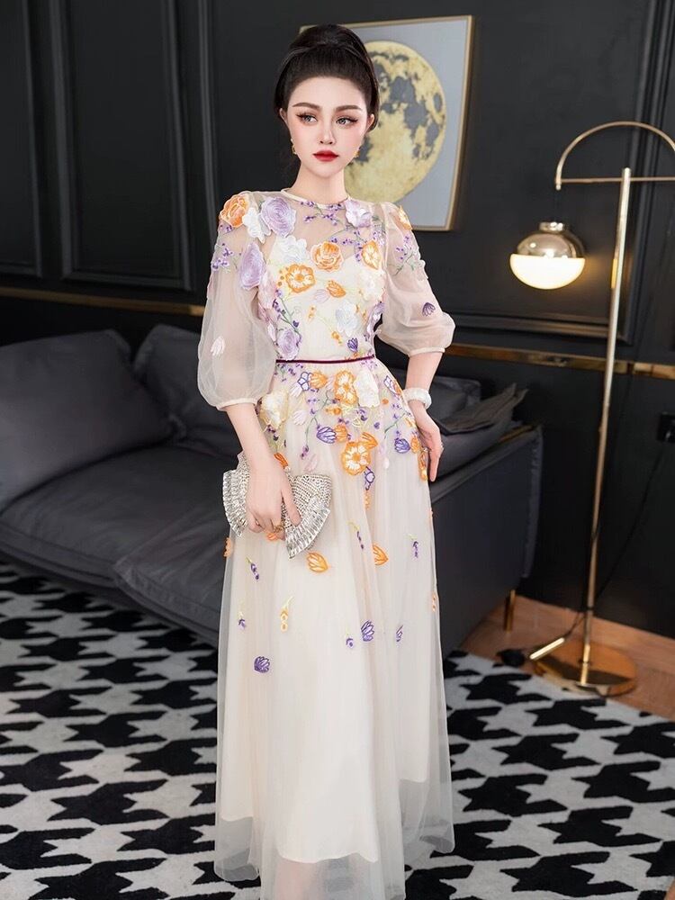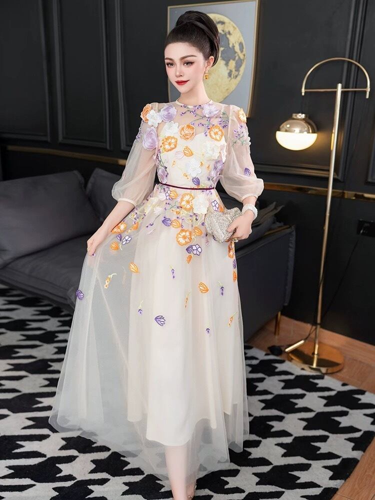 【2XLまで】白 ベージュ ドレス デコレーション 花柄 フラワー シースルー ブラウス XL