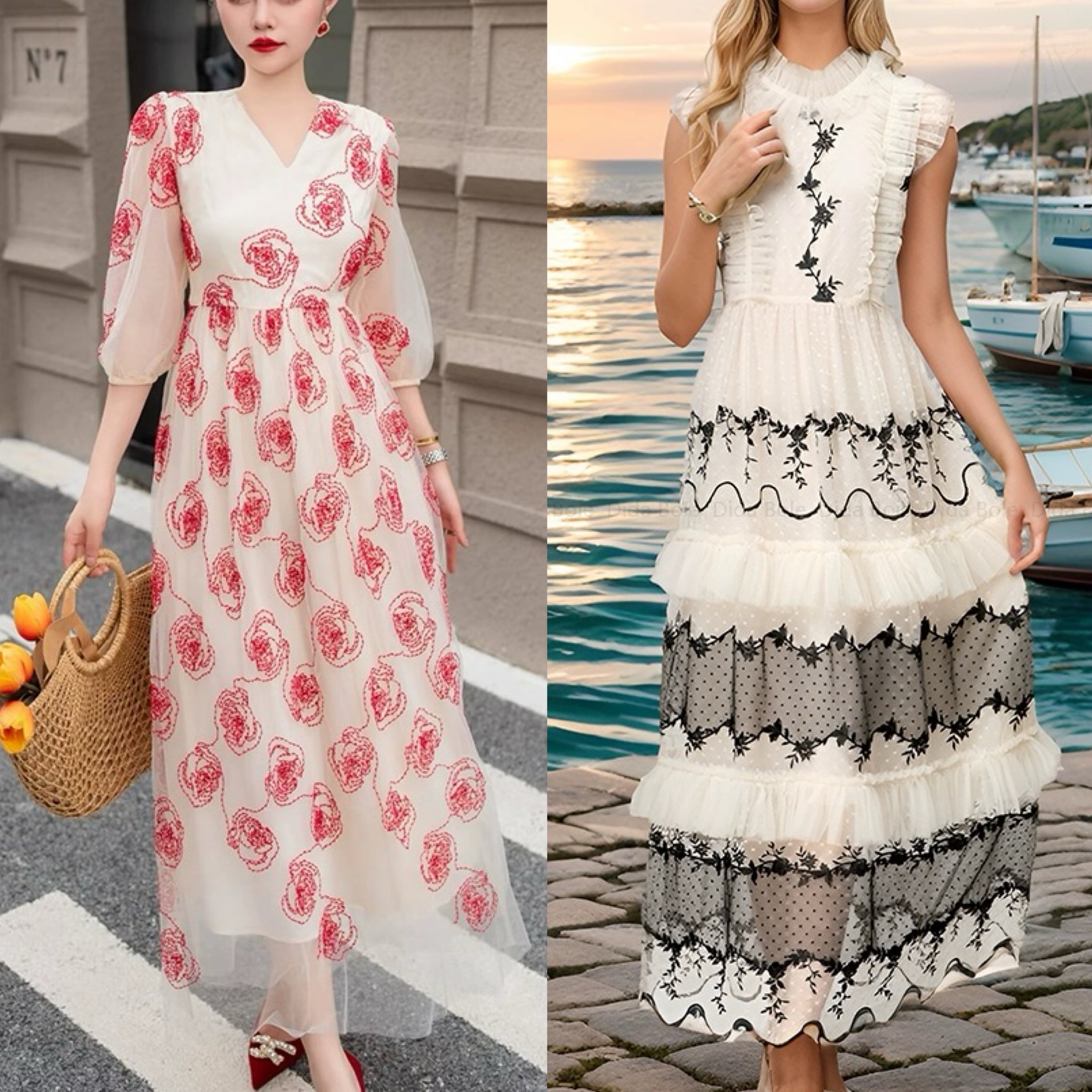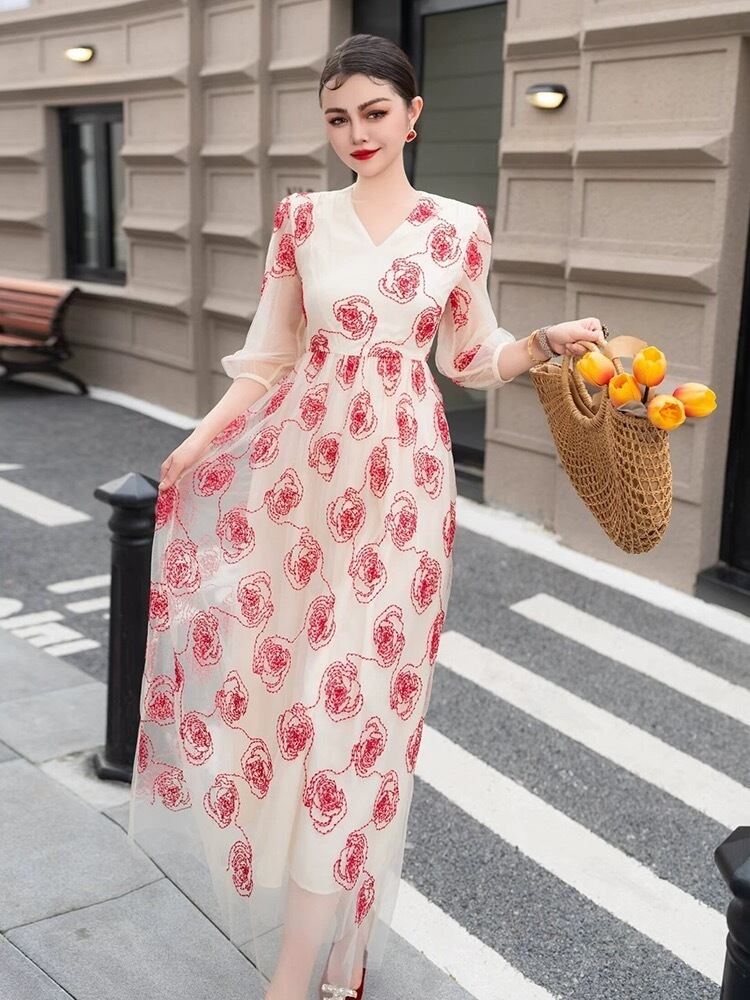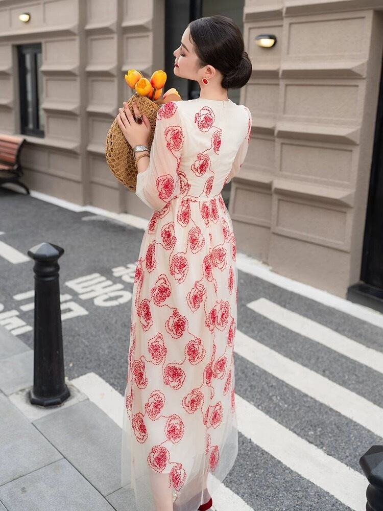 【2XLまで】赤 薔薇 フラワー 花柄 黒 ワンピース レース ガーリー