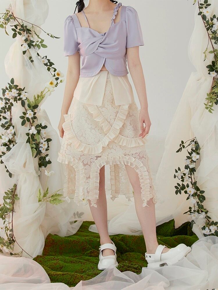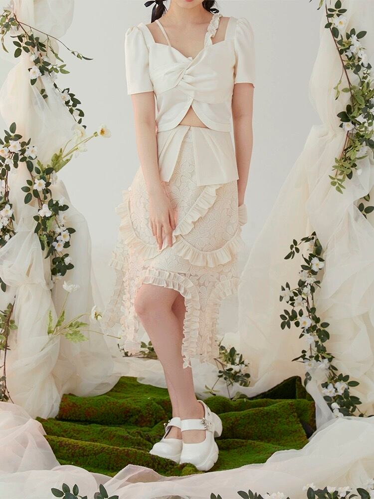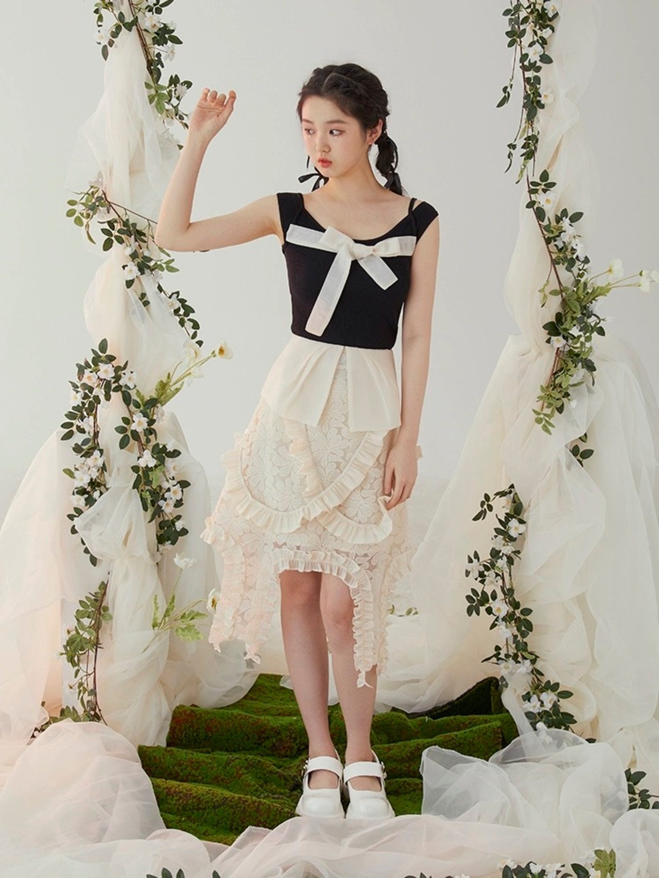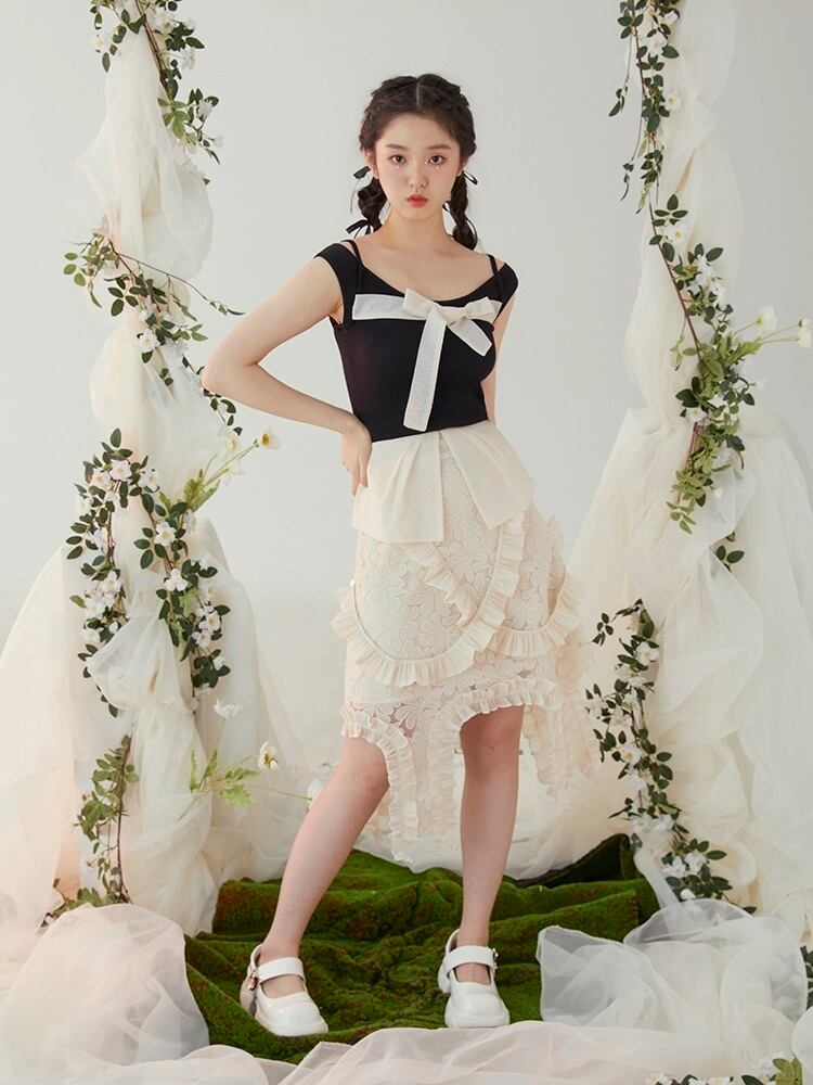 白 ホワイト リボン ボトムス スカート ガーリー 花柄 フラワー