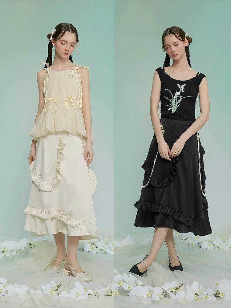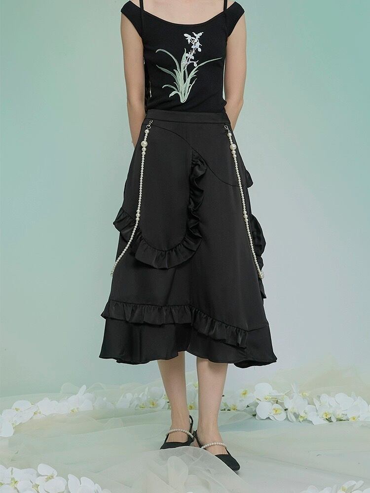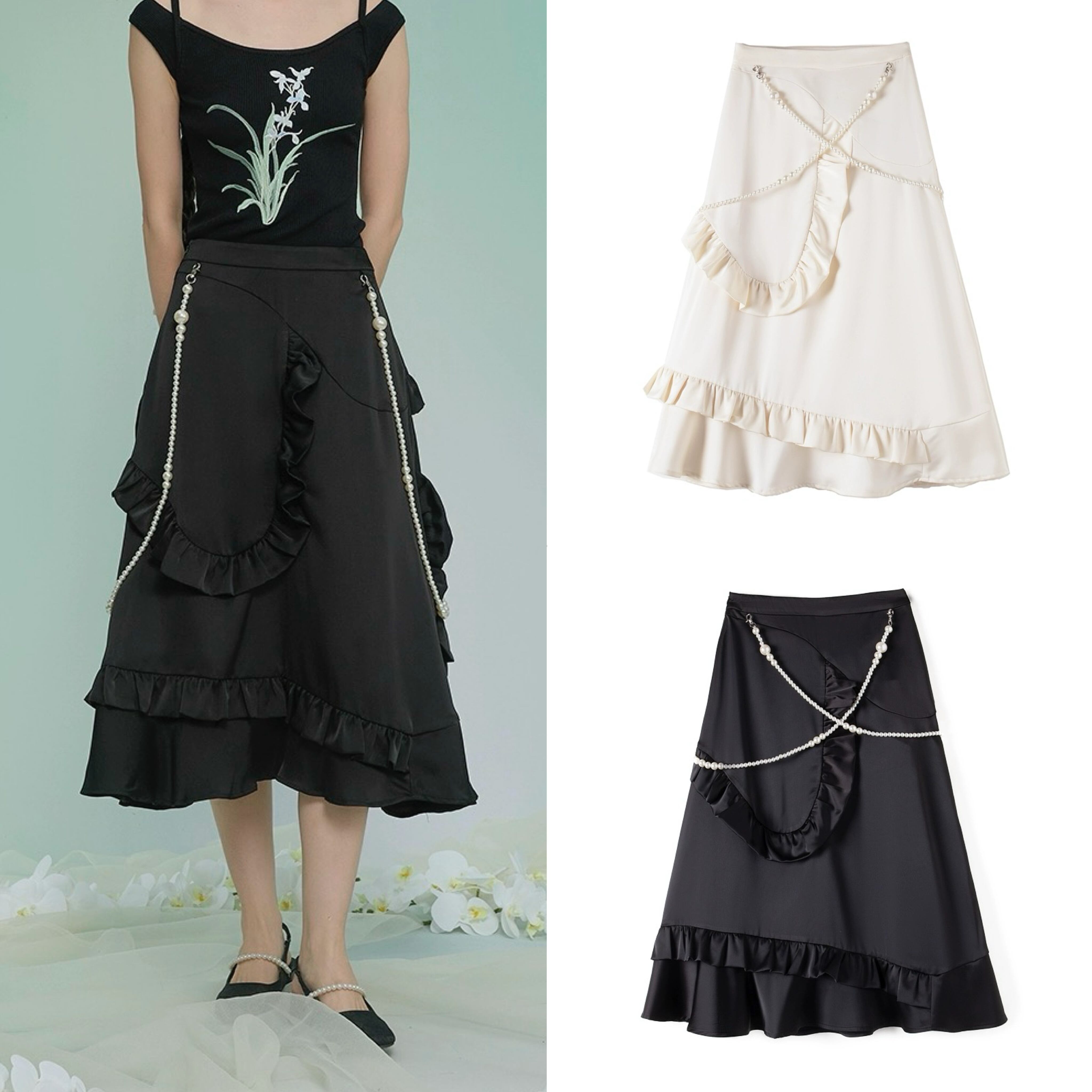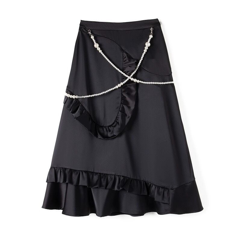 パール デコレーション 白 黒 スカート ボトムス ガーリー リボン