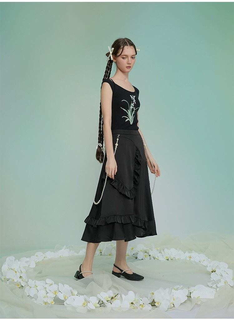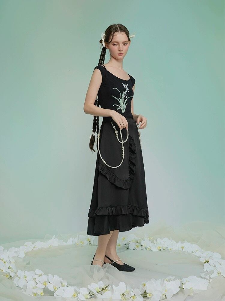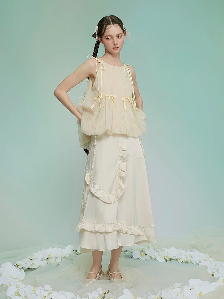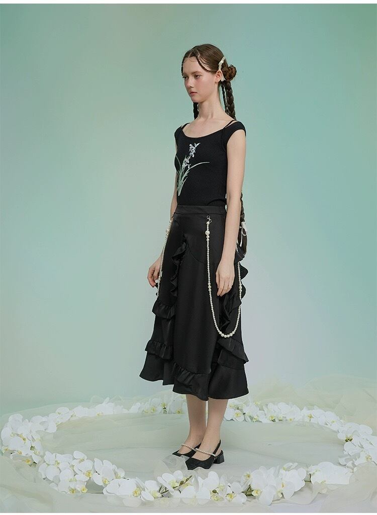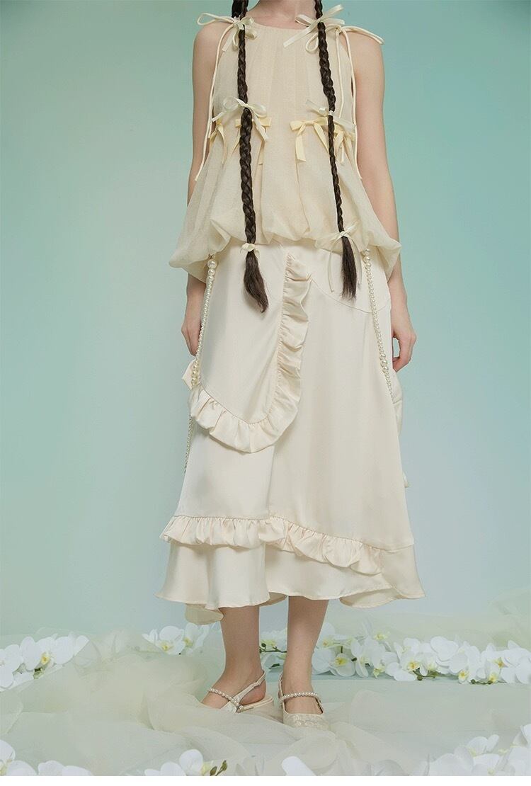 パール デコレーション 白 黒 スカート ボトムス ガーリー リボン